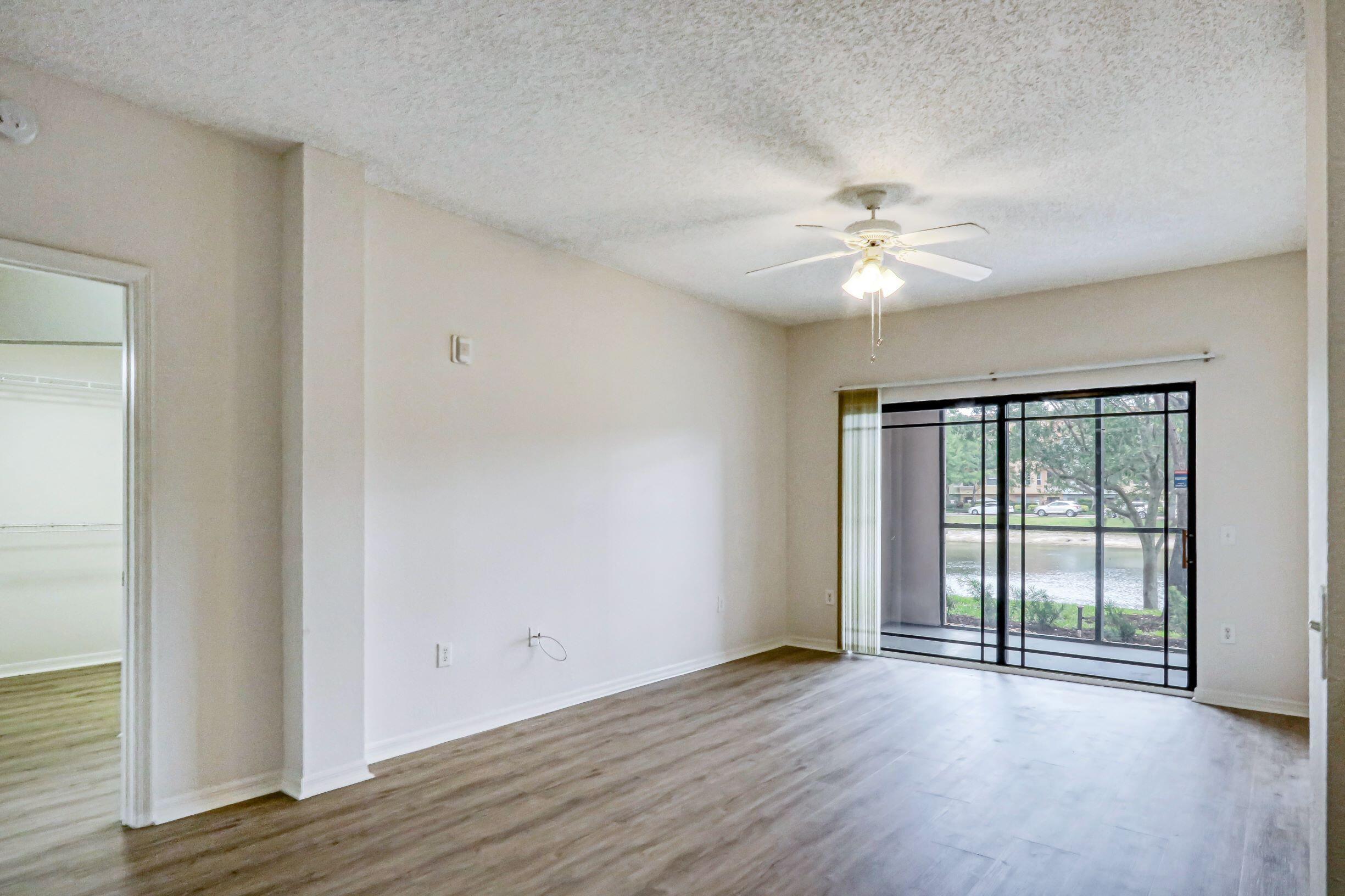 Lovely two-bedroom two bath, corner unit available December 1 2025. Wood-look vinyl floors in living area and bedrooms. Full size washer and dryer. Screened in patio with east expose with a lovely lake view. Hurricane shutters for bedroom windows and slider. Community amenities include swimming pool, playground, clubhouse, sauna, gym and steam room. Extremely close to Gardens Mall, downtown at the Gardens, restaurants, various shops and access to I-95 and turnpike. Approximately 20 minutes to Palm Beach Int'l airport. San Matera is a great place to live; call today before it's gone. 630 minimum credit score to be approved for occupancy per association rental guidelines.