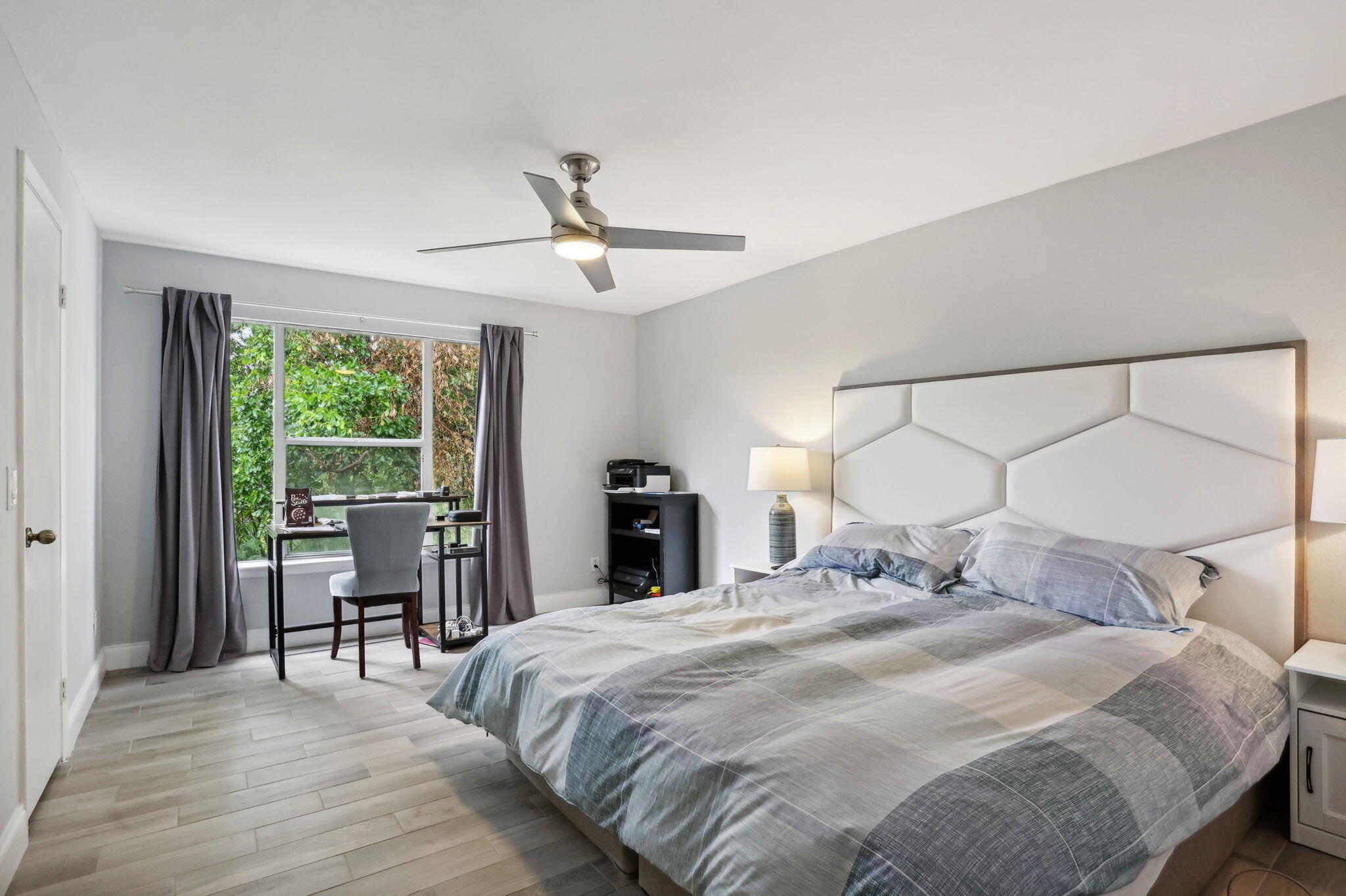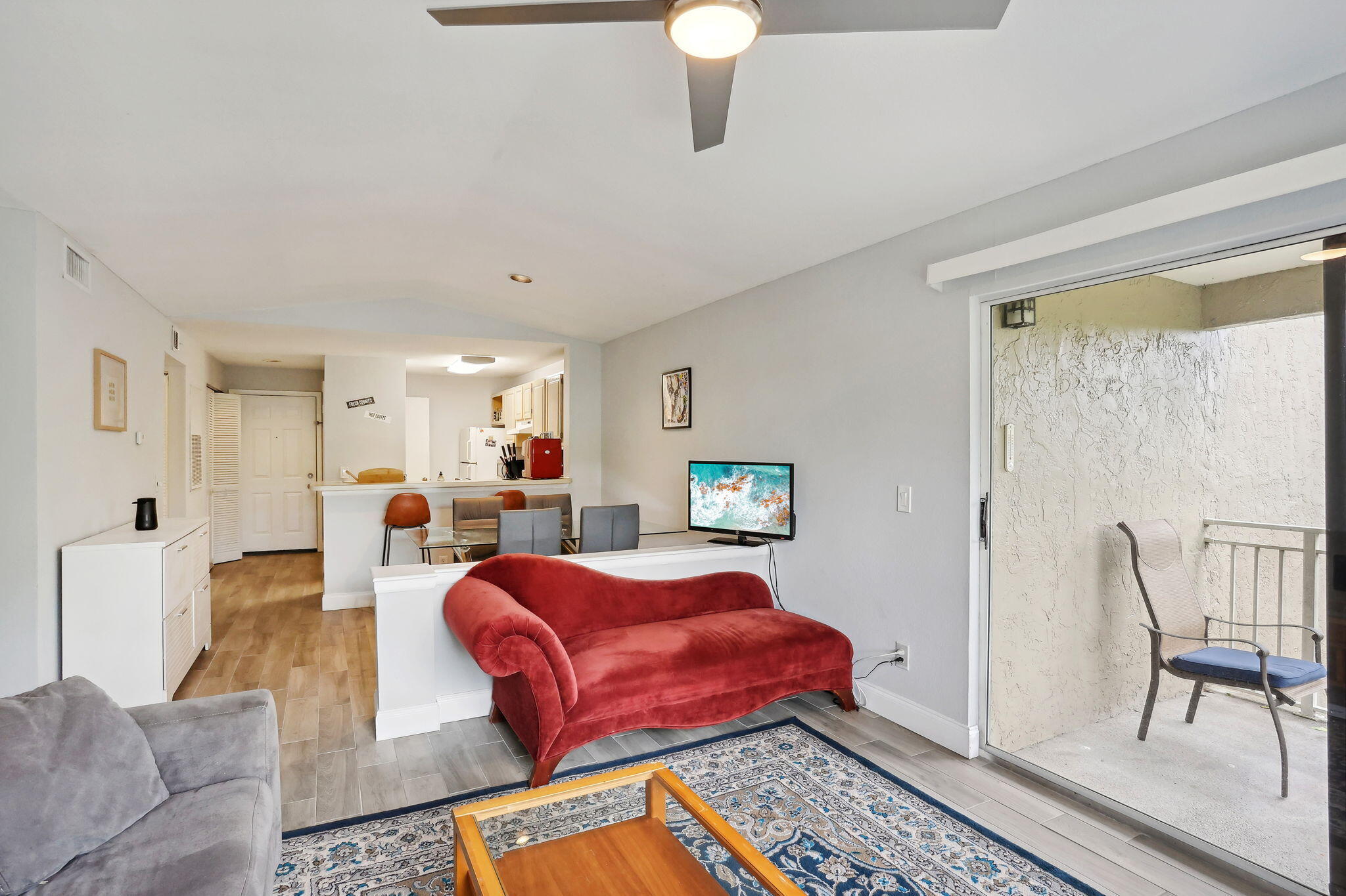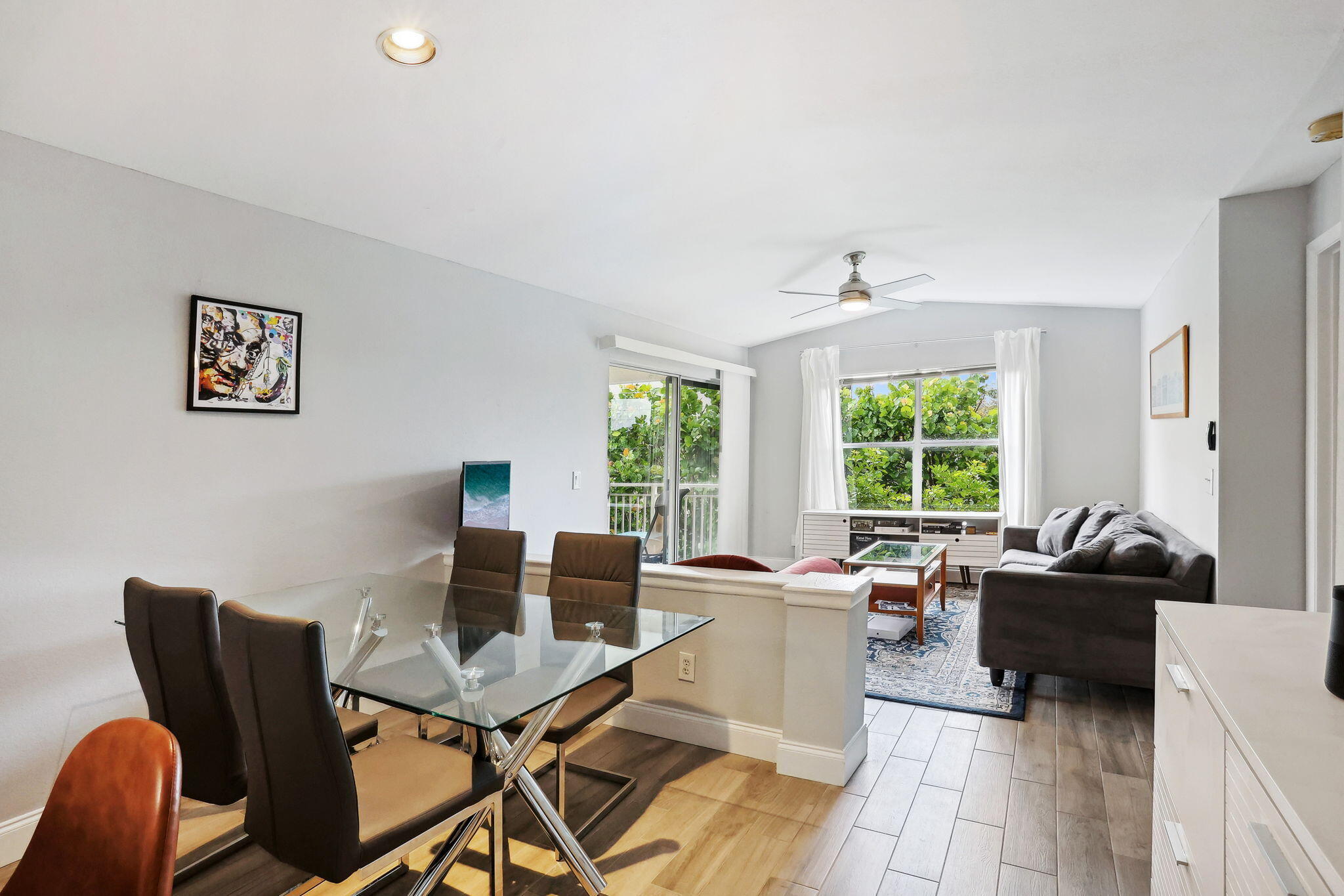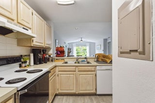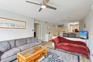 Welcome to your serene retreat in this stunning corner condo! Nestled among lush greenery, this fully furnished unit offers the perfect blend of privacy and convenience. Recently renovated with a modernized bathroom, this light-filled home exudes comfort and style. Enjoy a spacious layout, full-sized washer and dryer, and all the comforts of home. Within a gated community, you'll have access to a large pool, clubhouse, gym, workspace, basketball and tennis courts, and more--perfect for any lifestyle!