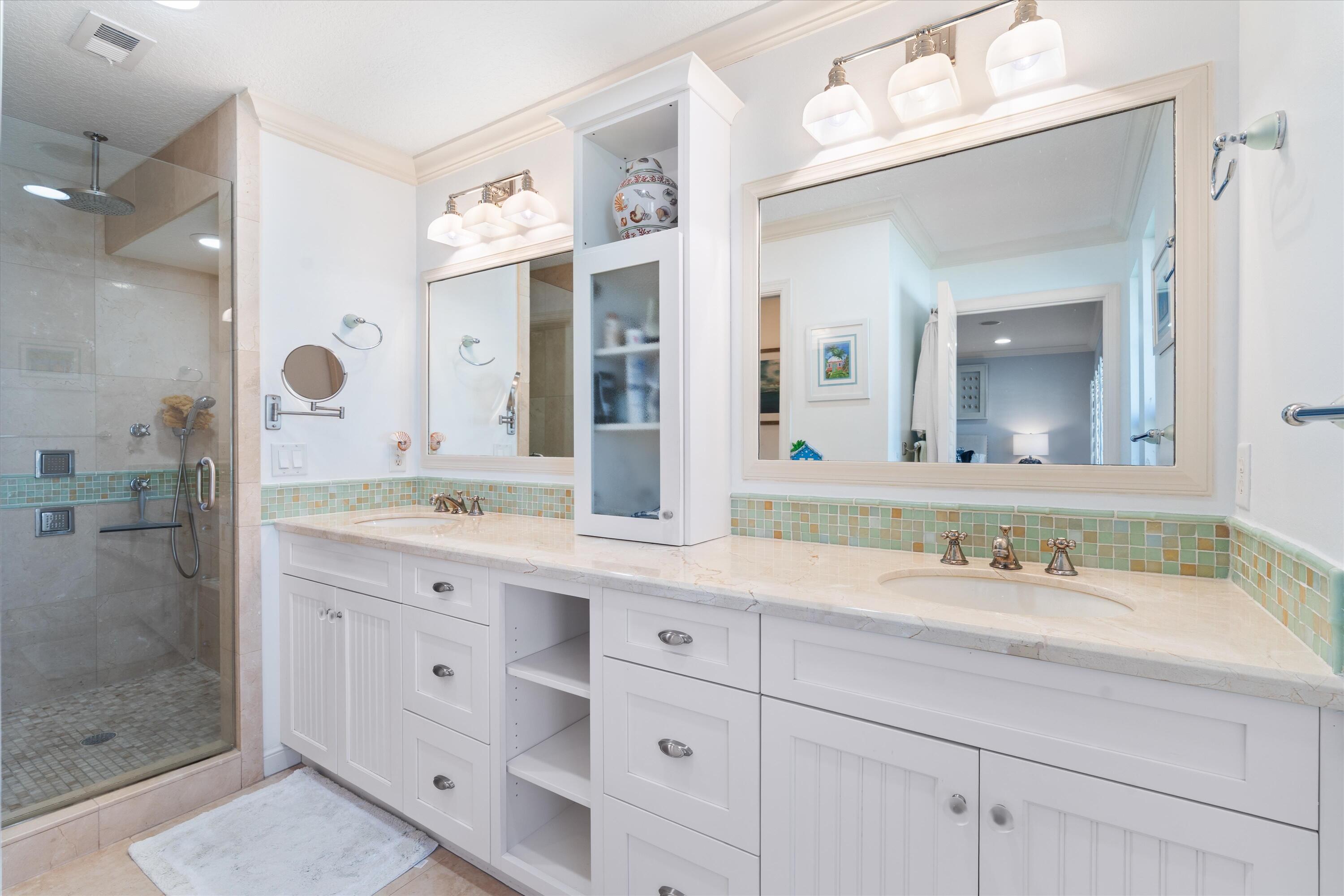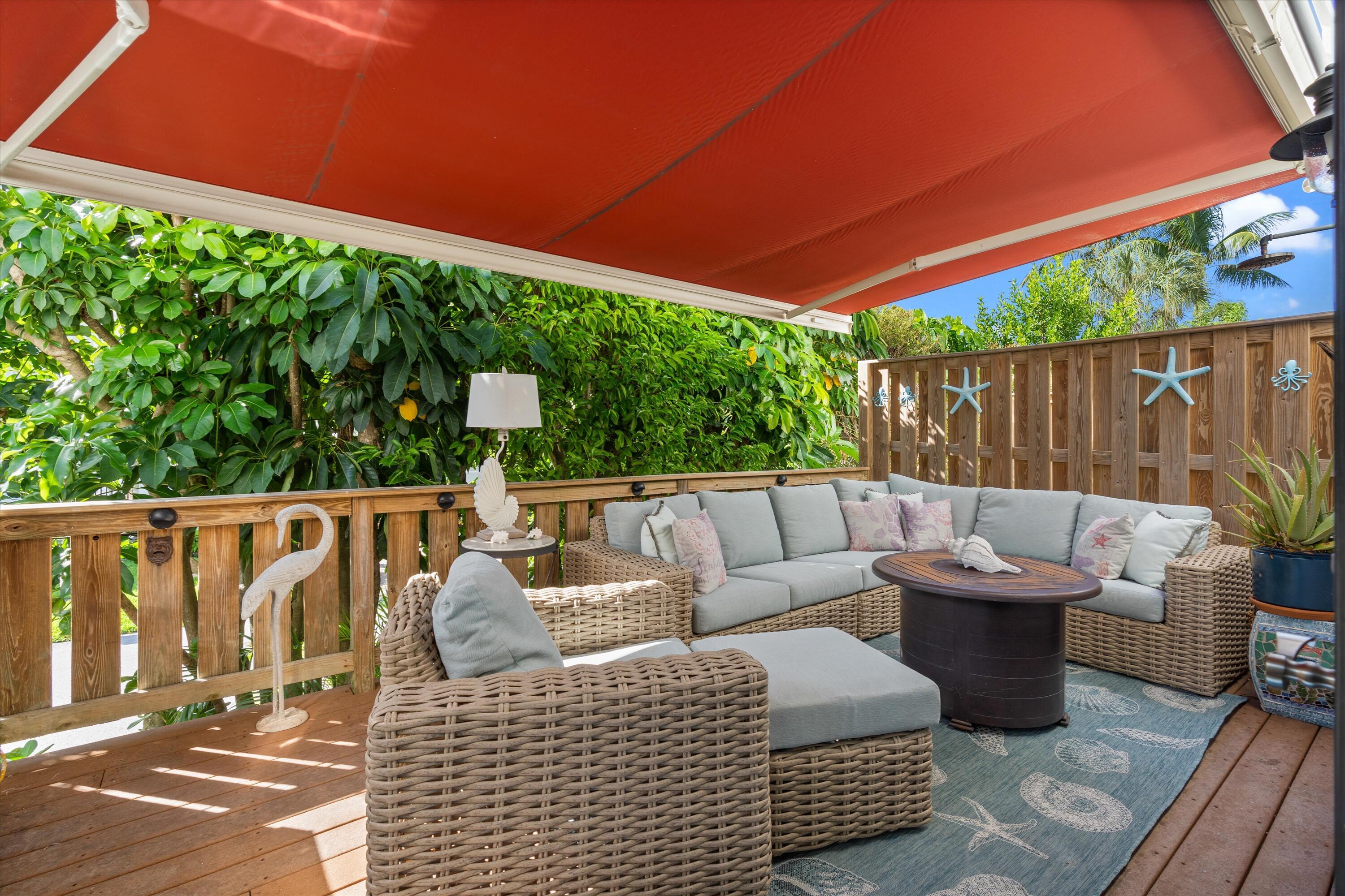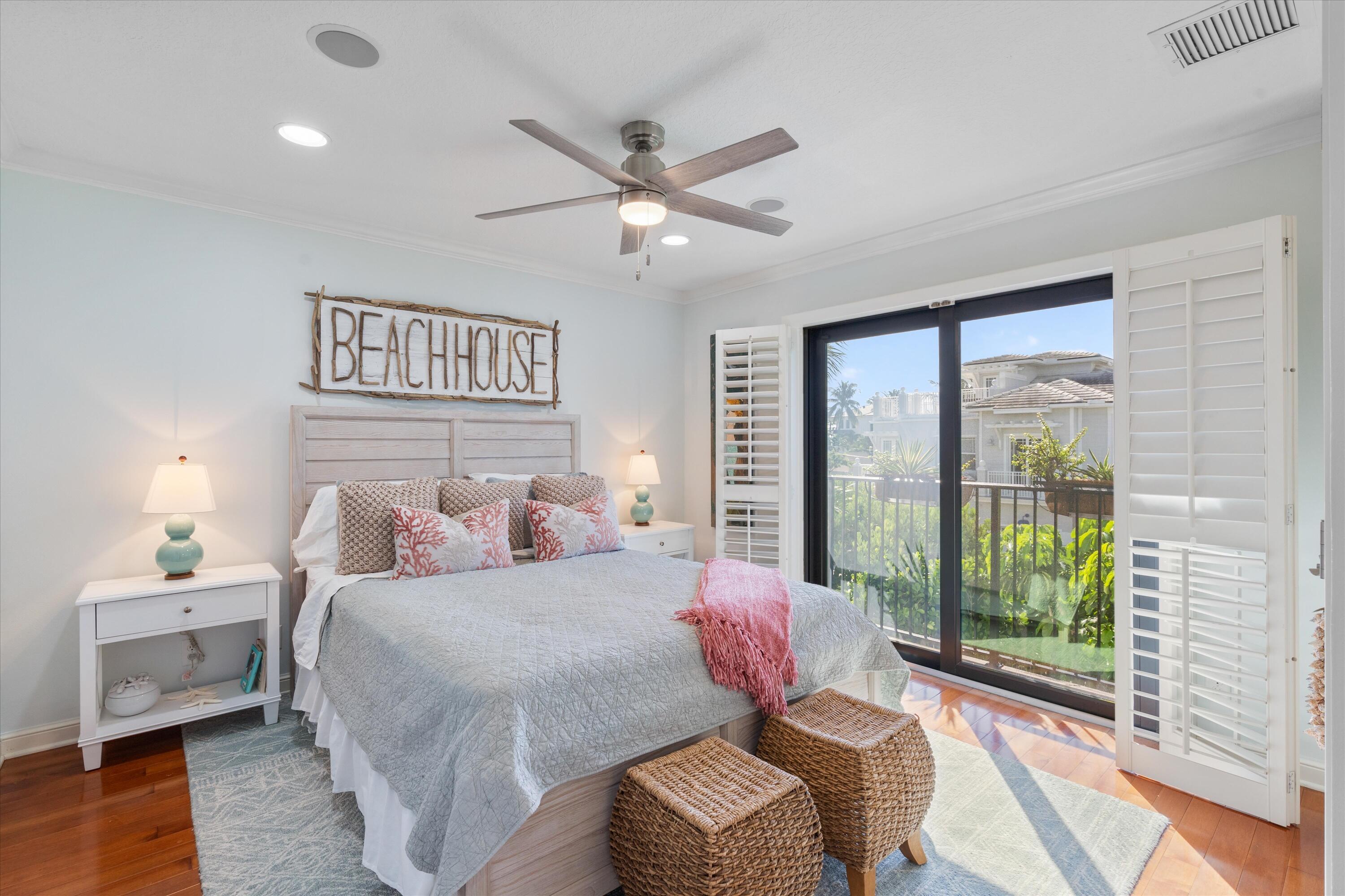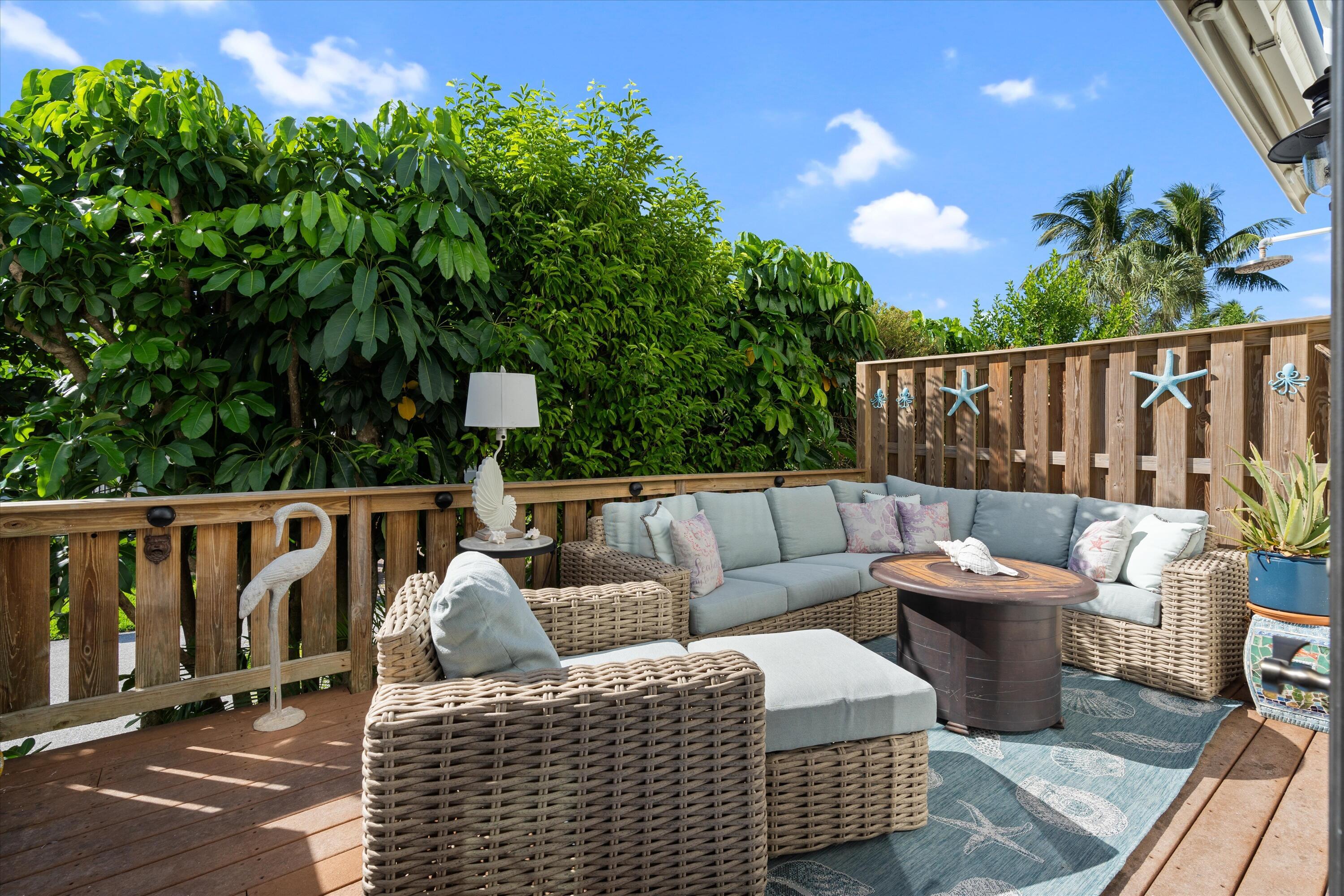 This coastal inspired beachside retreat townhome offers a one-of-a-kind living experience in the exclusive Jardin del Mar community. Renovated in 2008 by renowned Delray architect Randall Stofft, the unit has been thoughtfully redesigned to maximize space and comfort. The original two-story atrium was removed, allowing the square footage to flow seamlessly into an open first-floor plan, while the second floor now boasts spacious bedrooms and luxurious bathrooms. The townhome offers an exceptional level of privacy with two dedicated parking spaces located below in the secured gated garage, as well as a personal enclosed storage area.The home's unique design includes an open-concept living and dining area with a built-in bookcase and a Cyprus bead-board tongue-and-grooveceiling. French doors lead out to the landscaped outdoor living space, which is equipped with a custom kitchen, a remote-controlled electric awning, speakers, and updated decking and railing. Whether you're grilling with the Delta heat grill or relaxing on the balcony, the space is perfect for enjoying the coastal lifestyle. The chef's kitchen is a dream for entertainers, featuring custom glass tile backsplash, Brazilian Rain Forest granite countertops, a large two-level island with ample storage, and GE Monogram premium appliances. For added convenience, there's also a storage closet for beach accessories just off the kitchen. Upstairs the primary bedroom is a retreat, complete with a custom built-in walk-in closet with drawers. The en-suite bathrooms are equally luxurious, with marble showers, premium Kohler and Grohe fixtures, custom glass backsplashes, and St. James by Brentwood cabinetry. The loft is currently staged as a stylish dual-use office/guest space, offering great flexibility. It functions perfectly as a home office, guest room with a sleeper sofa, or even a workout area. This versatile space also includes additional storage, cabinetry, and a built-in bookcase. A new Samsung washer and dryer are conveniently located in the closet off this dual-use space. Every detail has been taken into consideration, from custom plantation shutters and PGT hurricane-proof windows to solid internal doors, crown molding, and a guest-safe discreetly built into the home. The unit is also wired for music with Boston Acoustic speakers. The ocean front community of Jardin del Mar offers 38 exclusive units and is undergoing continuous improvements, including a freshly painted exterior and new roofs on all buildings. With a variety of amenities such as a community room, sundeck, pool, and underground parking garage, this boutique community provides a unique beachside living experience. Located just two blocks from vibrant Atlantic Avenue, this home offers unparalleled access to Delray Beach's finest dining, boutique shopping, and lively entertainment. Whether you're looking for a gourmet meal, a trendy café, or an afternoon of boutique shopping, everything is within walking distance. For those who love the beach, the ocean is just steps away, allowing for effortless beach days or sunset strolls. This home offers everything one could want in a beach retreat, blending timeless design, modern comforts, and a prime location for an unparalleled lifestyle.