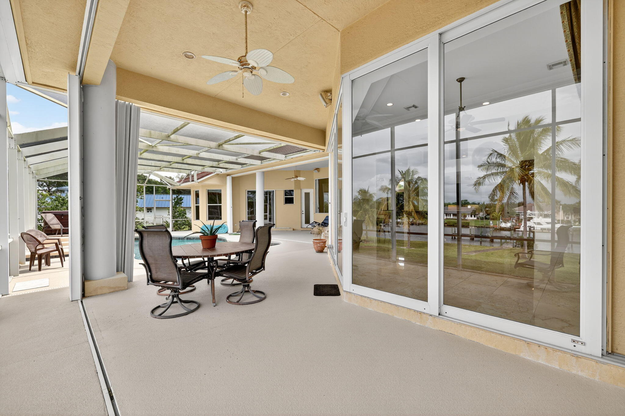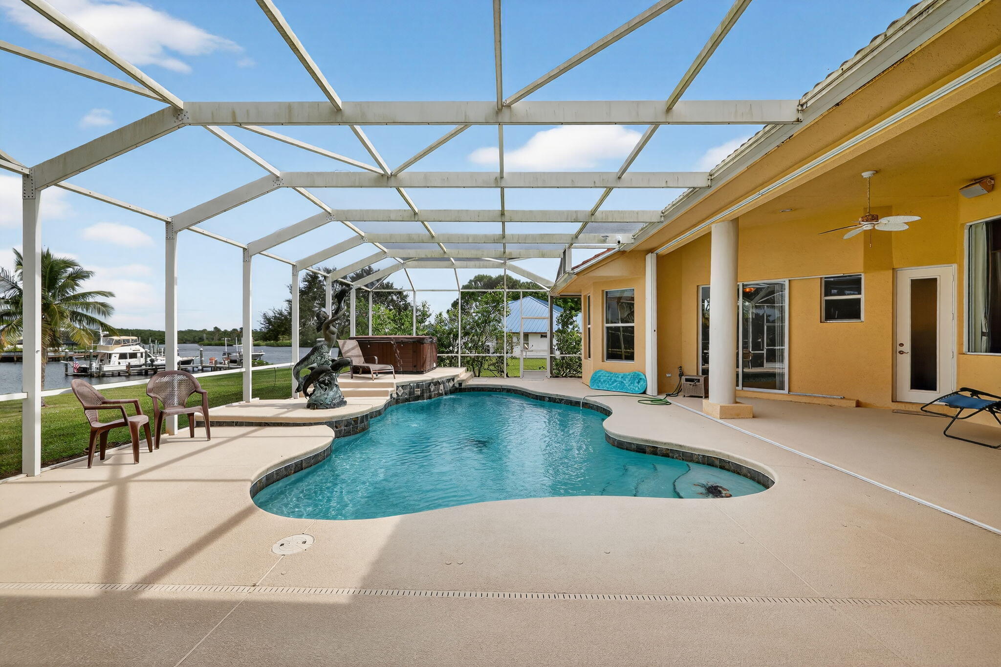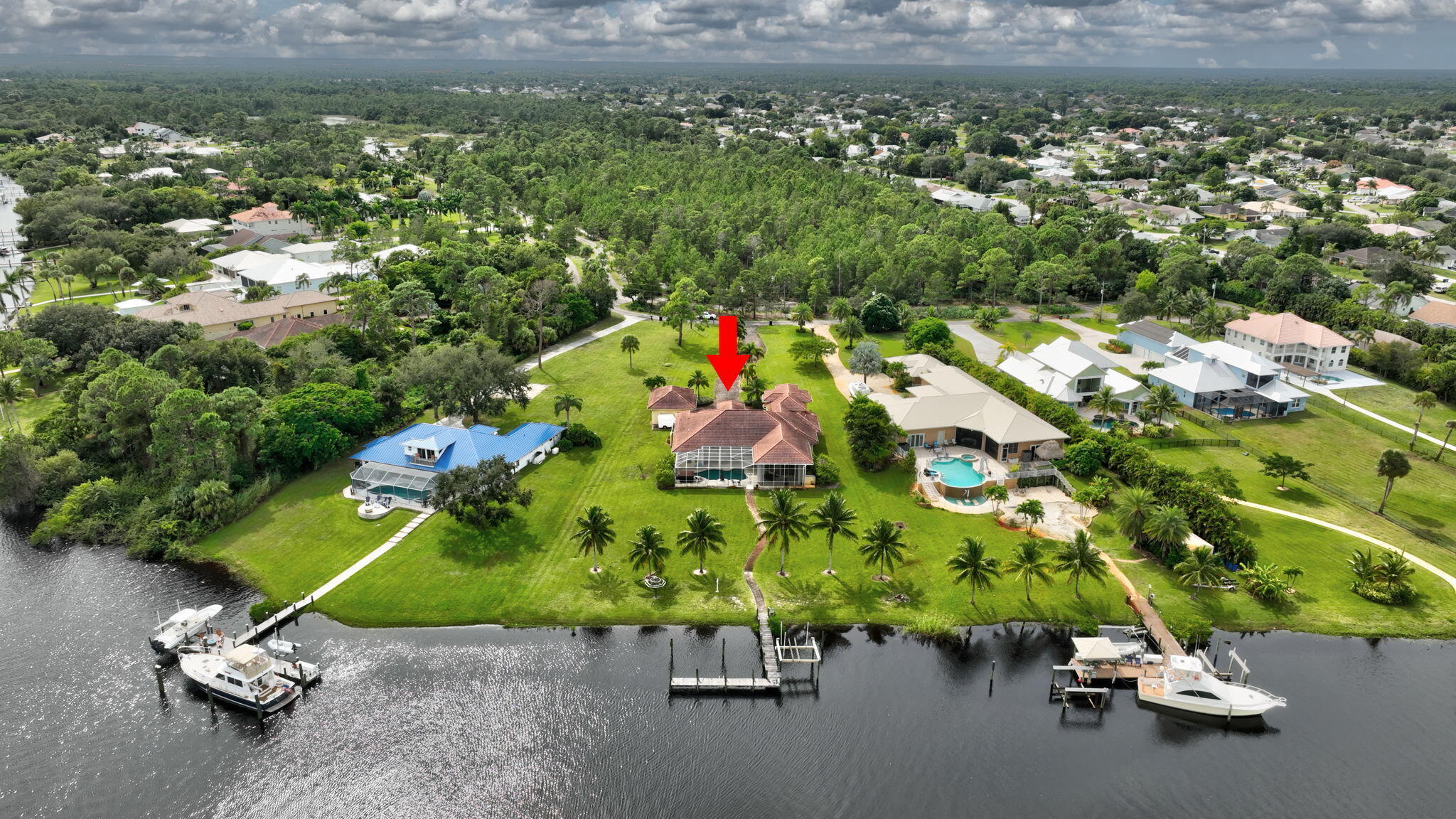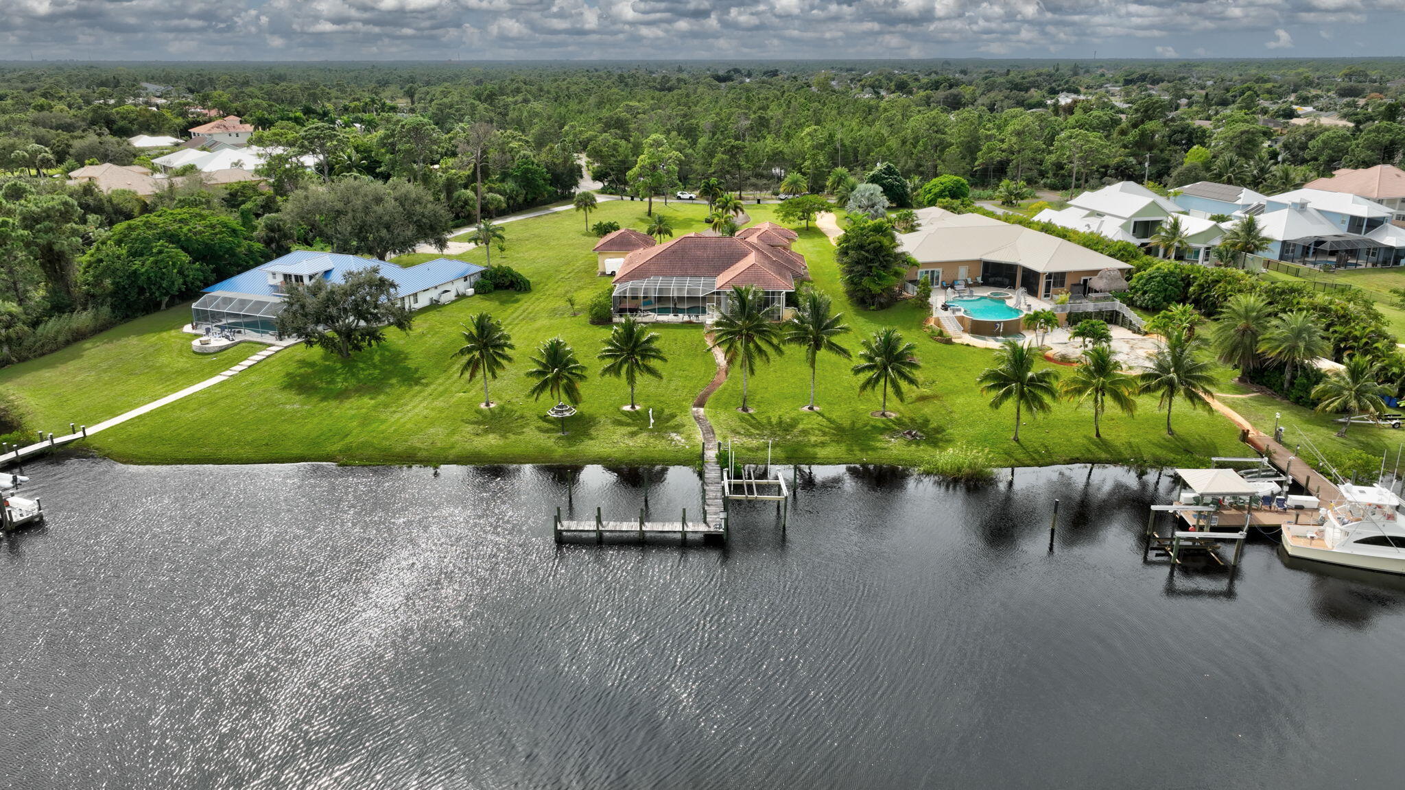 Discover this stunning Mediterranean-style residence, offering nearly 5,000 sq. ft. of luxurious living within the prestigious gated community of Vikings Lookout. This exceptional home features two spacious master suites, each with its own elegant ensuite & every bedroom has its own ensuite. Enjoy the convenience of a butler's pantry and a beautifully appointed outdoor kitchen, perfect for entertaining. Nestled on over an acre of meticulously landscaped grounds, this property boasts 167 feet on the water, showcasing wide canal and river views in a no-wake zone, just minutes from the Stuart Inlet. No fixed Bridges. Experience a lifestyle of elegance and tranquility in this remarkable home. new MB carpet to be installed by 11/14Exquisite Mediterranean-Style Home with Luxury Features Welcome to your dream oasis! This stunning Mediterranean-style residence boasts nearly 5,000 sq. ft. of luxury living on over an acre of beautifully landscaped grounds within a prestigious gated community. Designed for both comfort and elegance, this home includes two expansive master suites, each with its own spa-like ensuite bathroom, ensuring privacy and convenience for family and guests alike. Every bedroom is designed with an ensuite, providing a perfect blend of luxury and functionality. Entertain in style with a sweeping open floor plan, featuring gorgeous marble floors and energy-efficient foam insulation. The chef's kitchen opens to the dining and living areas, making it ideal for gatherings.Step outside to your private paradise, complete with a sparkling pool and relaxing hot tub and outdoor kitchen.- perfect for unwinding after a long day. Enjoy direct access to a navigable canal, perfect for boating enthusiasts and water lovers.This property also features hurricane windows for peace of mind, a 6-car garage for all your vehicles and toys, and a low HOA that enhances the appeal of this impressive community.Discover the ultimate in luxury living with convenience at your fingertips! Your slice of paradise awaits!