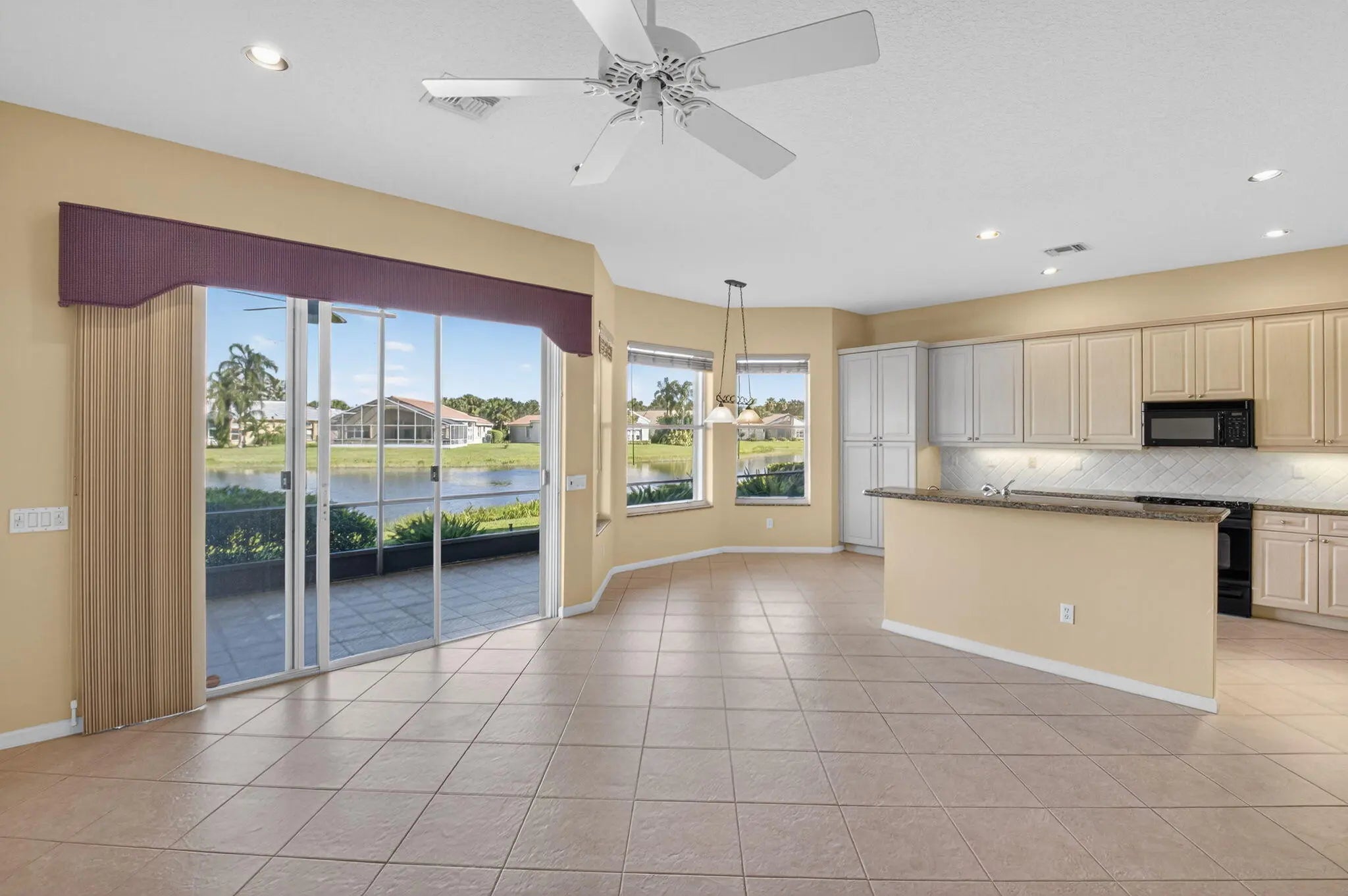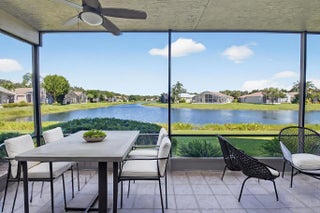 NEW ROOF 2022!! LOVELY MEDITERRANEAN MODEL WITH SPECTACULAR LAKEVIEWS. ENTER THIS LOVELY HOME WITH NEUTRAL TILES IN MAIN LIVING AREAS. NEWER AC IN 2024. ACCORDION SHUTTERS. ENCLOSED COVERED LANAI FACING NORTH FOR ENJOYING THE LAKEVIEWS ANYTIME OF THE DAY!! SPACIOUS PRIMARY BEDROOM OVERLOOKS THE LAKE TOO AND HAS A BEAUTIFUL ENSUITE BATH WITH DOUBLE SINKS AND 2 WALK IN CLOSETS!! SPLIT BEDROOM FLOOR PLAN WITH GUEST BEDROOMS ON THE OTHER SIDE OF THE HOME FOR PRIVACY. LARGE KITCHEN WITH TONS OF CABINET SPACE & AN ISLAND FOR A BREAKFAST BAR & CASUAL DINING NOOK AREA. KITCHEN IS OPEN TO THE FAMILY ROOM ALSO WITH GREAT LAKE VIEWS. THIRD BEDROOM IS USED AS AN OFFICE DEN. COME SEE THE FABULOUS NEWLY RENOVATED CLUBHOUSE . 55+ COMMUNITY. ALL MEASUREMENTS DEEMED ACCURATE AND SHOULD BE VERIFIED.