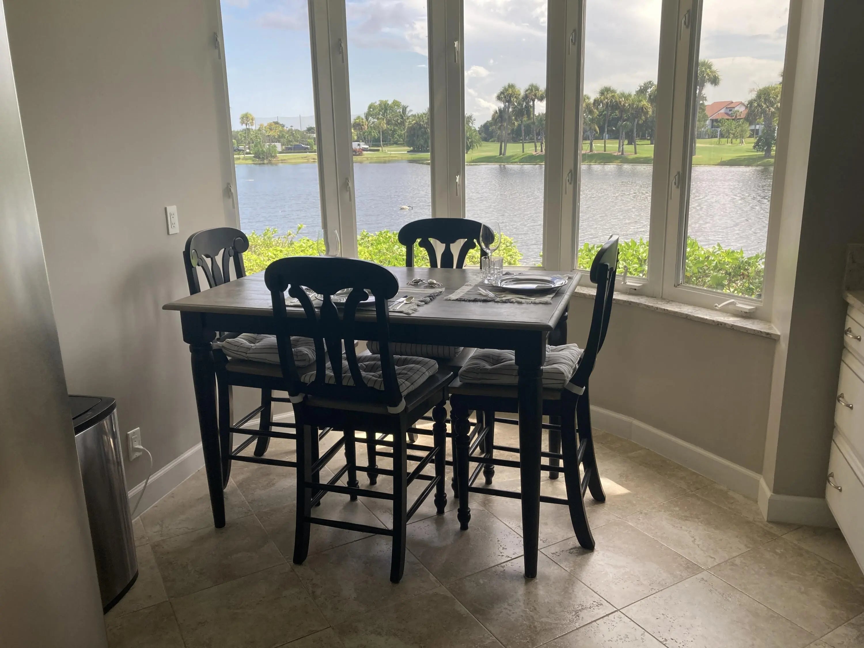 Rare opportunity for Jan, Feb, Mar seasonal rental. Wide water views from this renovated condo. Two King beds. 75-inch TV in living room, 60-inch TV in primary bedroom. Utilities, wifi and internet included. Close to restaurants, theater, beach and PBIA. Short walk to the community pool. A biker's and walker's paradise with trails throughout JL connecting to the Marina and Social Rec area.