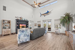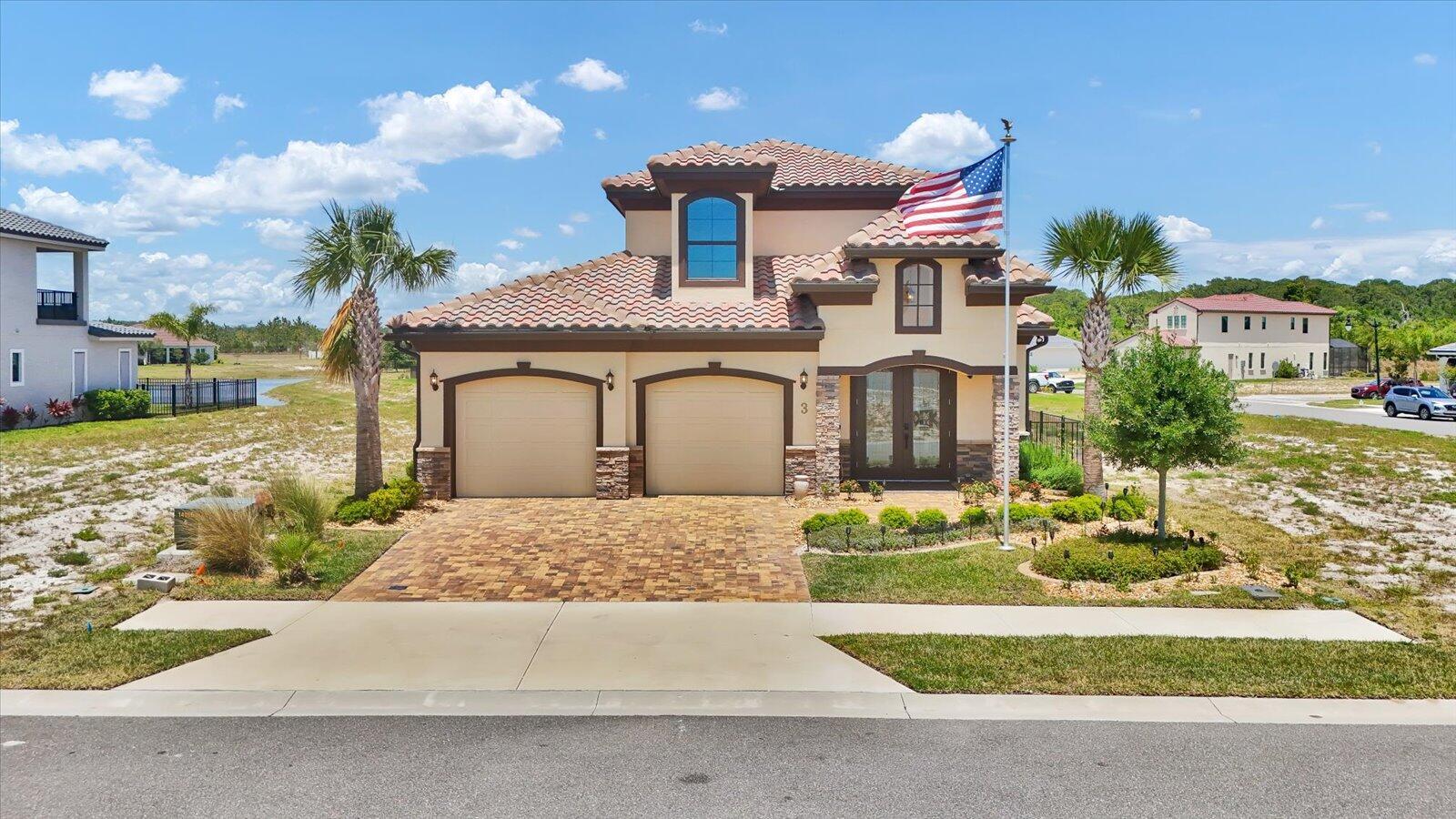 Wake up each day in this stunning home in the sought-after Marina Del Palma community--a TRUE BOATER'S PARADISE! Built with luxury and convenience in mind, it features hurricane-rated windows, a whole-home generator, ADA-compliant design, and elevator-ready construction. Inside, enjoy ceramic tile floors, a chef's kitchen with custom Jarlin cabinetry, a walk-in pantry, and premium appliances. The open layout is perfect for entertaining, with a main-floor primary suite offering two walk-in closets and a spa-like bath. Upstairs, a loft, bedroom, and full bath provide ideal guest or office space. Relax on the screened patio overlooking the pond and enjoy exclusive amenities--private boat storage, valet service, pool, fitness center, and more!