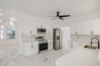 Beautifully renovated 5 bedroom, 3.5 bath home with over 3,600 sq. ft. of living space on a corner lot and a NEW ROOF. The updated kitchen features white Shaker cabinetry, NEW stainless steel appliances, and quartz countertops. The first floor includes formal living and dining rooms, a large family room, and a private bedroom suite with full bath and walk-in closet. Upstairs, the primary suite offers two walk-in closets, dual vanities, and a spacious glass-enclosed shower. Additional bedrooms are generous in size, with a loft and bonus flex room ideal for office, playroom, or media. Enjoy the 33 ft. covered patio, fenced backyard, and detached storage building. Convenient to shopping, dining, parks, and the Turnpike.