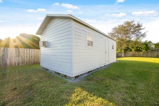 Covered Patio, Fence, Shed, Shutters