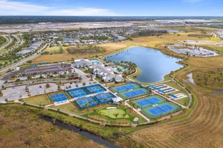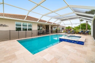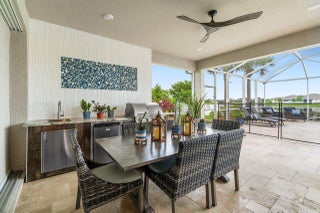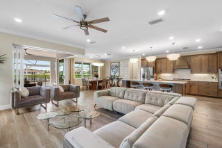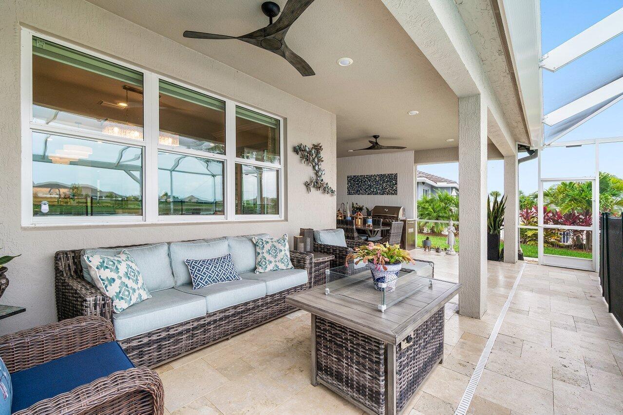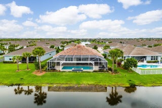 Lakefront Estate with Over $290,000 in Upgrades | Del Webb at Tradition Experience luxury living at its finest in this lakefront estate located within the prestigious 55+ gated community of Del Webb at Tradition. Expertly crafted and enhanced with over $290,000 in premium upgrades, this residence combines timeless elegance with modern comfort. Offering 3 bedrooms, 3.5 baths, a flex room/office, and an extended 3-car garage, the home showcases an inviting open floor plan ideal for entertaining. The owner's suite features tray ceilings, tranquil water views, and a spa-inspired bath with dual vanities, an oversized walk-in shower, and a spacious custom closet with direct access to the laundry room. At the heart of the home, a grand gathering room opens to a chef's kitchen boasting a large...island, granite countertops, upgraded stainless-steel appliances and cabinetry, a wine cooler, elegant tiled backsplash, and a walk-in pantry. Zero-corner impact sliders fully open to merge indoor and outdoor living, revealing a covered lanai with summer kitchen, a large screened pool with heated spa overlooking the lake, and panoramic screening and water views. Additional highlights include upgraded faux-wood tile flooring throughout, custom window treatments, custom closets in every room, a custom drop zone off the garage entry, plywood flooring in the attic, and an enhanced landscape and lighting package. This remarkable property embodies the best of Florida living luxurious, effortless, and ideally situated in one of Tradition's most sought-after active-adult communities.