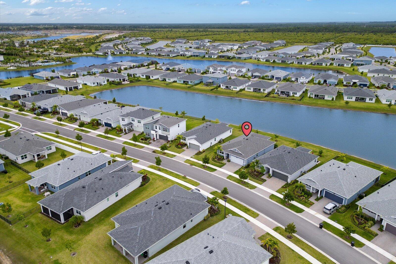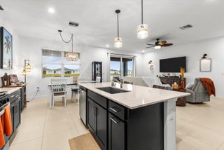 Beautiful like-new 2024-built 3-bedroom, 2-bath home with a flexible den in the desirable low-HOA community of Tradition! This gorgeous coastal-elevation home offers a bright, functional open floor plan with impact windows and doors, an extended patio overlooking the lake, and an east-facing front exposure for breathtaking sunset views over the backyard. The kitchen features quartz countertops, stainless steel GAS appliances, and a large island perfect for gatherings. Elegant tile flooring runs throughout the main living areas, combining modern finishes with comfortable Florida living. Enjoy a resort-style community pool, lush walking trails, and easy access to shops, dining, and I-95, everything you love about Tradition living! Landscaping, security, internet & cable INCLUDED with HOA!
