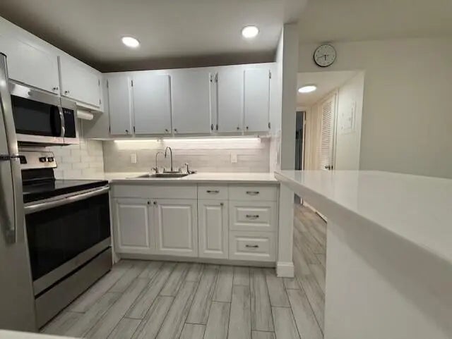 FULLY AND BEAUTIFULLY RENOVATED. FRESHLY PAINTED. BEAUTIFUL TILE FLOORS THAT LOOK LIKE WOOD, PRIMARY CLOSET IS VERY LARGE WITH SLIDING MIRROR DOORS. RENOVATED WHITE KITCHEN WITH SS APPLIANCES AND SUBWAY TILE AND QUARTZ COUNTERS. RENOVATED BATHROOM WITH SUBWAY TILES AND SAFETY BAR IN TUB/SHOWER AREA. NEW VANITY AND TOILET. LARGE WALKIN CLOSET IS GREAT FOR PANTRY AND STORAGE. GROUND FLOOR. THIS 55+ COMMUNITY IS CLOSE TO EVERYTHING INCLUDING THE POOL. COMMUNITY HAS 17 POOLS. FITNESS CENTER, TRANSPORATION WITHIN CV AND SURROUNDING AREA. HUGE CLUBHOUSE 1200 SEAT THEATRE, WOODWORK SHOP, BOCCE BALL AND MUCH MORE.