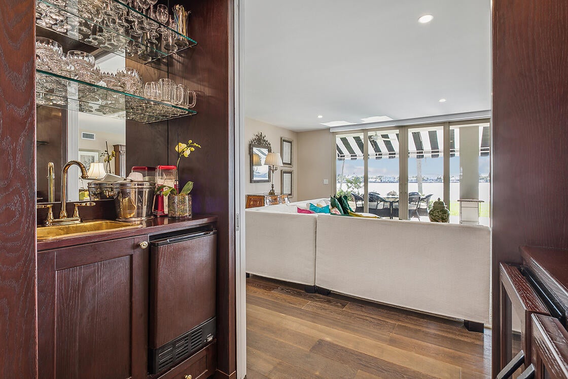 DIRECT WATERFRONT! A rare opportunity to own an exceptionally reimagined waterfront residence, this 4-bedroom, 4-bath ground-floor home at Chateau Cheverny captures the essence of refined coastal living. Meticulously renovated in 2020, this double-sized condominium offers an impressive 2,592 square feet of barrier-free elegance and the unmistakable feeling of a private home--all set against the backdrop of the majestic Intracoastal Waterway.Step into this well-situated condo unit with French oak floors into a world of timeless sophistication. The grand living room unfolds toward an expansive lanai, where manicured lawns meet endless blue horizons.Every detail has been curated for both beauty and comfort. Custom lighting, motorized blinds, and high ceilings enhance the sense of ...space and serenity. The gourmet kitchen is a culinary dream, featuring a generous island, sleek Miele appliances, and a built-in grill topperfect for hosting unforgettable gatherings. A library/office with bespoke built-ins offers a tranquil retreat for reading or work, while the wet bar adds a touch of artful indulgence. Each bedroom has been thoughtfully designed as a private sanctuary, complete with custom closet systems, Nest climate control, and sweeping water views that soothe the soul. The home is fully protected with impact windows, doors, and sliders, and constructed with concrete block and reinforced slabs for ultimate peace of mind. Outdoors, the lanai invites relaxation with lighting, ceiling fans, and a graceful awning that frames the water's edge. A covered front patio and additional storage room complete this exceptional residence. Nestled within an exclusive private island enclave, residents enjoy an atmosphere of effortless tranquility with two resort-style pools, open-air cabanas, a scenic walking trail, and a guardhouse. All thisjust minutes from world-class dining, boutique shopping, cultural attractions, and pristine beaches. This is more than a home. It's a statement of elegance, serenity, and waterfront perfection.