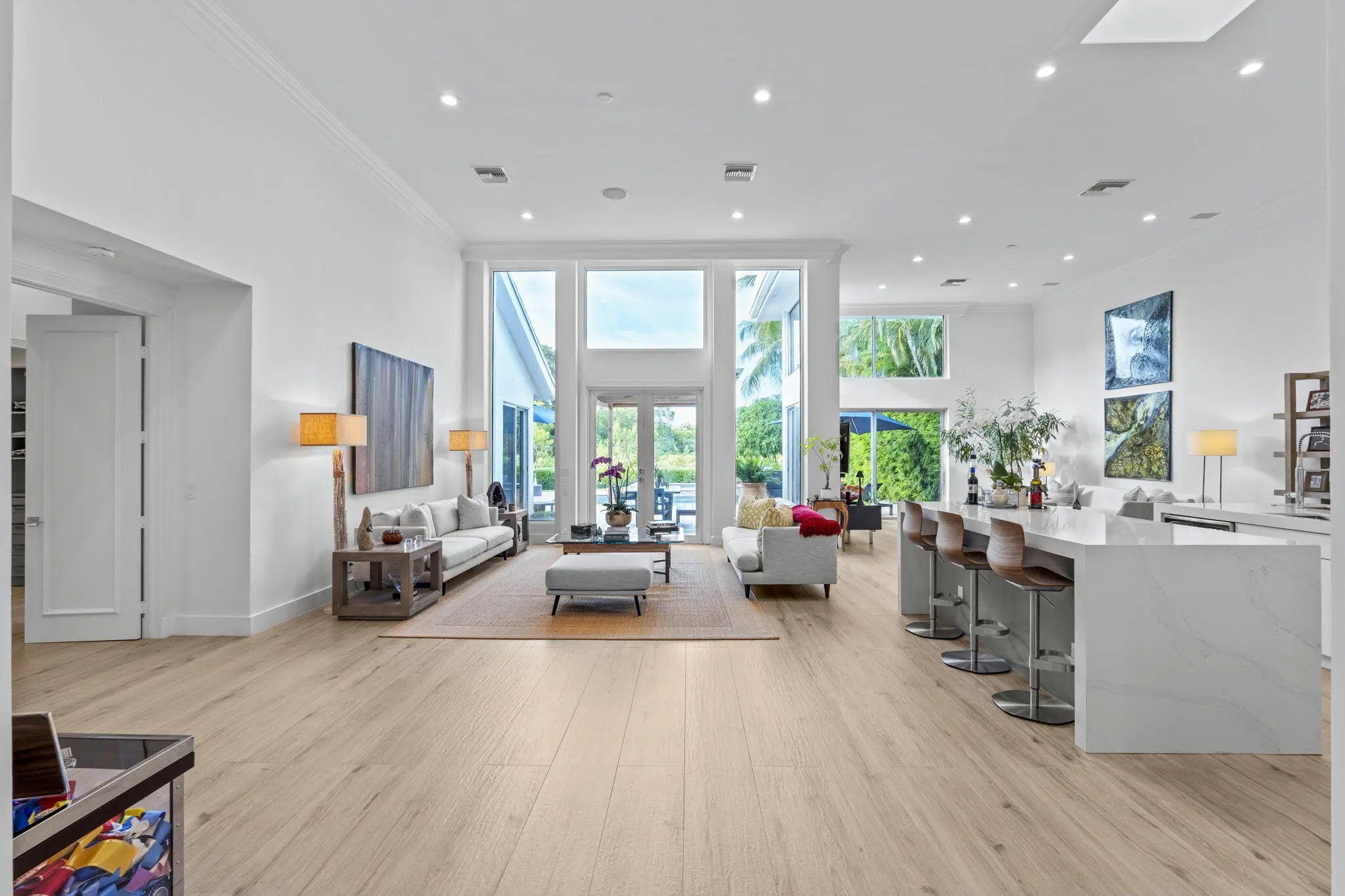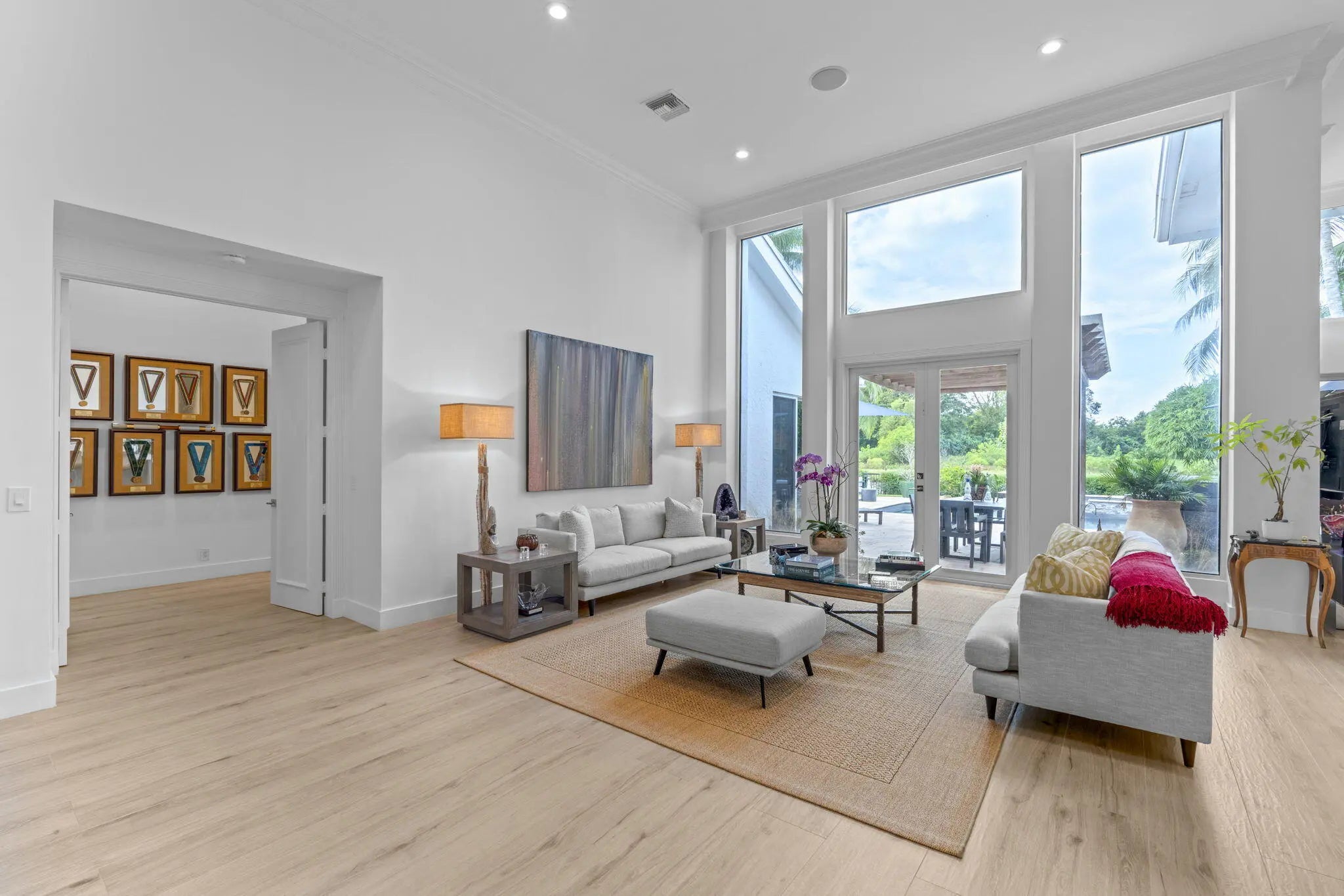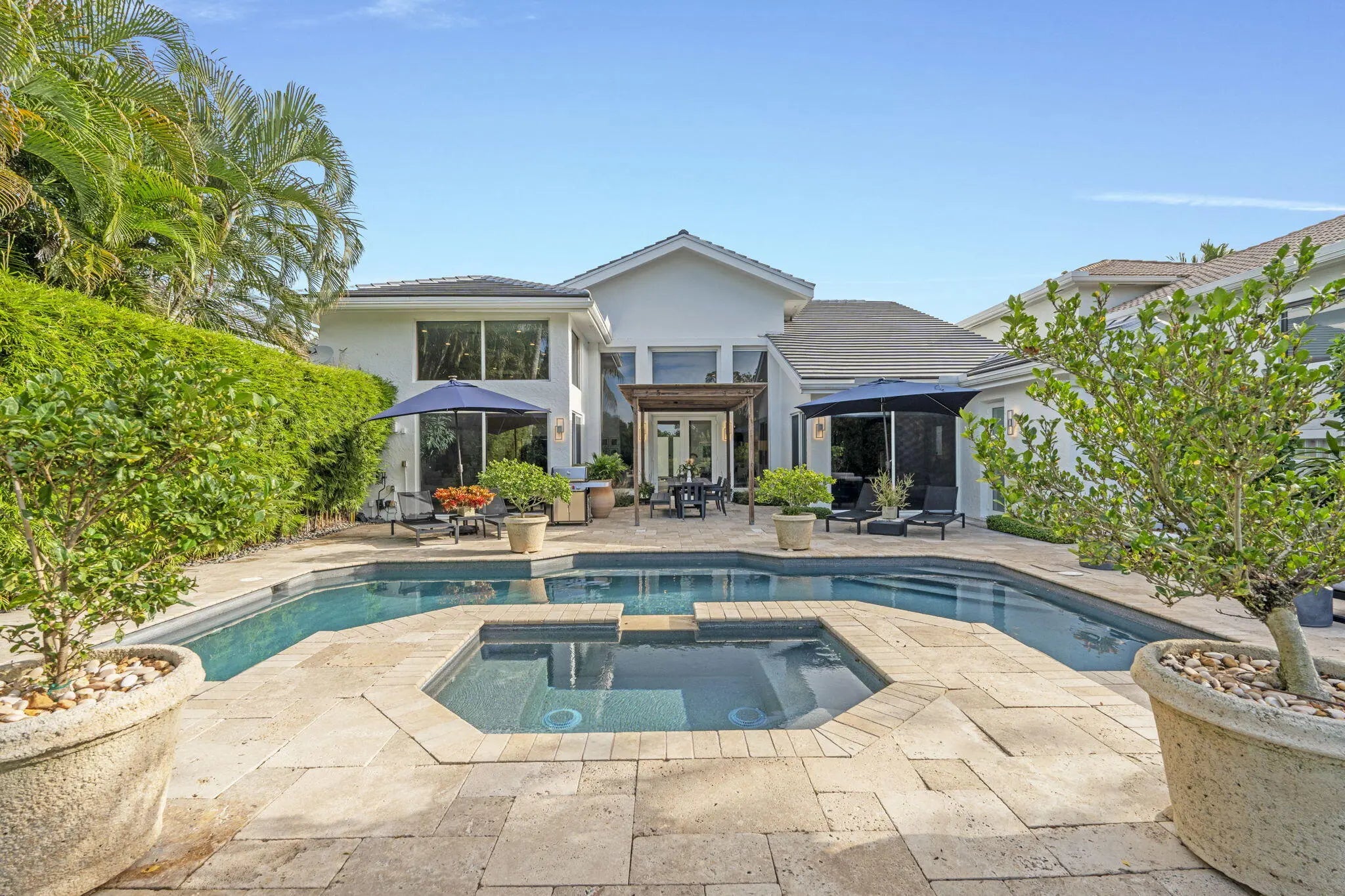 Welcome to Casa Manana. This exquisite Luxury Home, located in the prestigious Palm Beach Polo Club, has been meticulously remodeled throughout. Boasting 3-bedrooms and 4.5-bathrooms, this residence epitomizes luxury and sophistication. Step inside to discover high ceilings and a striking atrium with a water feature that bathes the home in natural light. Expansive, high-impact windows and French doors throughout, enhance the airy, open feel and provide picturesque and relaxing landscapes. Enjoy gorgeous sunsets and stunning views of the lake and nature preserve from the living area, family room, and grand master bedroom. Bask in the sun and swim in the newly resurfaced, heated, salt-water, pool and spa. Casa Manana's well hedged and fenced back yard, ensures ultimate privacy, tranquility