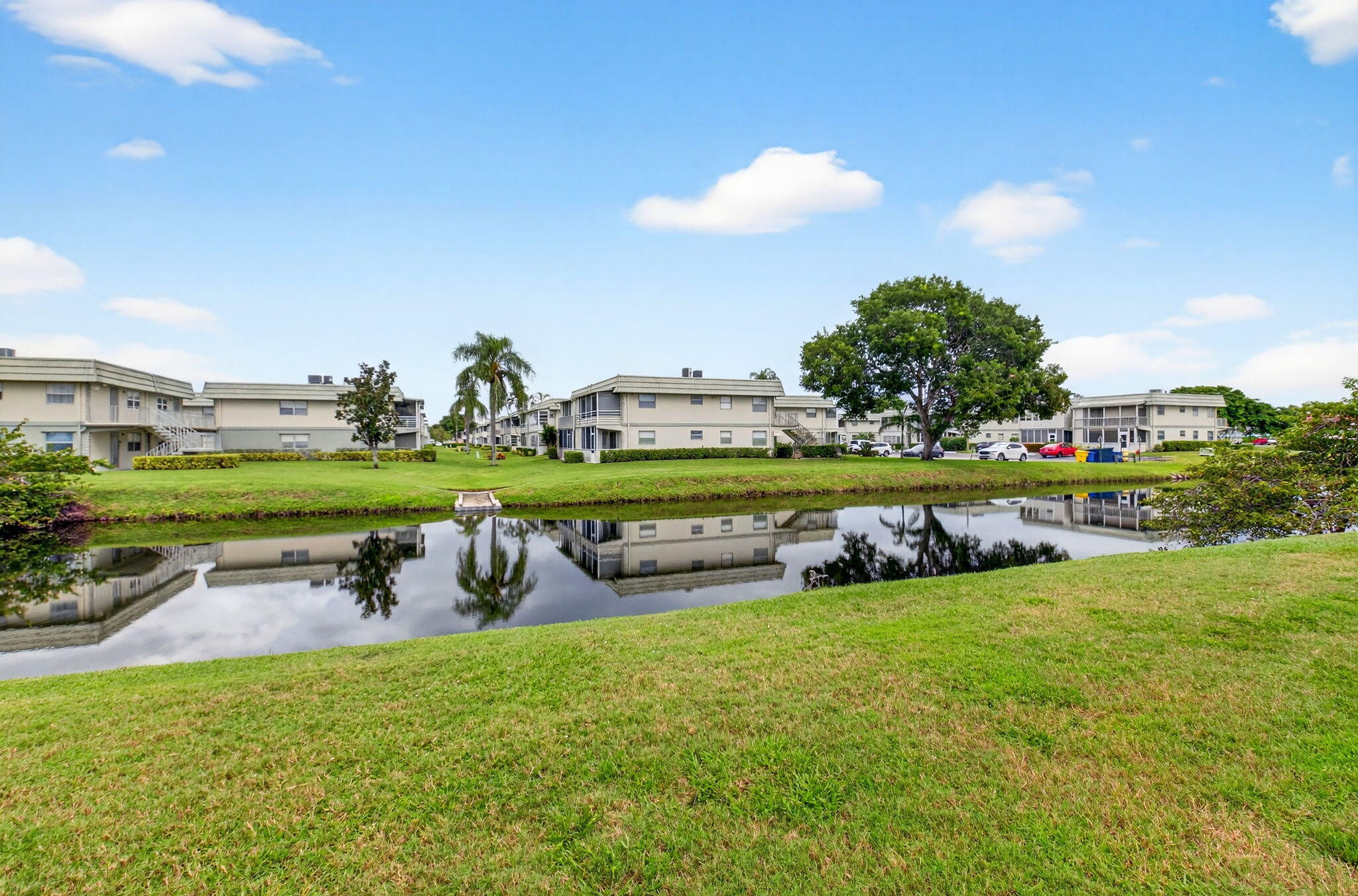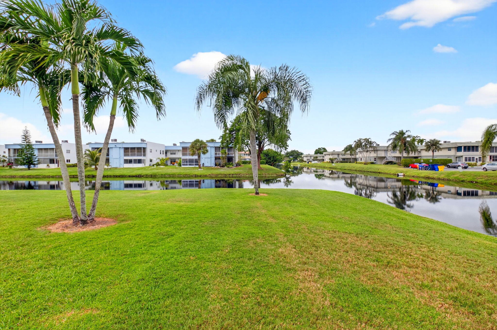 Welcome to this charming 1-bedroom, 1.5-bath furnished corner condo in the desirable Kings Point community. Enjoy a beautiful water view right from your front window and the convenience of an assigned parking space just steps from your door. This inviting home comes fully furnished, featuring a spacious bedroom with a comfortable king-size bed, making it move-in ready for. Ideally located just 10 minutes from Delray Beach's famous Atlantic Avenue and a short drive to the beach, this condo offers the perfect blend of relaxation and convenience. Residents of Kings Point enjoy access to an array of resort-style amenities, including two golf courses, nine swimming pools (indoor and outdoor), a fitness center, tennis courts, a cafe, and more.
