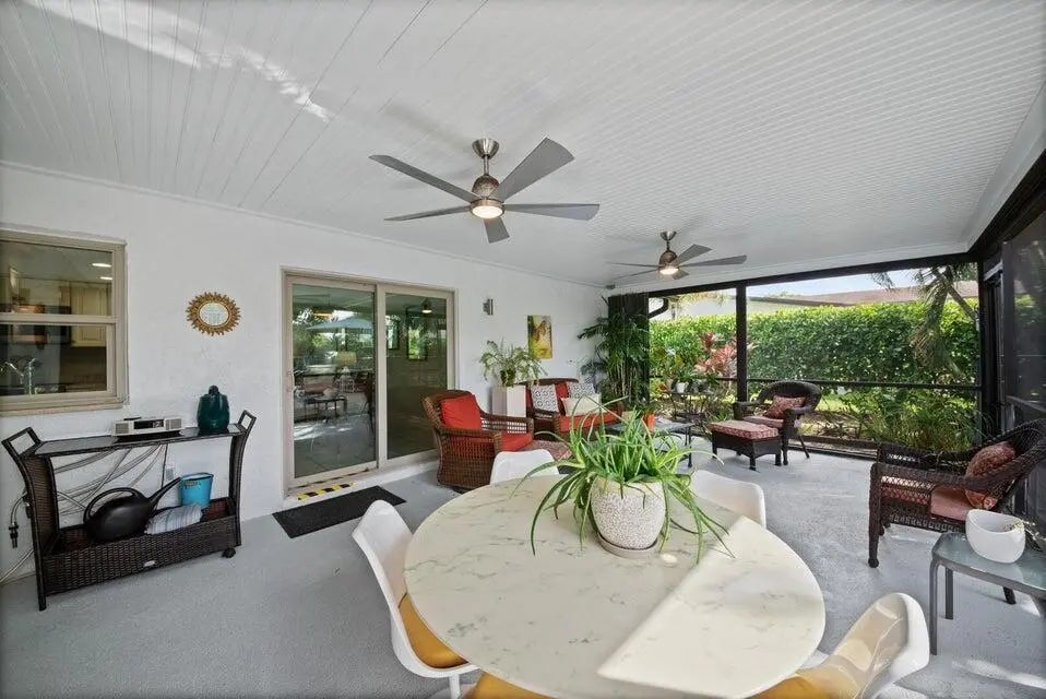 ALSO AVAILABLE FOR SEASONAL RENTAL Welcome to this exceptional furnished home in the sought-after active adult community of Coco Wood Lakes--a true tropical paradise. At the heart of this retreat is a heated saltwater pool, surrounded by beautifully landscaped foliage, creating a serene setting for relaxation or entertaining. Enjoy your own private outdoor shower and unwind on the screened patio with a charming beadboard ceiling--perfect for peaceful mornings or lively gatherings. Inside, the bright and inviting layout features a living room, formal dining area, and cozy family room. The dream kitchen is designed for both style and function, offering Quartz countertops, cabinetry with pullouts, and a pass-through to the patio for effortless indoor-outdoor living.