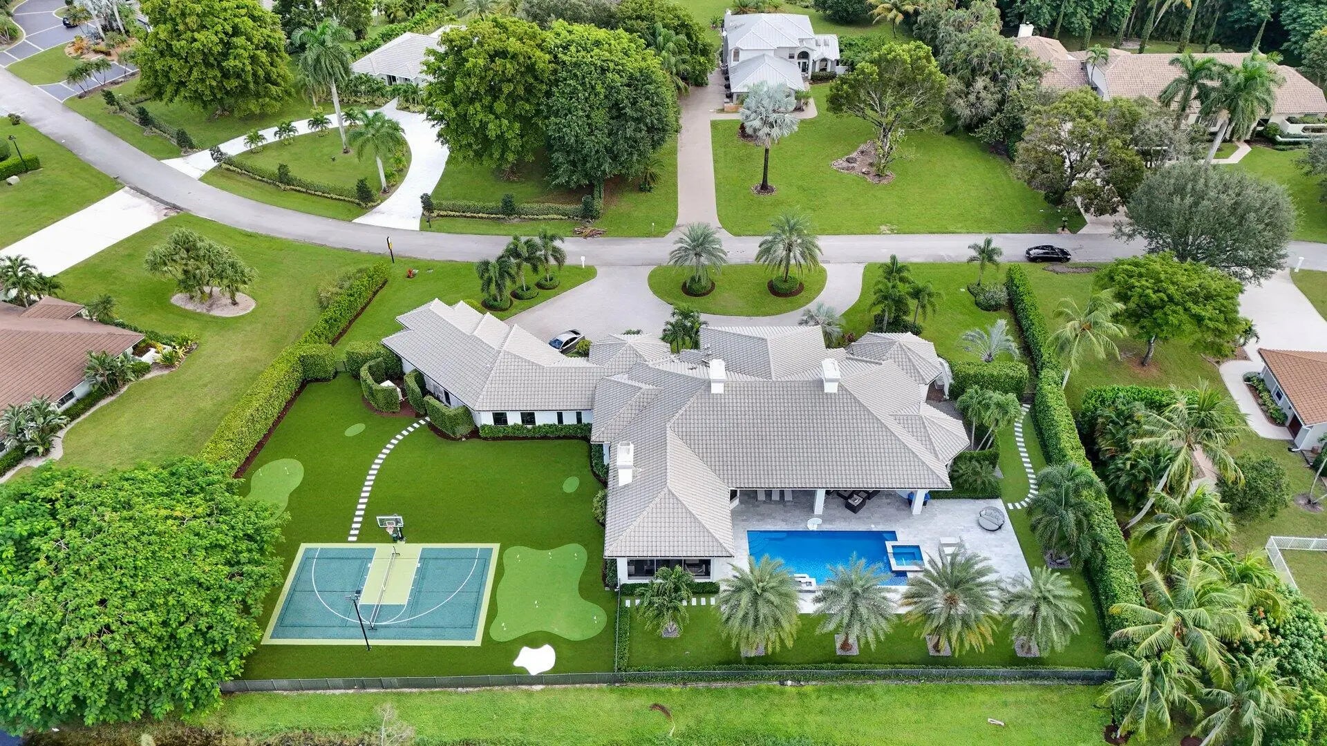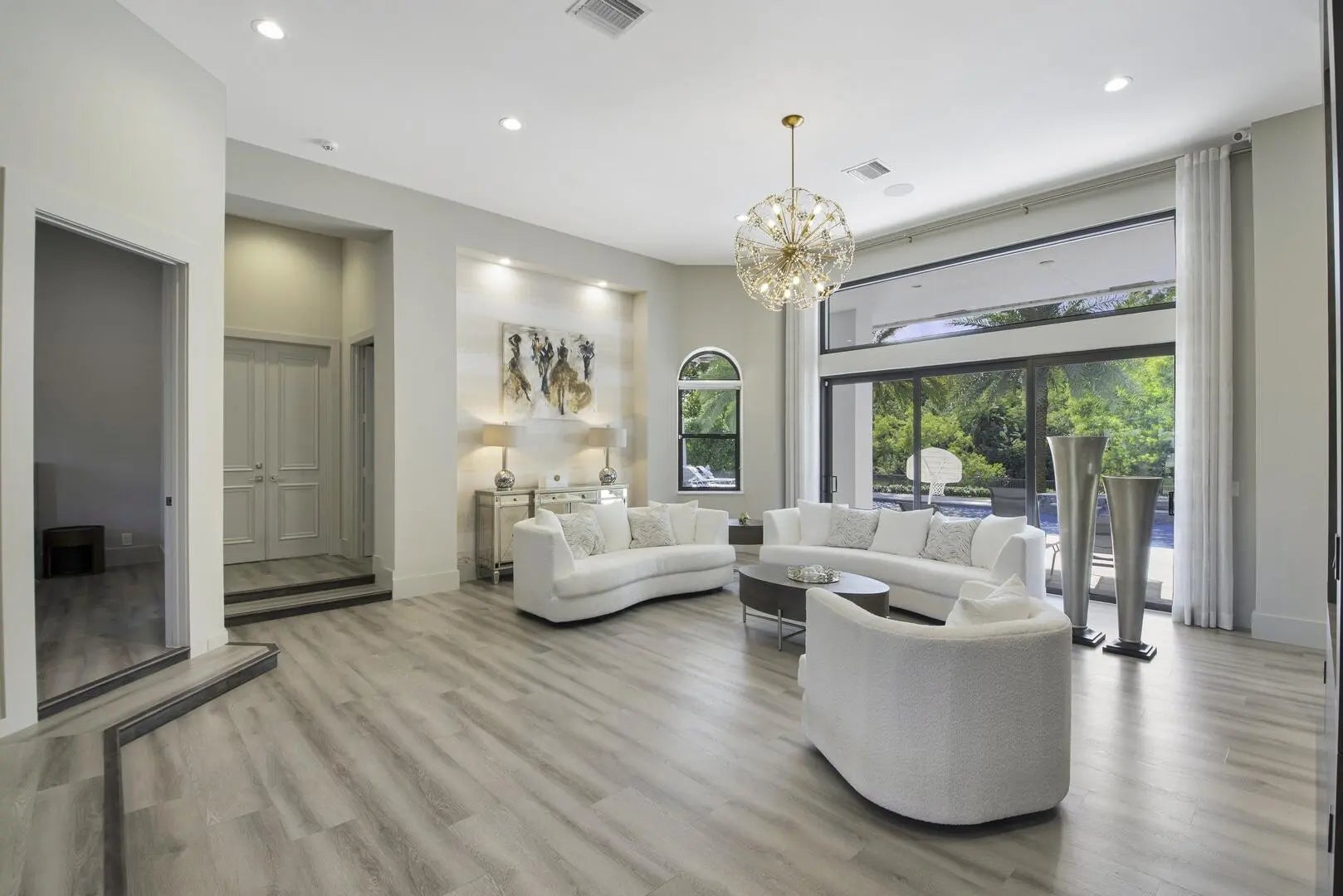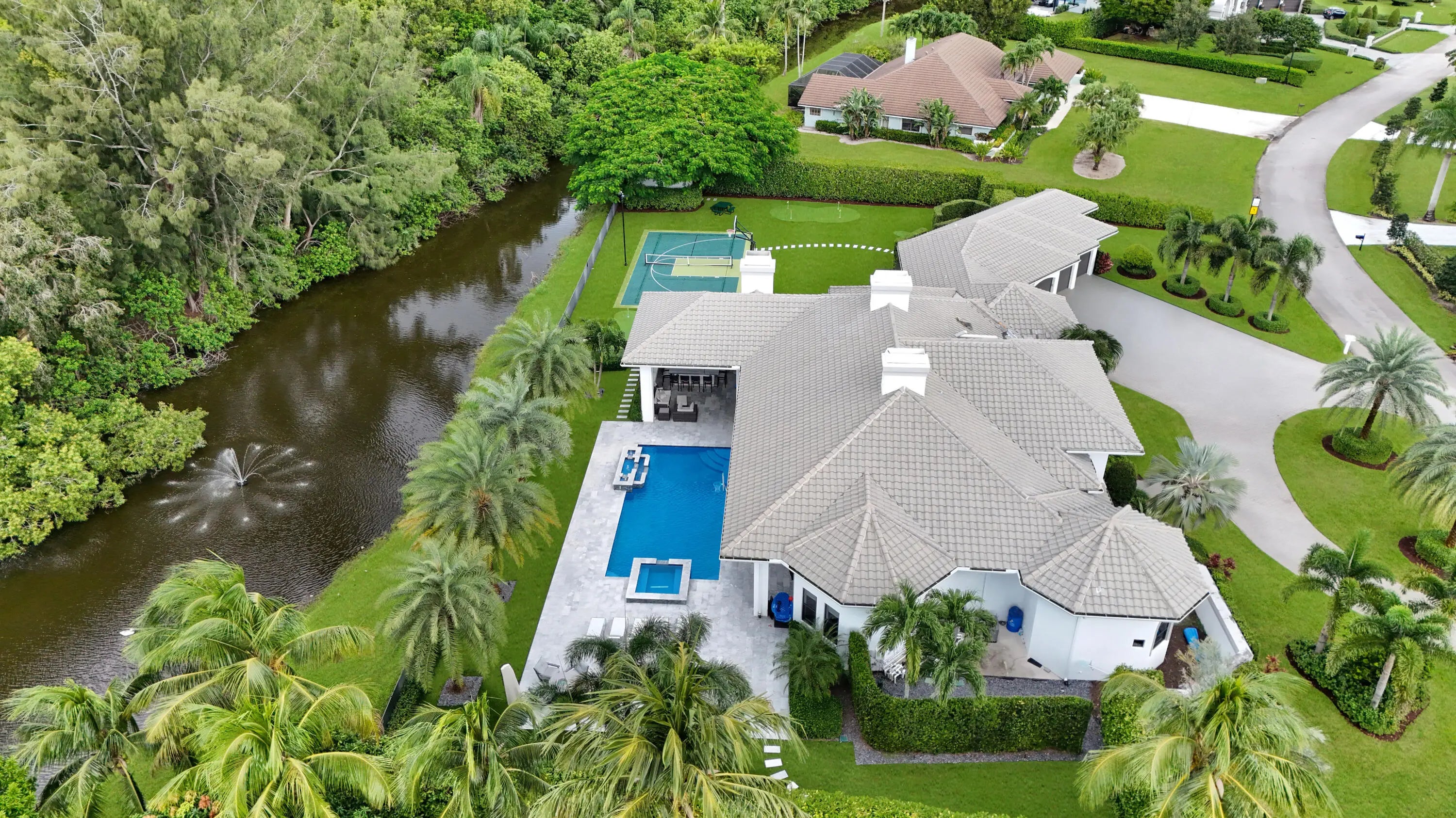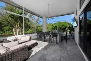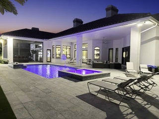 Experience luxury living in this extraordinary contemporary estate, perfectly set on a full acre of waterfront. This sophisticated ranch showcases a spacious split floor plan, den, soaring ceilings, and designer finishes throughout. The brand-new European-style kitchen boasts sleek cabinets, quartz countertops, a center island, stainless-steel appliances, snack bar, and breakfast nook, flowing seamlessly into the family room with a wet bar. The spacious primary suite impresses with oversized sliders to the patio, dual custom closets, double sinks, a soaking tub, and a walk-in shower. Enjoy new flooring, full impact windows, a new roof, updated A/C units, and a well-equipped laundry room.