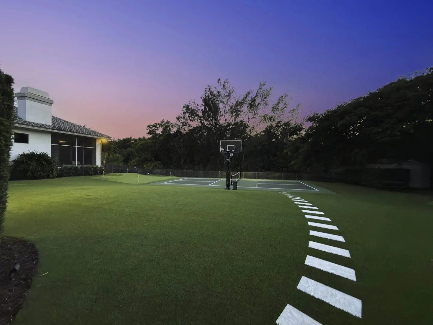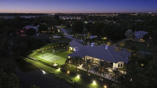 Auto Sprinkler, Covered Patio, Custom Lighting, Fence, Lake/Canal Sprinkler, Open Patio, Screened Patio, Summer Kitchen, Tennis Court, Zoned Sprinkler