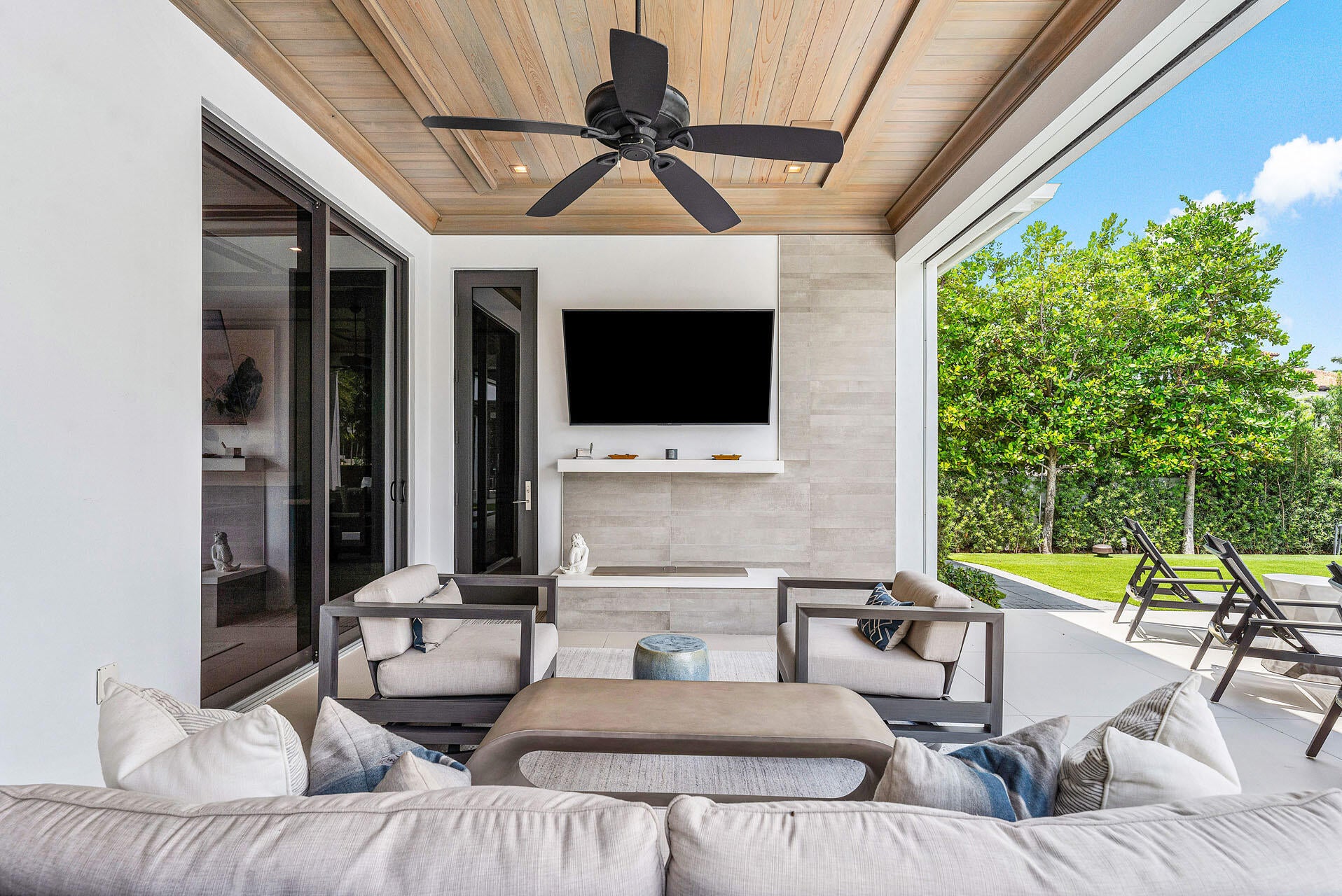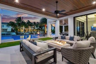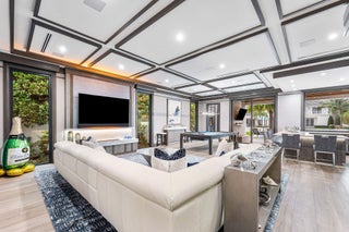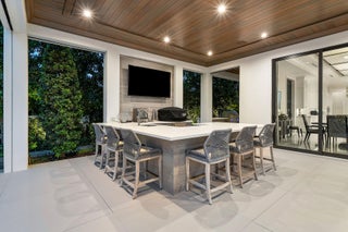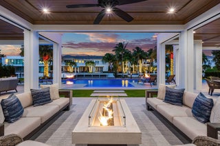Nestled along 100 feet of the Butterfly Palm Waterway, this custom SRD Building Corp. 5-bedroom residence is a masterpiece of modern luxury. The resort-style backyard features a zero-edge pool and spa, fire bowls, a covered terrace, and a private dock for effortless boating. Inside, the open floor plan showcases a bright white chef's kitchen, designer bar and wine room, and a custom wood-clad study. The upstairs primary suite is a true retreat with His & Her baths, boutique closets, a fitness room, and a private balcony with outdoor fireplace and stunning water views. Crestron smart-home controls offer seamless management of lighting, climate, and entertainment. Experience refined waterfront living where luxury and functionality meet.