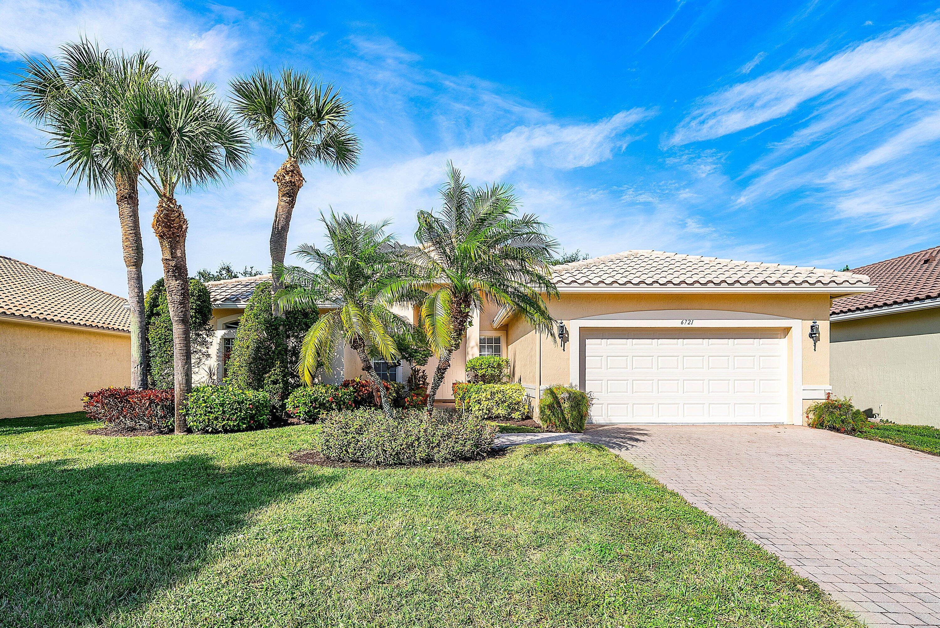 Discover the sought-after Rubicon model with three bedrooms plus an office. perfectly positioned on a tranquil cul-de-sac with lush green space and lake views. A generous setback, the home unfolds like a private estate. Located in a gated active adult community with a newly renovated luxury clubhouse and a soon to come sports complex, Ponte Vecchio offers something for everyone.