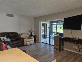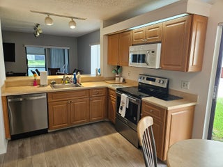 Available Jan 1st in the gated 55+ community of Palm Chase. This beautiful 2 bed, 2 bath condo is incredibly spacious and offers an oversized screened-in patio with breathtaking views of the lake. There's ample living space with a large living room, separate open den/office, dining room and an eat-in kitchen. The master bedroom features a walk-in closet, a standard closet, and an en-suite bathroom with a walk-in shower. The entire unit has newer luxury vinyl flooring throughout and newer stainless steel appliances. There's a full washer and dryer located inside the unit as well and a newer A/C. Water and basic cable included. No pets per association - ESA and service animals are welcomed.Palm Chase is a premier 55+ community offering a heated salt water pool, hot tub, clubhouse, auditorium, and tennis courts with many clubs, activities and social events.