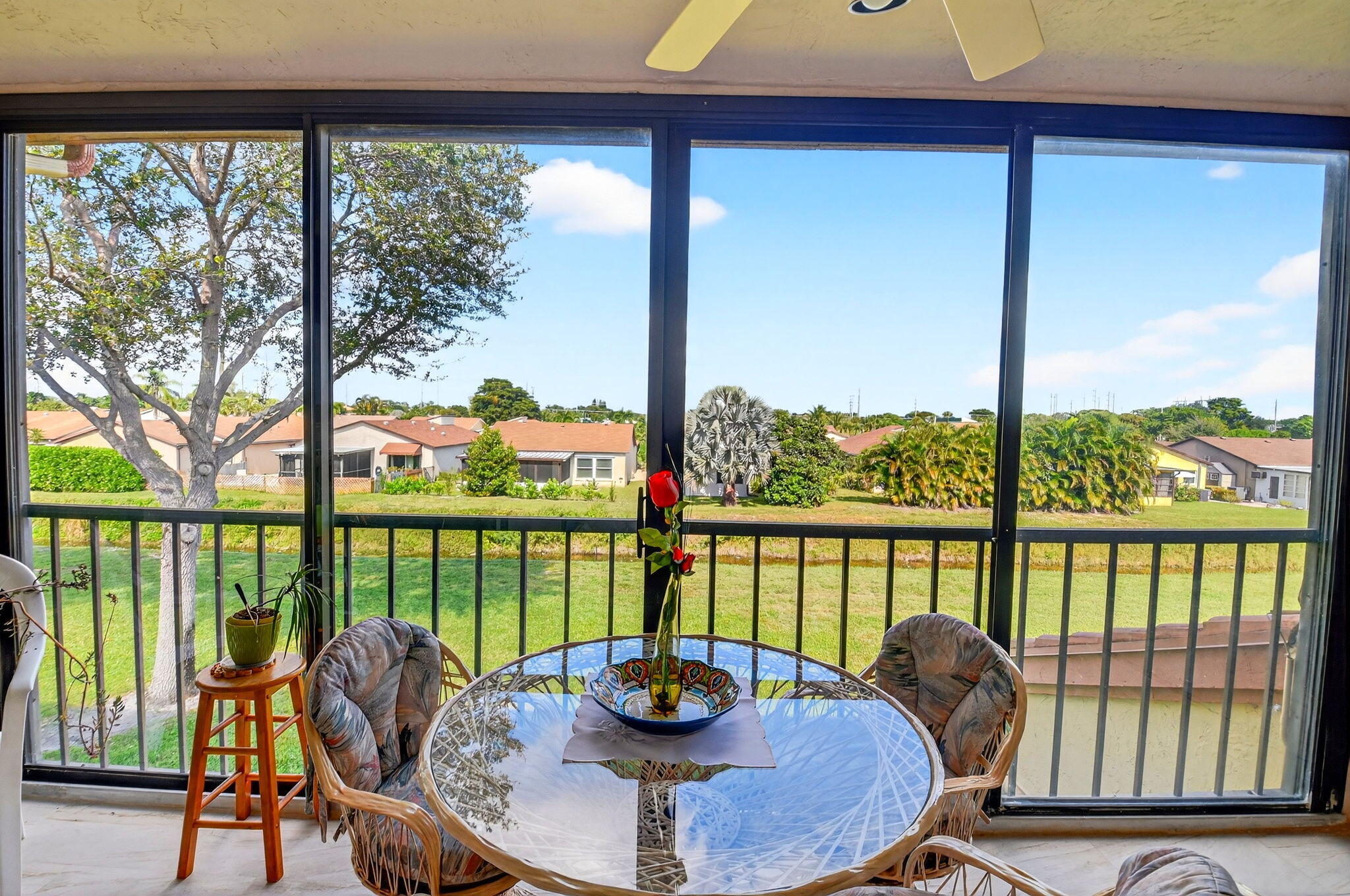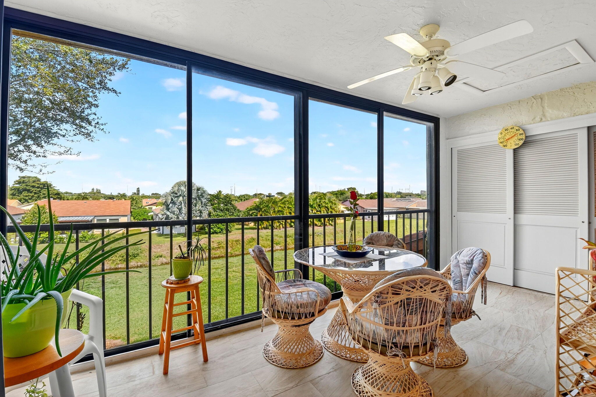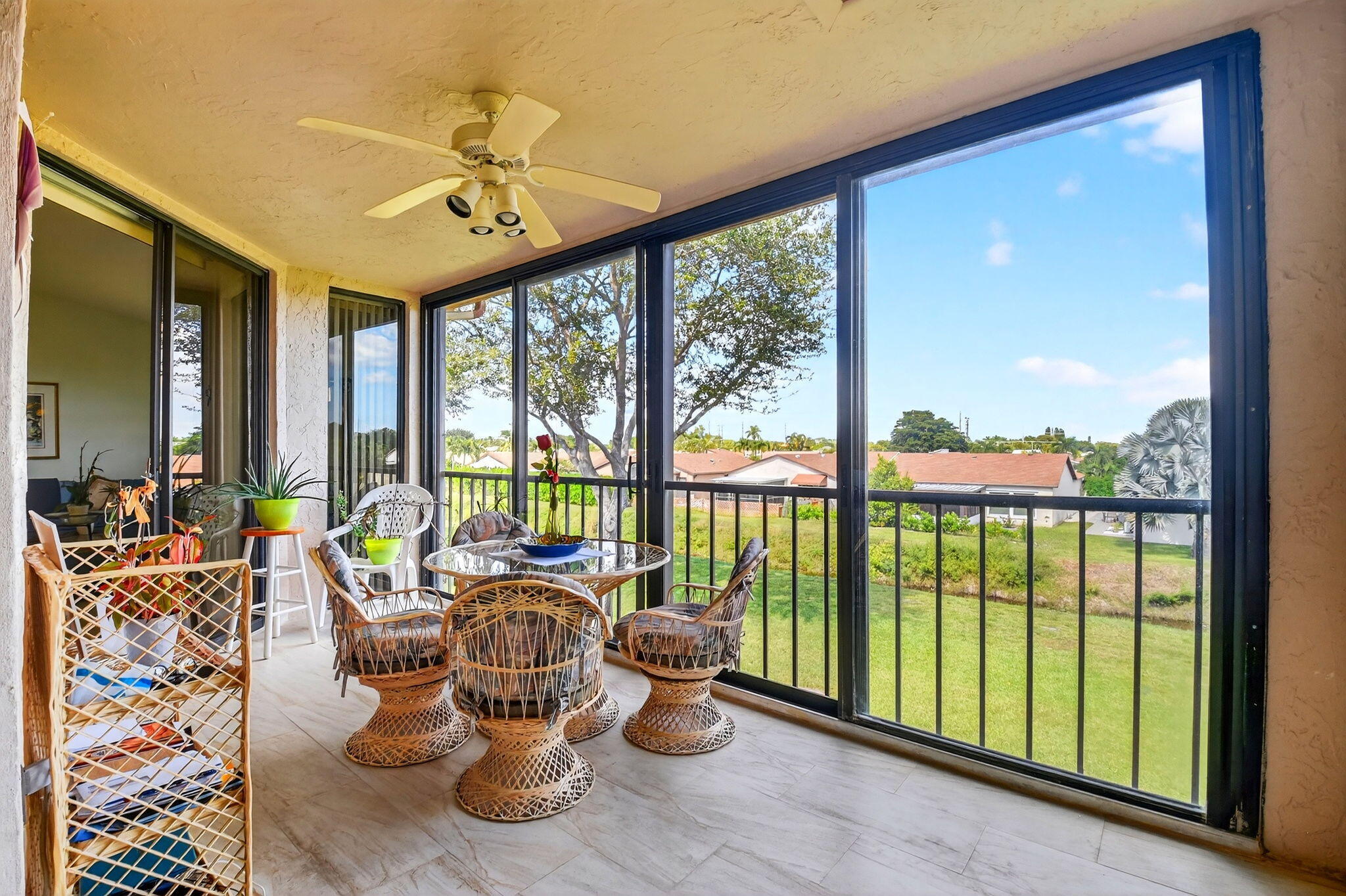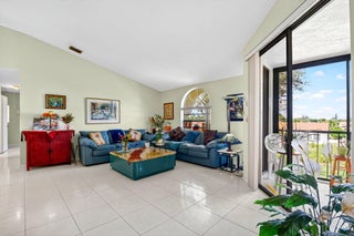 PERFECTION in Platina! Fantastic second floor 3/2 top floor unit w separate entrance, private elevator & prime location in ''The King of Clubs'', as this guard-gated resort style community has come to be known in Boynton Beach. Take the stairs or your own elevator up to the open, airy interior & notice sweeping vaulted ceilings, gleaming tile floors, & beautiful view from glass enclosed porch off the LR & primary BR. Great layout w split BRs, eat in kitchen, & versatile 3BR/den. Features include wood cabs., granite counters, & nice appliances in a kitchen suitable for cooking enthusiasts, & all you desire in spacious ensuite main BR, w soaking tub, separate shower, dual sinks, & walk-in closet. Come live the life you desire & deserve in fabulous Platina, described in add'l info attached.Unit is near to the multi-million-dollar clubhouse, where there is so much to keep you busy! Perhaps poolside dining at your resort sized swimming pool and clubhouse with neighbors and friends. Or you may choose to relax quietly at the satellite pool. If fitness is your enjoyment, Platina has a state-of-the gym, and every sports activity imaginable, including tennis, pickleball, billiards, racquetball, bocce, and shuffleboard. Numerous clubs are available to join; you can try fun crafting, play cards, attend parties, see entertainment acts, and more. Platina is desirably and conveniently located to shops, dining, highways, international airports and BEAUTIFL Florida BEACHES! In addition to all of these amenities, the association fee include fiber optic cable television, high speed internet, pest control, water and a 24-hour manned gate. Come live the fabulous lifestyle Platina has to offer!