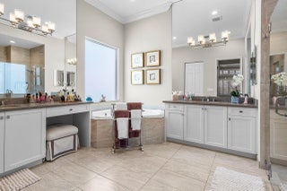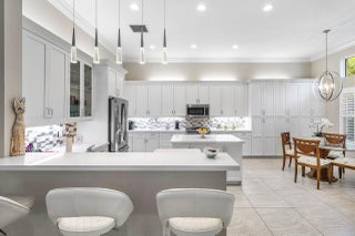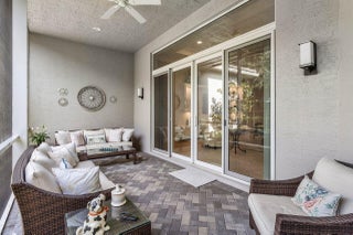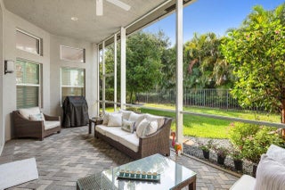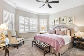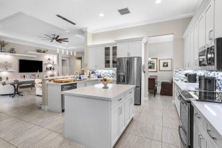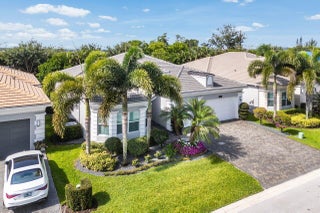 Experience refined living in this elegantly appointed and highly coveted Julia floor plan, perfectly situated on a lush, private, and lot. This home radiates curb appeal with its soothing gray exterior, decorative driveway, 3-car garage, and professionally designed landscaping with sculpted topiaries.Inside, you're greeted by dramatic volume ceilings, custom crown molding, abundant recessed lighting, natural sunlight, and pristine tile floors throughout. The open-concept Great Room is both stylish and inviting, featuring a stunning contemporary built-in entertainment wall, illuminated display shelves, and a high-end ceiling fan--ideal for effortless entertaining or relaxing.The light and bright chef's kitchen is a true ...showstopper, offering white straight-edge quartz countertops, a large quartz island with storage, tranquil stone backsplash, white Shaker cabinetry with pull-outs, top-tier stainless steel appliances (including French-door refrigerator), charming casual dining with backyard views, plantation shutters, snack bar with elegant pendant lighting, and a generous walk-in pantry. The formal dining room flows seamlessly from the kitchenperfect for gatherings. The primary suite (currently used as an office and not pictured) features rich laminate flooring, a bay window, tray ceiling, dual walk-in closets with custom built-ins, and a luxurious bath retreat with Roman tub, dual quartz vanities, a beautifully tiled frameless-glass shower, and full-height mirrors for added elegance. On the opposite side of the home, you'll find a stylish powder room with quartz counters. " Bedroom 2 offers a walk-in closet with custom built-ins, an atrium view, and an en-suite bath with tub/shower combo, designer tile, and granite vanity. " Bedroom 3, located at the front of the home, features a bay window, walk-in closet with custom built-ins, and an en-suite bath with glass-enclosed shower and granite vanity. " The 4th room serves perfectly as a den, complete with double pocket doors and laminate flooring. Step outside to your private outdoor oasis: a fully covered, screened-in patio with herringbone paver flooring, lush landscaping, and a fully fenced yardperfect for fur-babies and relaxing Florida evenings. This home is equipped with impact glass windows and doors and a whole-house generator, offering peace of mind during storm season. Additional updates include fresh exterior paint, a new water heater (2025), and high-end LG washer and dryer. This gem is located in Valencia Bay which is is an exceptional, active community offering resort-style pools, café, card rooms, social hall, arts & crafts studios, a state-of-the-art fitness center, tennis, pickleball, clubs, and endless activities. Live the Florida lifestyle you've been dreaming of!