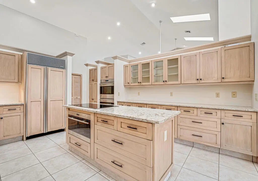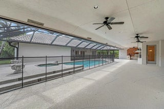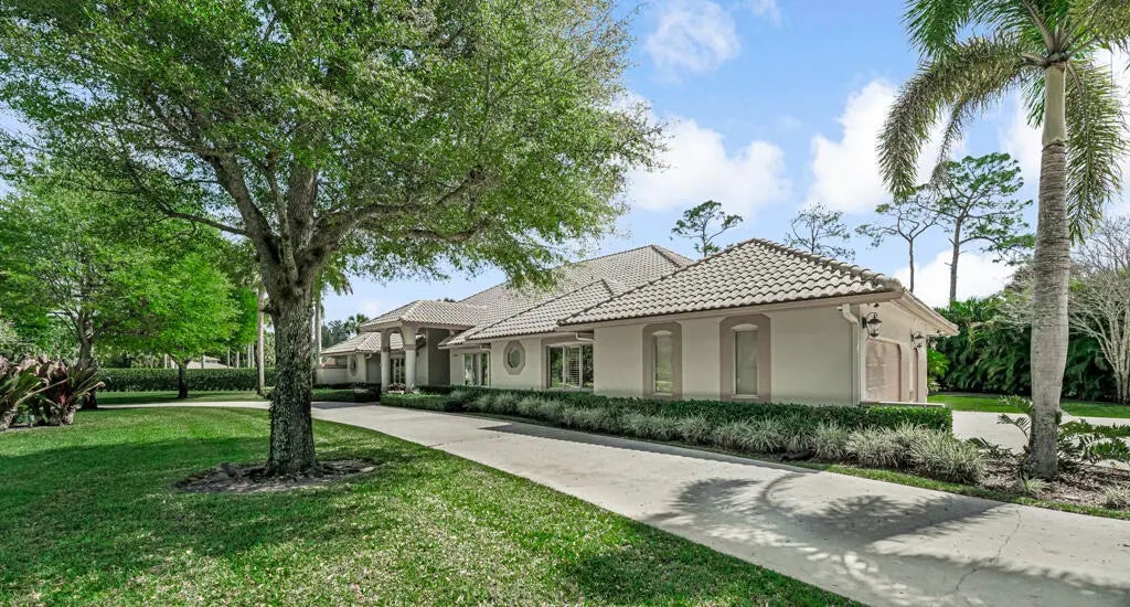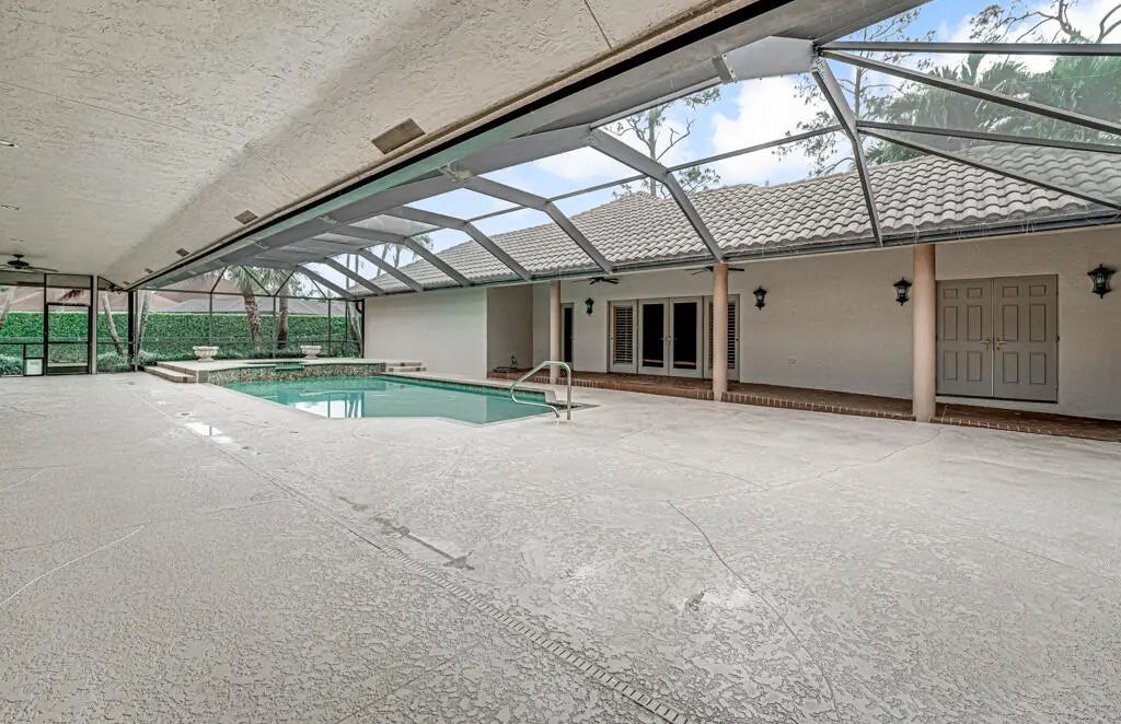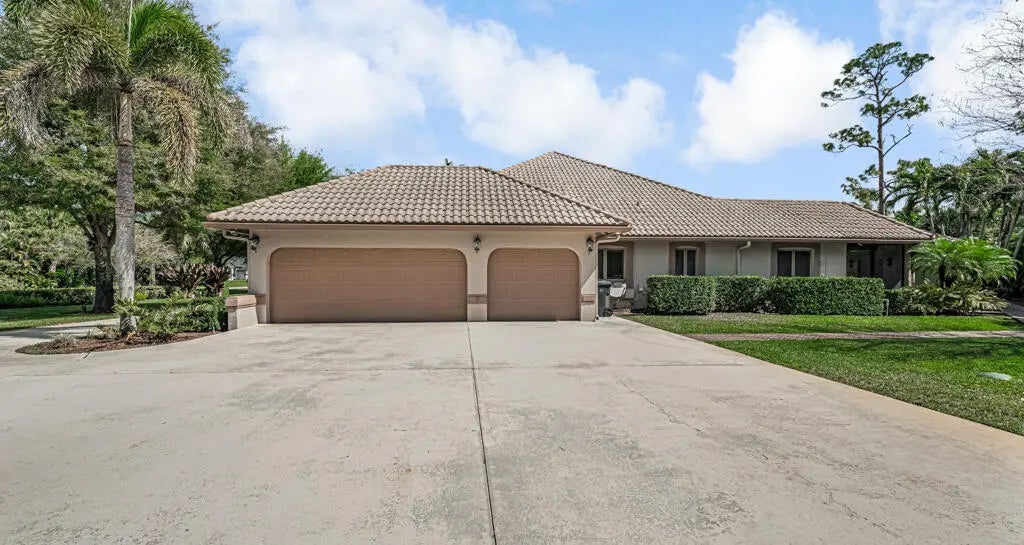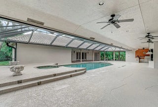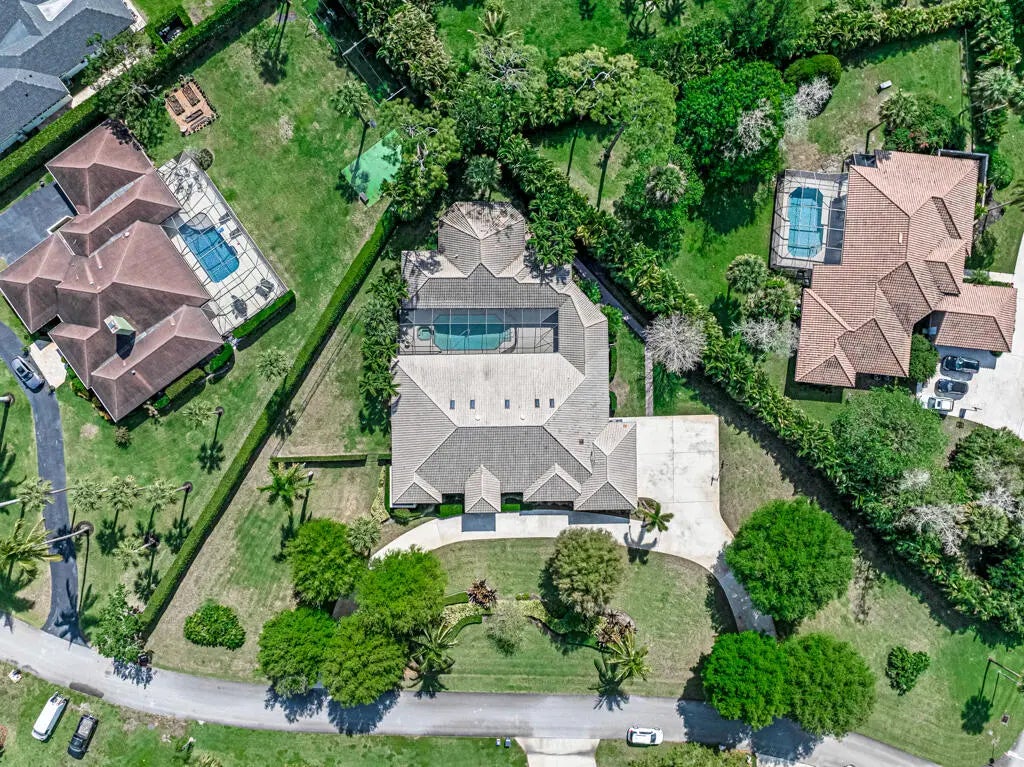 This custom-built estate in sought-after Pinewood spans 5,000 sq ft on a private, lushly landscaped lot designed for both entertaining and living. Featuring 4 bedrooms and soaring cathedral ceilings, and skylights, the home exudes elegance. Formal living and dining areas flow into a spacious family room and updated kitchen. Hurricane impact doors open to a screened-in patio with a resort-style pool, outdoor kitchen, and fenced side yard. A private guest house offers flexible space for additional bedrooms and entertainment. Home is meticulously maintained, including a guest house generator for added security. Located in a quiet community with A-rated schools, this is a rare opportunity to own a Wellington classic!