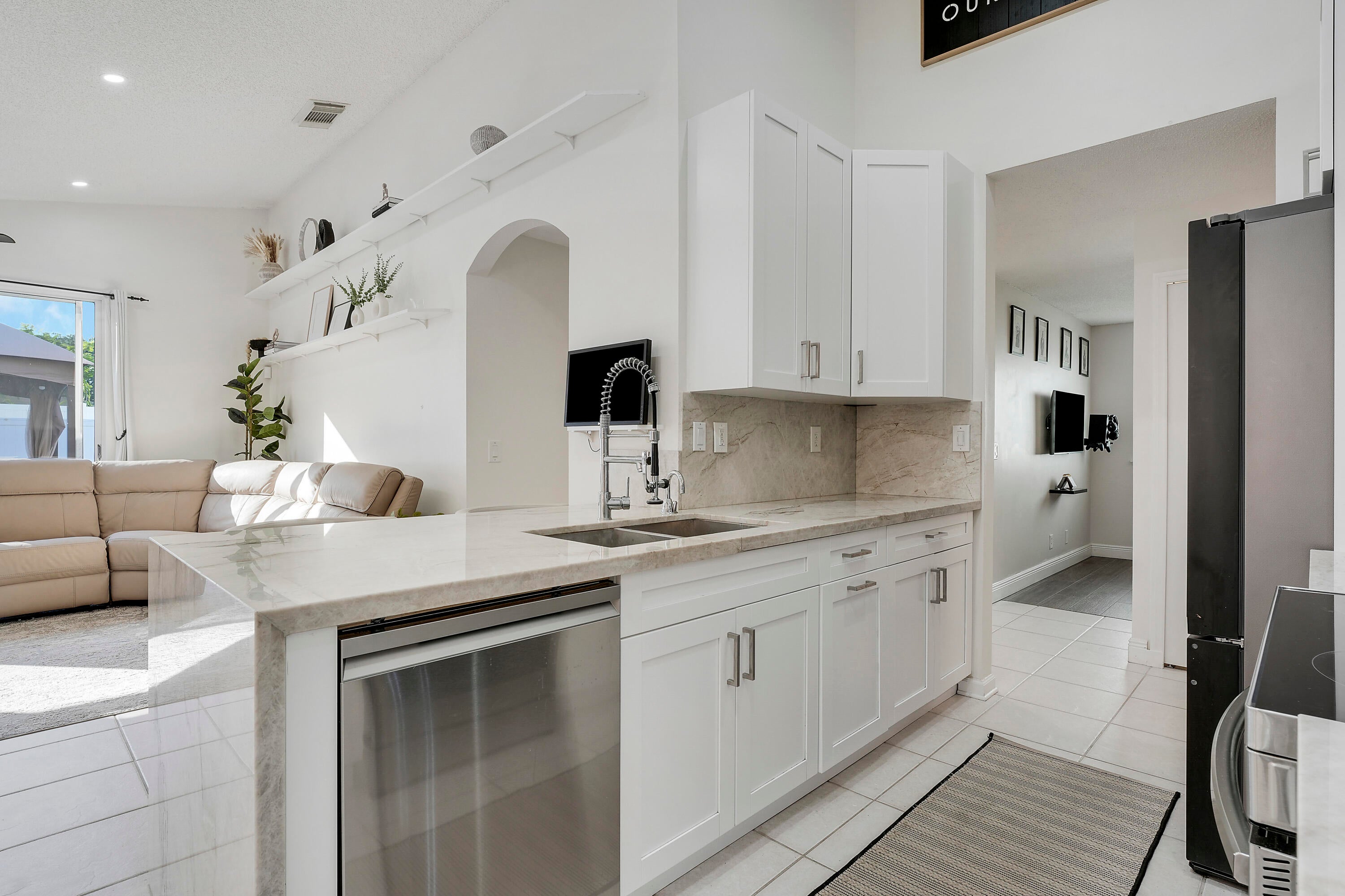 Beautifully updated 3-bedroom + OFFICE (easy 4th bedroom conversion) home featuring a NEW 2024 roof and modern, move-in-ready finishes throughout. The renovated kitchen (2022) offers 42'' white shaker cabinets, Tah-Maj waterfall countertops, and Samsung SmartThings appliances.Enjoy custom living room built-ins with panel detailing, an updated primary bath (2022), custom built-in closets, a refreshed guest bath, and new flooring in every room (2022). The home also includes high-hat lighting, vaulted ceilings, ADT security, a silent MyQ garage opener, and four exterior cameras.Step outside to a private backyard with a pergola--perfect for relaxing or entertaining. Well maintained and beautifully upgraded, this home is truly move-in ready and now offered at an exceptional value.