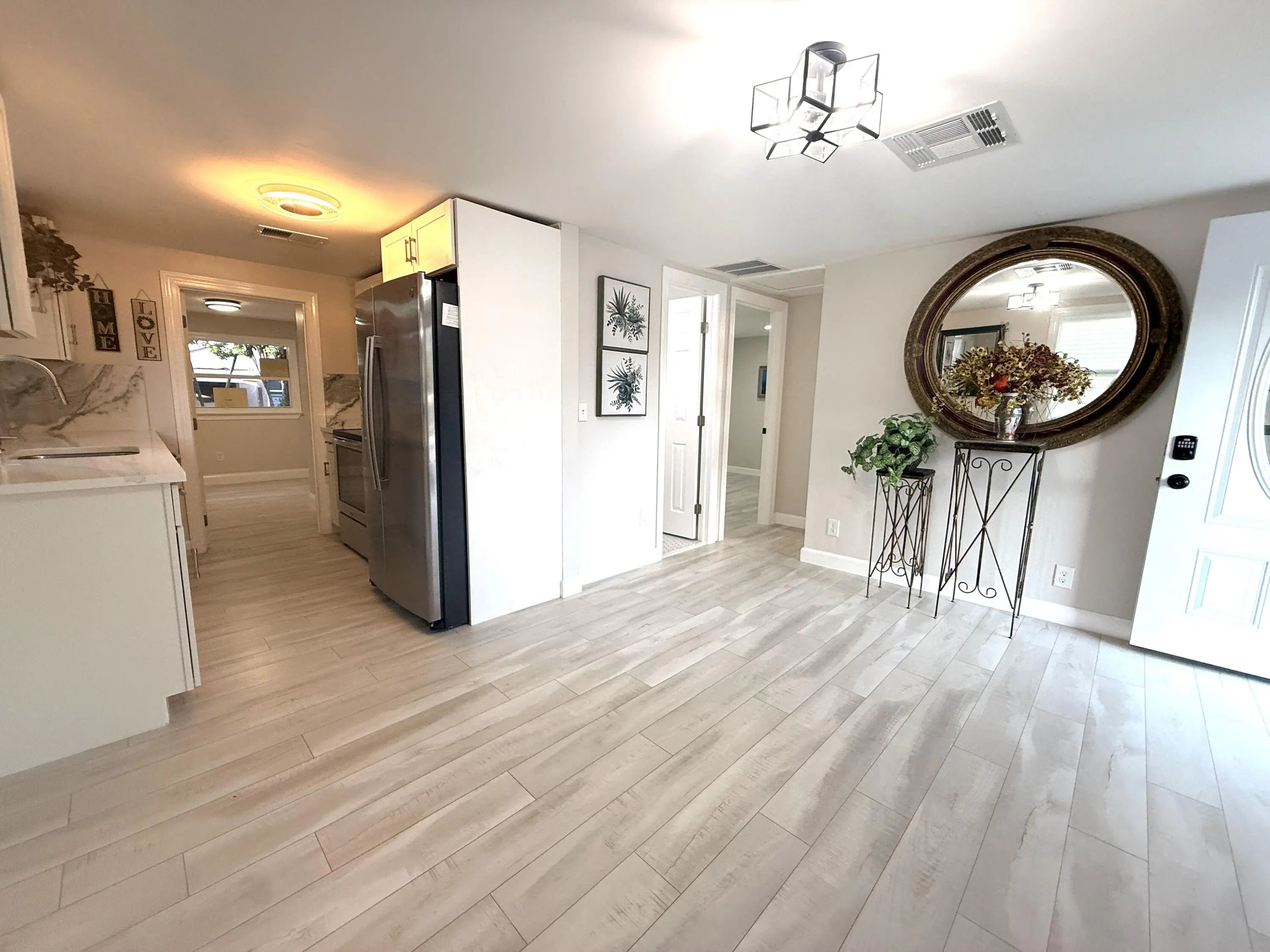 why rent ???? priced right !!! TOTALLY RENOVATED WITH NEW ROOF, IMPACT WINDOWS , NEW KITCHEN WITH QUARTZ COUNTERTOP, STAINLESS APPLIANCES , NEW FLOORING, NEW BATHROOM , NEW STUCCO EXTERIOR ...AND MUCH MORE ***. NO HOA **. WHY RENT ???WHEN YOU CAN OWN THIS BEAUTIFULLY RENOVATED 3 BEDROOM 1 BATHROOM HOME IN DESIRABLE LANTANA FLORIDA**. Discover this totally renovated home -located in the heart of lantana ** - just minutes from the beaches, marinas, parks, and top dining. This move -in- ready beauty features modern finishes throughout, including fresh interior and exterior paint, updated flooring, new lighting, and a bright open layout perfect for everyday living and entertaining. Enjoy the brand-new designer kitchen with sleek cabinetry, quartz counters, and stainless-steel appliances.