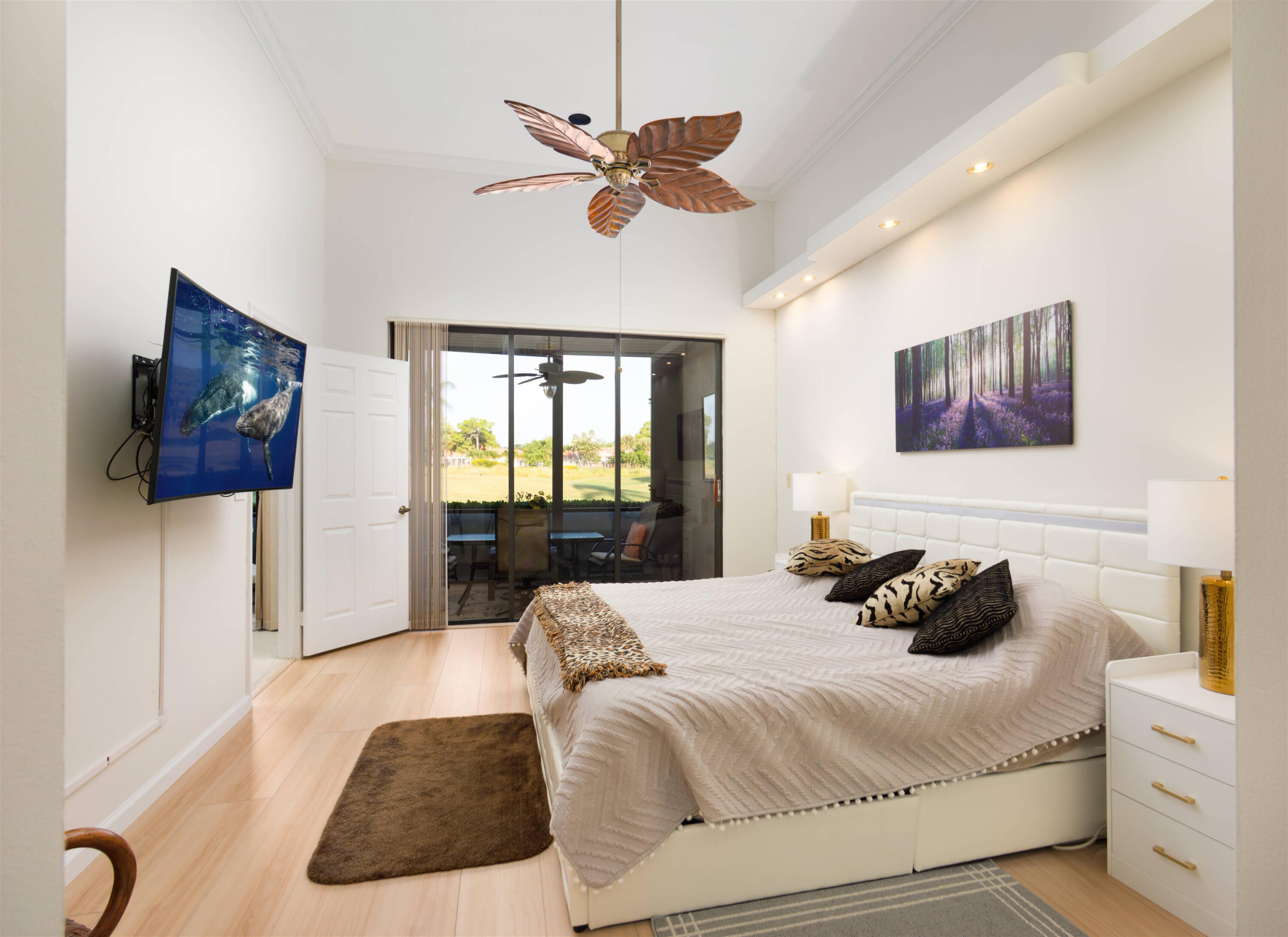 Set along the picturesque fairways of PGA National, this beautifully maintained single-story townhouse offers an inviting blend of comfort, style, and effortless indoor-outdoor living. Bright and airy with high ceilings and abundant natural light, the open-concept living and dining areas flow seamlessly to a covered, screened patio overlooking the golf course and tranquil lake beyond--an ideal setting for morning coffee or evening relaxation. The kitchen features crisp white cabinetry, marble-look quartz countertops, and a sleek glass subway tile backsplash, along with a convenient snack bar perfect for casual dining or entertaining. A flexible den/office provides an additional living space that can easily serve as a third bedroom. The spacious primary suite is a peaceful retreat, enhancedby high ceilings, warm white oak laminate flooring, a walk-in closet, and sliding doors that open directly to the patio. The renovated en-suite bathroom offers a spa-inspired feel with modern vanities, quartz surfaces, and a beautifully appointed glass-enclosed shower. Additional conveniences include full hurricane protection with accordion shutters and impact windows, plus an extra refrigerator in the garage. With immediate golf course access and sweeping lake views, this residence offers the quintessential PGA National lifestyle in a quiet, sought-after community.