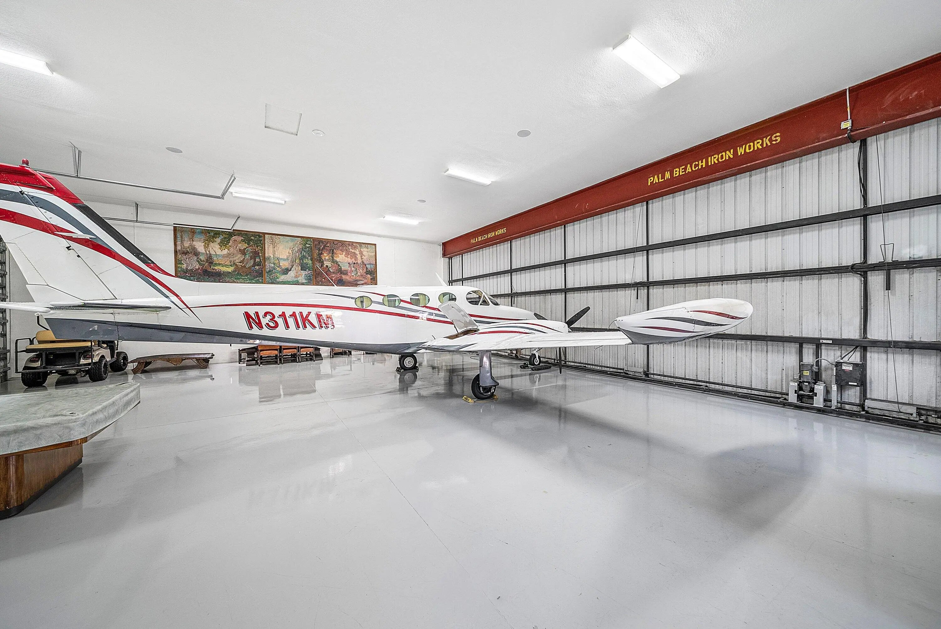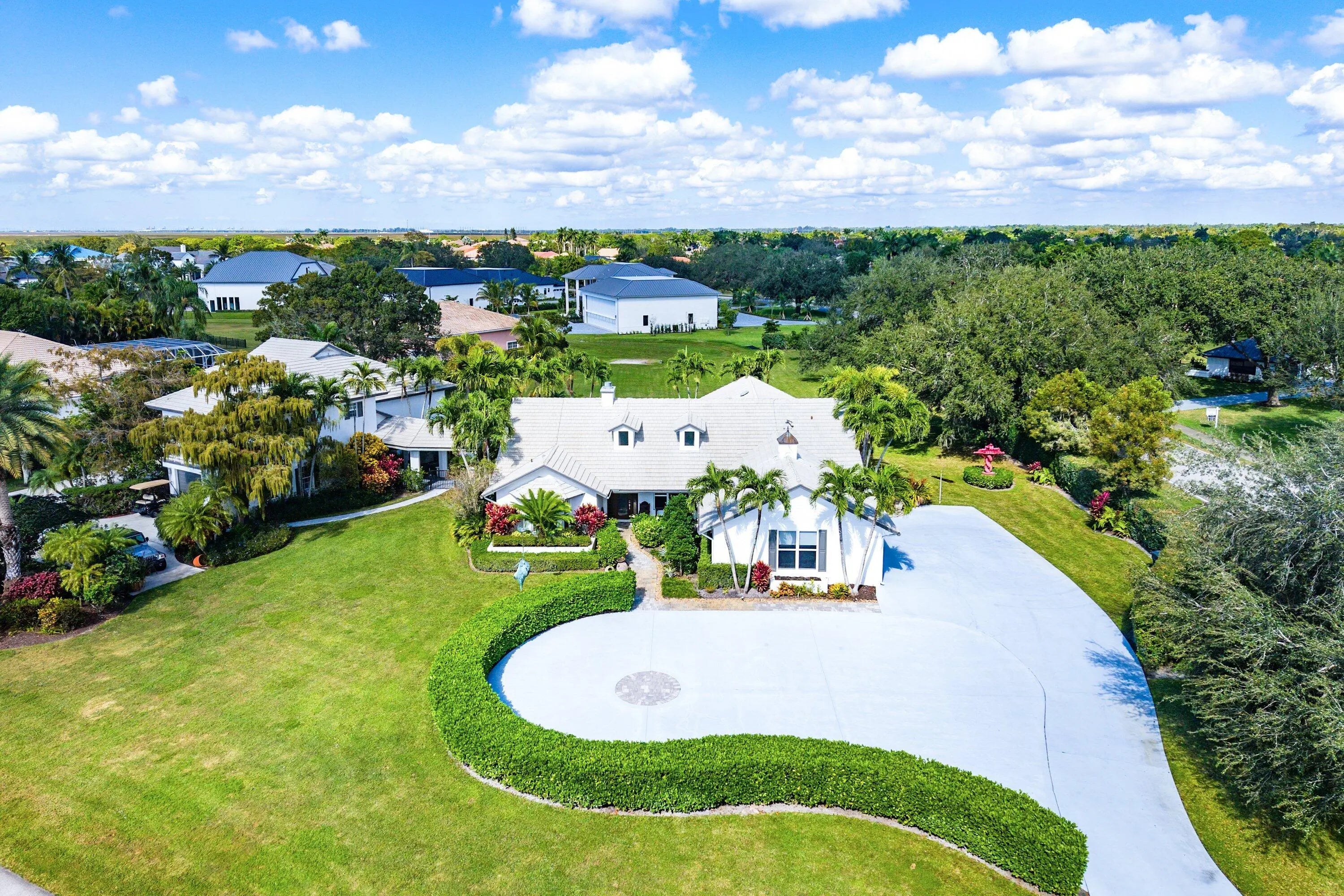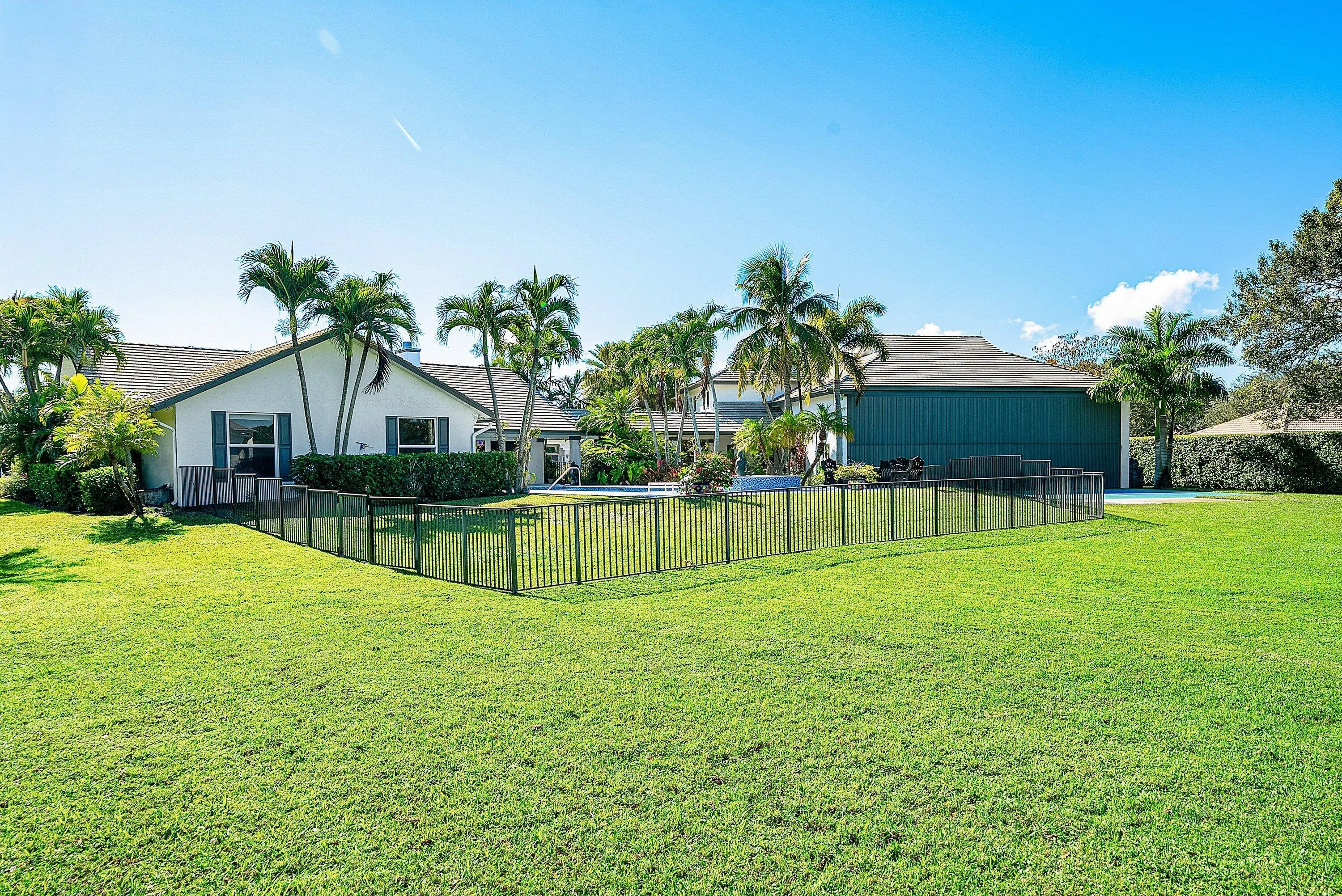 Experience unparalleled luxury and aviation lifestyle living in the prestigious Wellington Aero Club. This exceptional estate is situated on an expansive 1.43-acre oversized corner lot, offering privacy, elegance, and rare amenities for the discerning buyer. The Aero Club further elevates the experience with its 4,000-ft paved and lit runway, providing unmatched convenience for aviation enthusiasts.The residence features a sophisticated 4-bedroom, 3-bath split floorplan with an open and airy layout designed for both comfort and elevated entertaining. Step outside to an impressive covered patio overlooking the heated, saltwater pool and spa, fully automated and controllable from your phone, perfect for effortless, resort-style living.A true showpiece of the property is