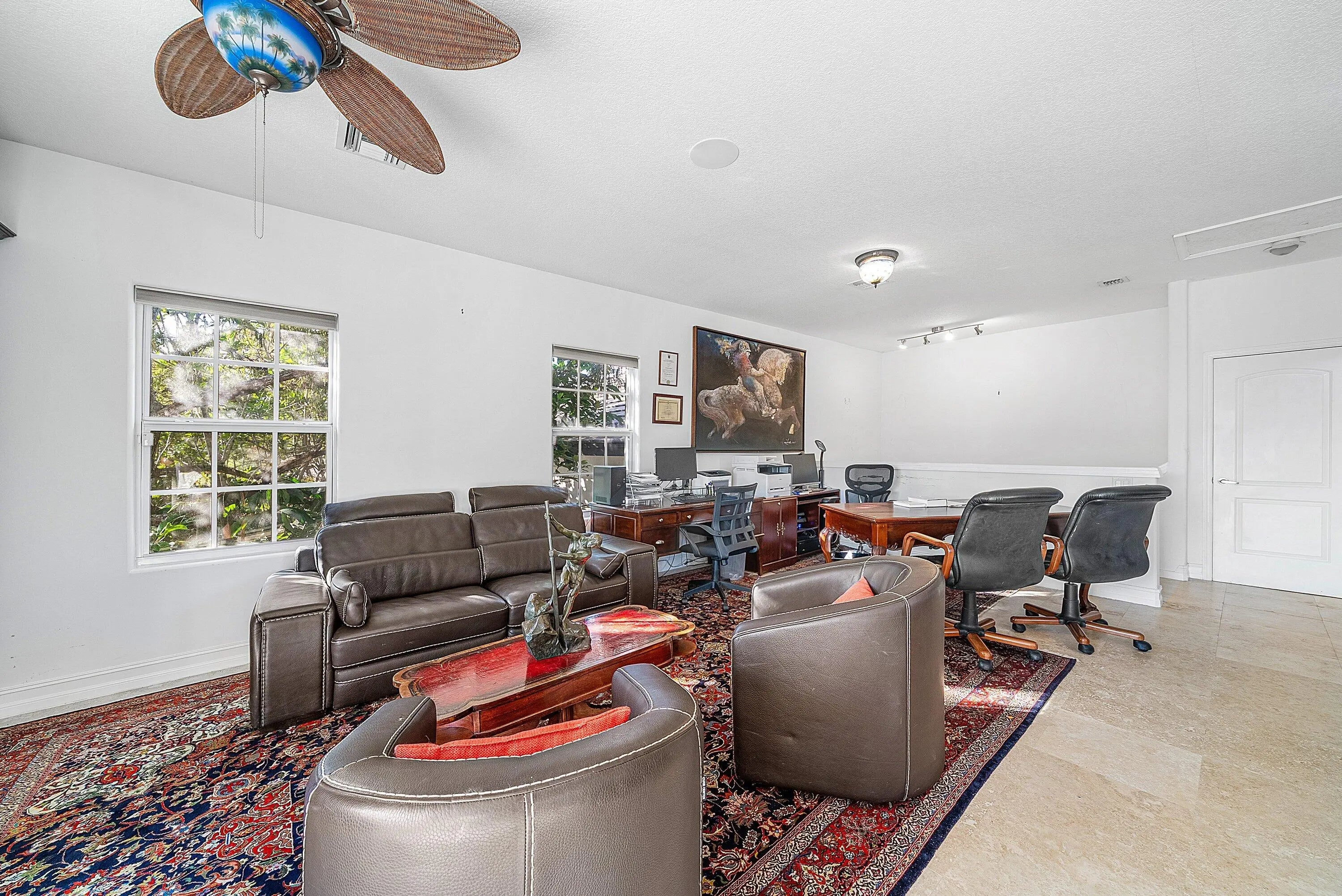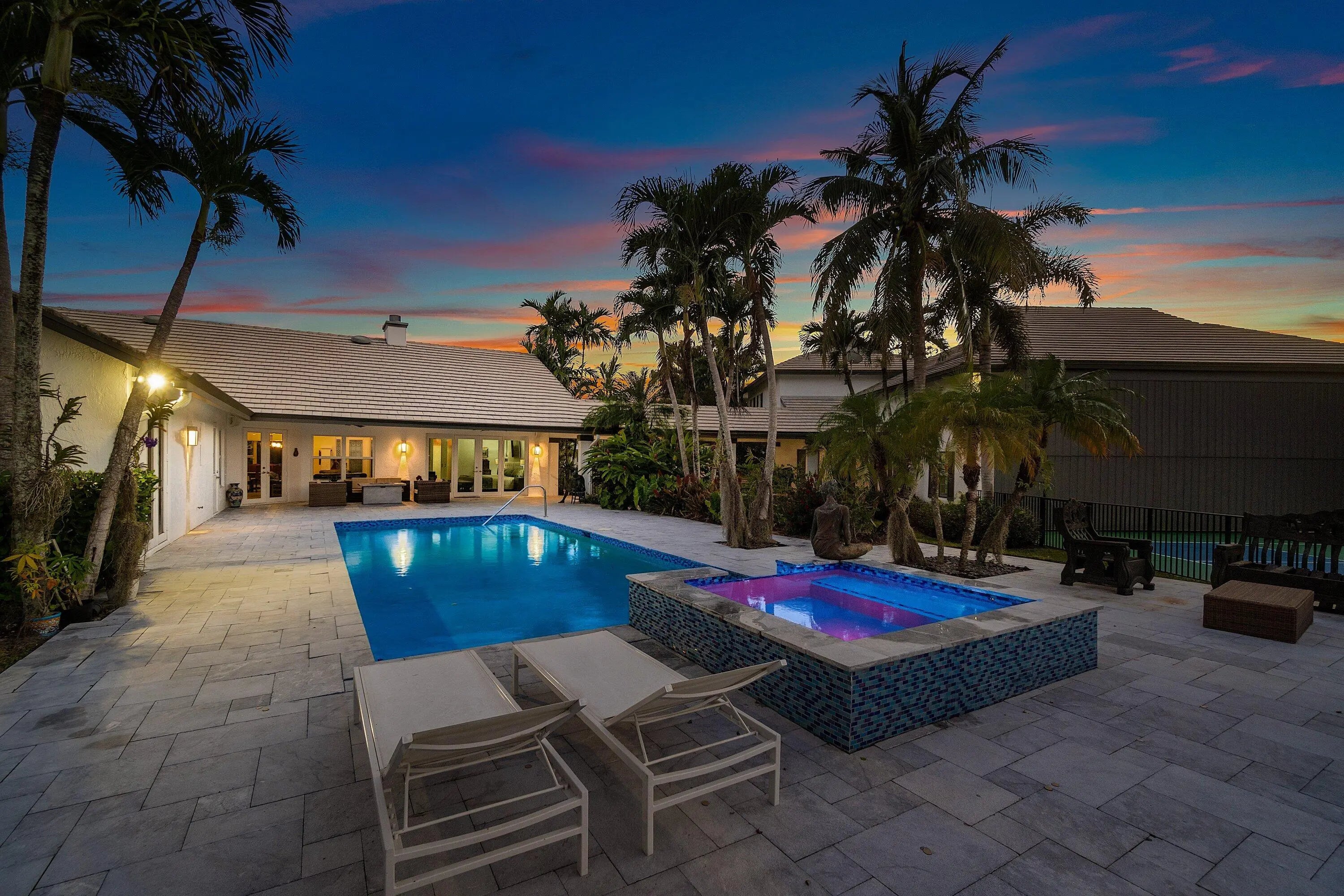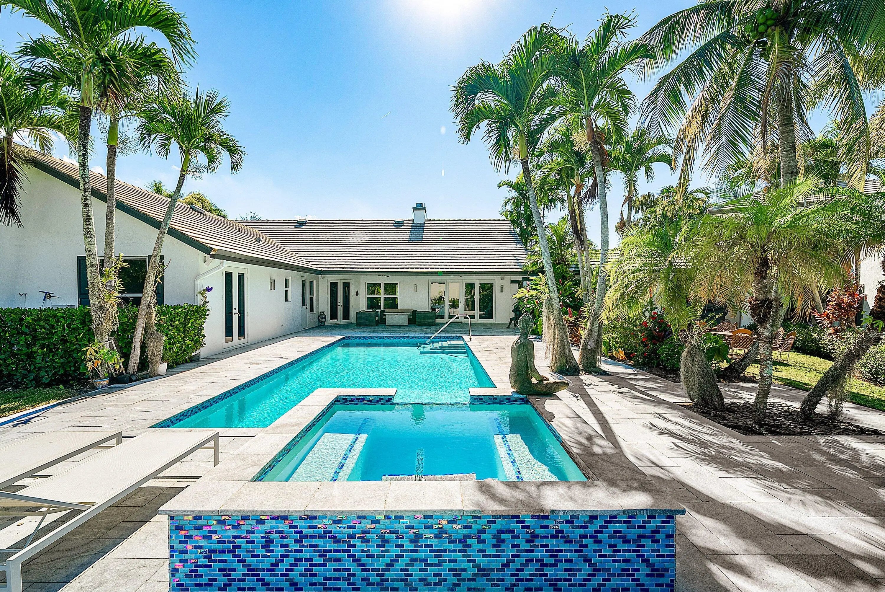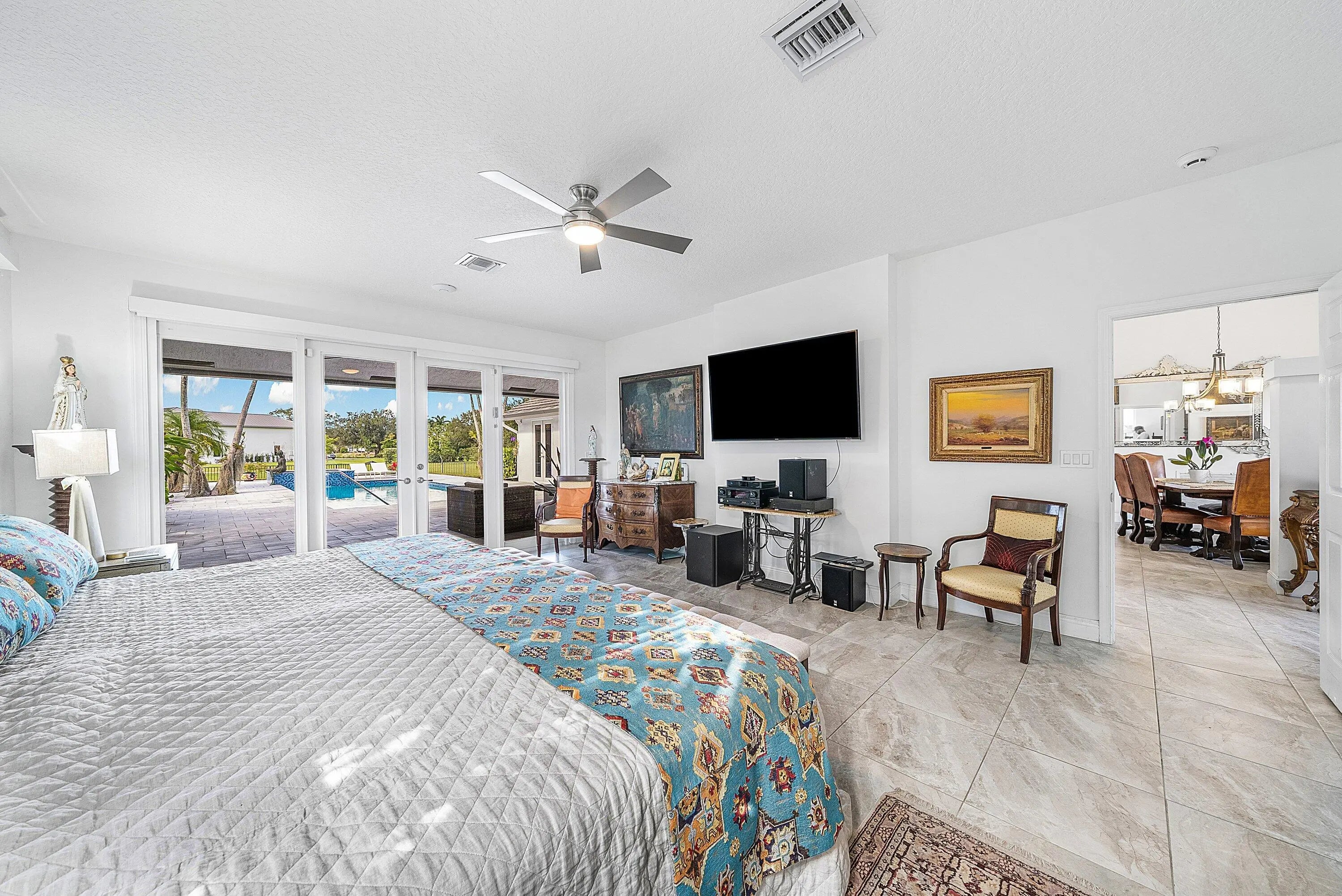 Experience unparalleled luxury and aviation lifestyle living in the prestigious Wellington Aero Club. This exceptional estate is situated on an expansive 1.43-acre oversized corner lot, offering privacy, elegance, and rare amenities for the discerning buyer. The Aero Club further elevates the experience with its 4,000-ft paved and lit runway, providing unmatched convenience for aviation enthusiasts.The residence features a sophisticated 4-bedroom, 3-bath split floorplan with an open and airy layout designed for both comfort and elevated entertaining. Step outside to an impressive covered patio overlooking the heated, saltwater pool and spa, fully automated and controllable from your phone, perfect for effortless, resort-style living.A true showpiece of the property is