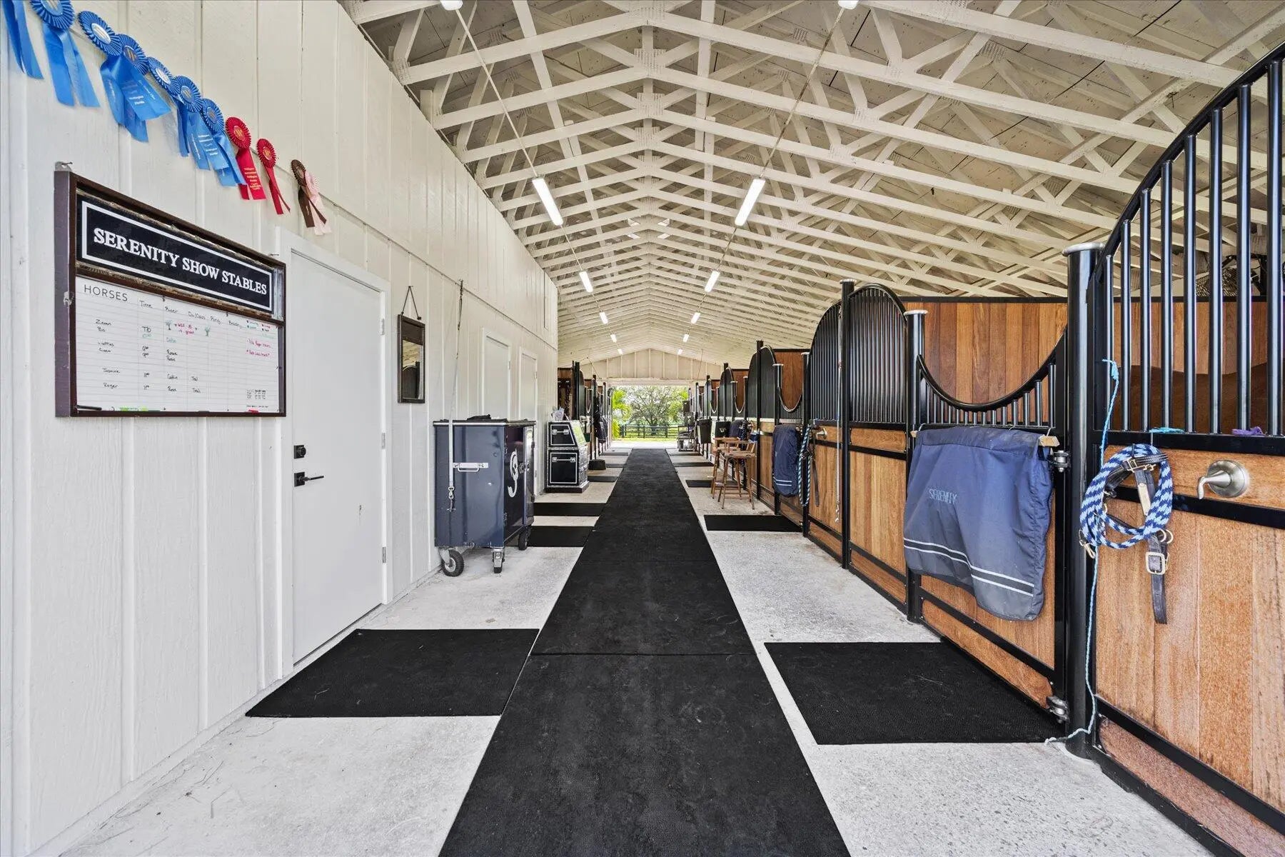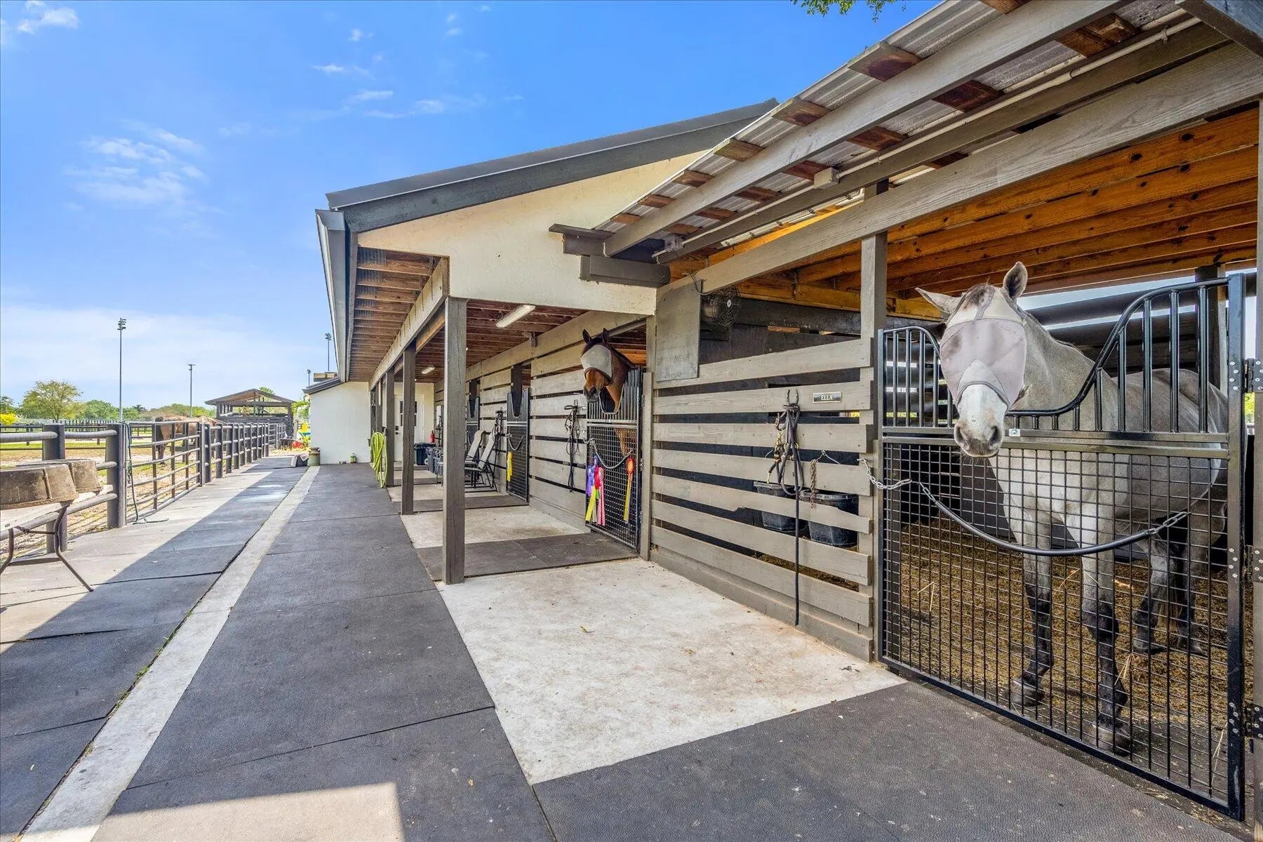 5 STALLS AVAILABLE* Shared BarnFeatures include tack room, feed room, laundry room, wash/grooming area and new bathroom. This farm is equipped with 12 paddocks, brand new 243 x184 arena with irrigation guns, Discount Dirt Works all weather ring, PVC fencing with built in electrical, and water purification system for the entire property.