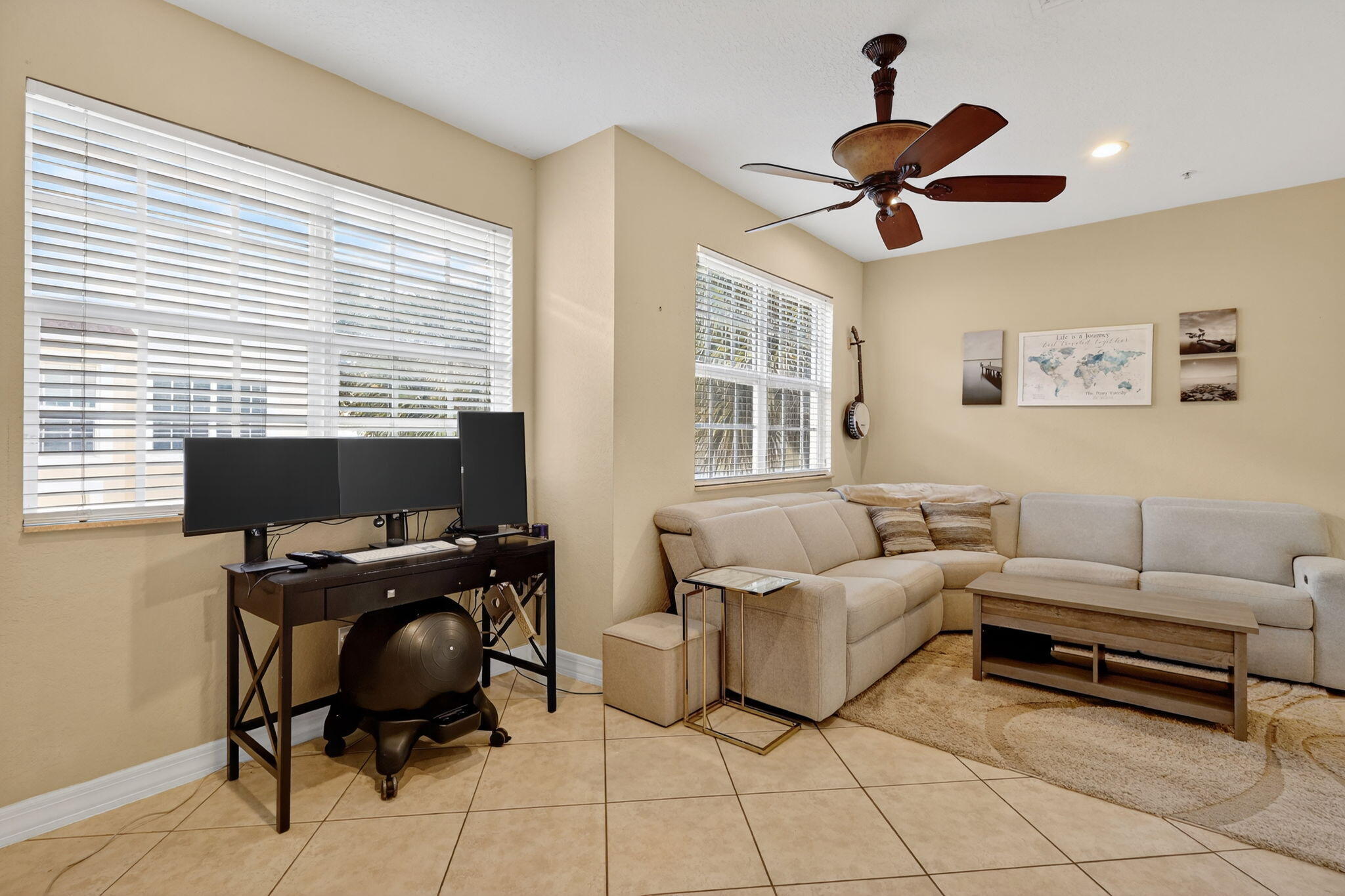 Do you love watersports and being close to the water? Look no further, discover this spacious end-unit home, perfectly positioned for privacy and extra room. Also, a boat slip might be available for rent. On the ground floor, find a versatile bonus space ideal for your home office or workout area. The attached two-car garage includes an EV charger circuit for convenience. Step into the updated kitchen featuring granite countertops, stainless steel appliances, a new refrigerator, and microwave. Other features include a new washer and dryer, and a reverse osmosis water system. The impact resistant glass will make storm preparation a breeze. Relax and enjoy the serene intracoastal water views from the community pool. Dog friendly neighborhood. Lawn care is included with the HOA fees