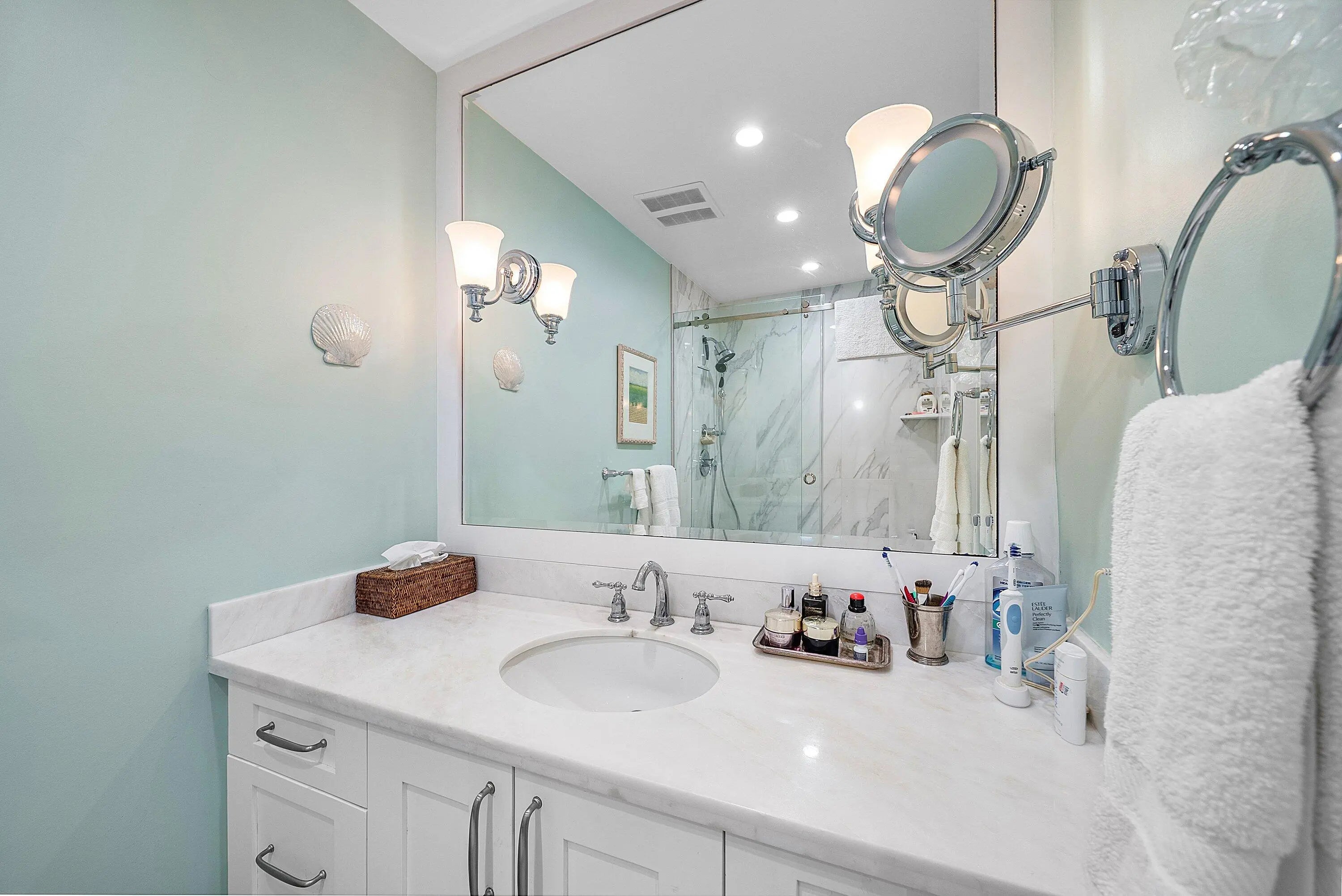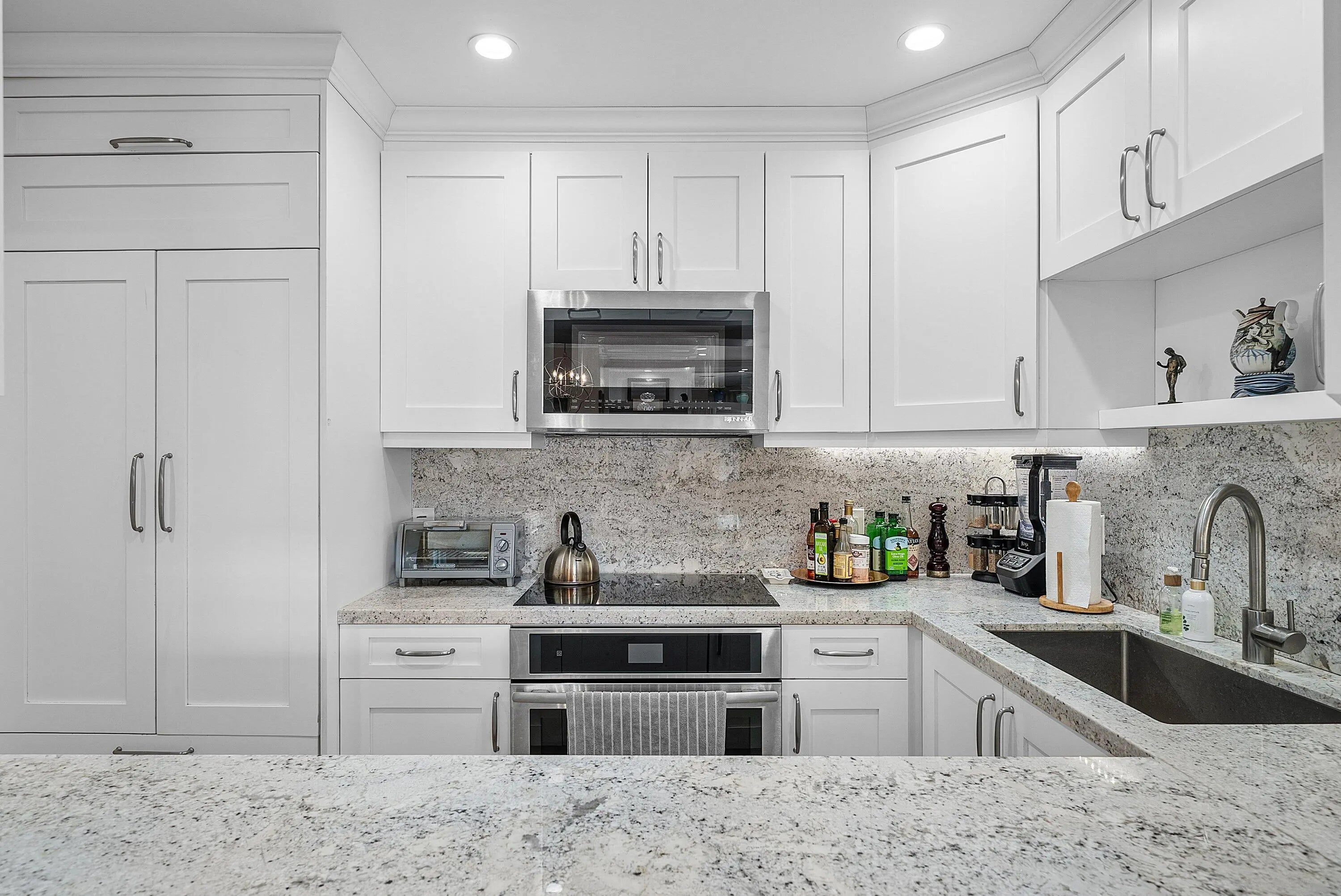 Welcome to your dream coastal retreat! This beautifully renovated 2 bedroom, 2 bathroom apartment offers stunning waterway views and is ideally situated just moments from the beach and vibrant Atlantic Avenue. Nestled in a boutique complex with only 21 exclusive units, this residence promises privacy and tranquility in a prime location. Step inside to discover a sophisticated interior adorned with high-end finishes. The gourmet kitchen is equipped with top-of-the-line Jenn-Air appliances, perfect for culinary enthusiasts. Each bathroom is elegantly appointed with marble accents, creating a spa-like atmosphere for relaxation. The tasteful decor throughout the apartment enhances its modern charm and inviting ambiance.