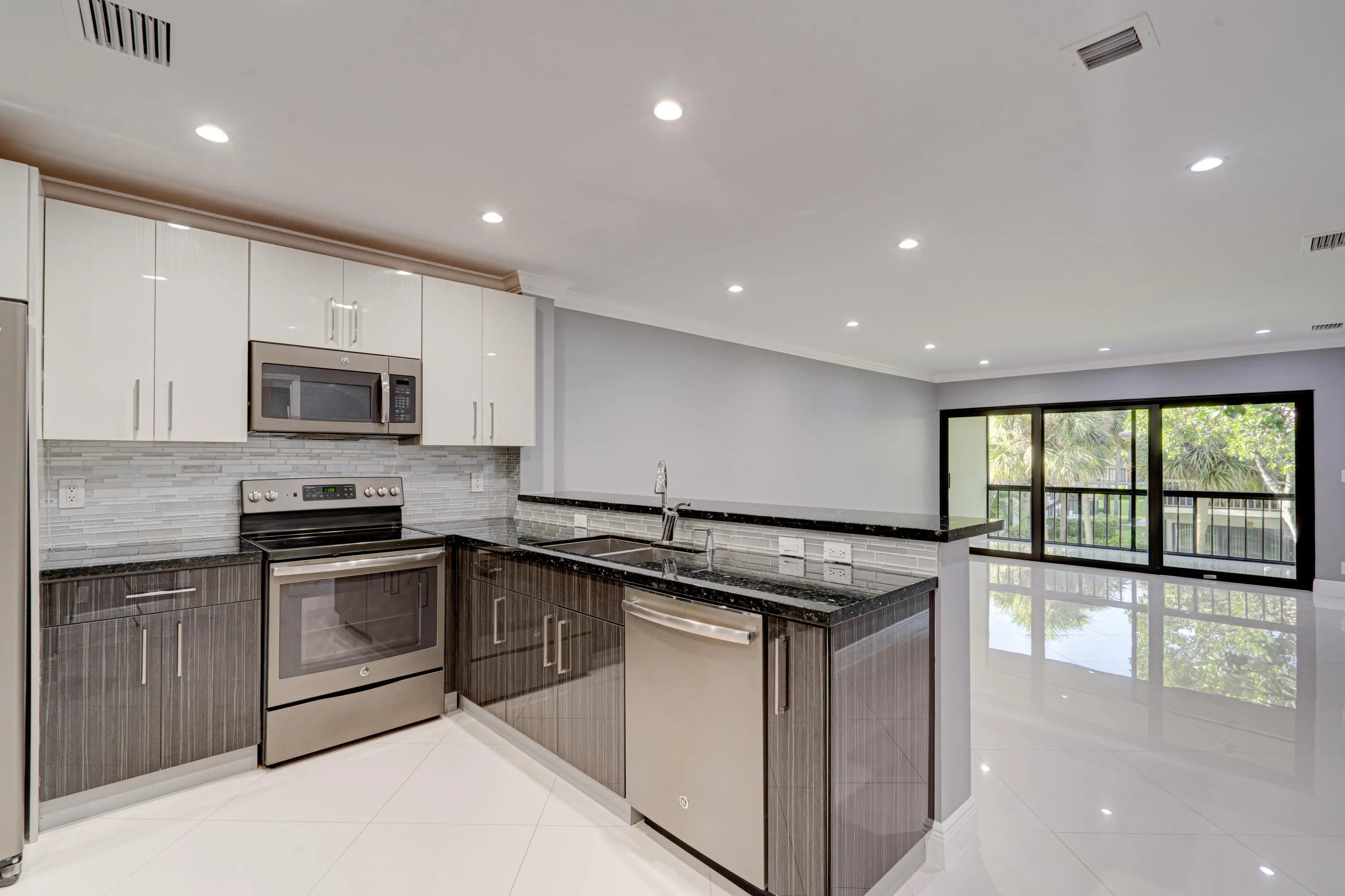 Beautiful unit in perfect condition with a unique location near the beach, downtown Boca and downtown Delray. Unit have been totally updated, open kitchen, stainless still appliances, all tile floors, flat high ceilings, freshly painted, crown molding, newer bathrooms, granite countertops, wide opening sliding door, impact windows, very modern unit. Truly one of a kind, updated like no other in the community.