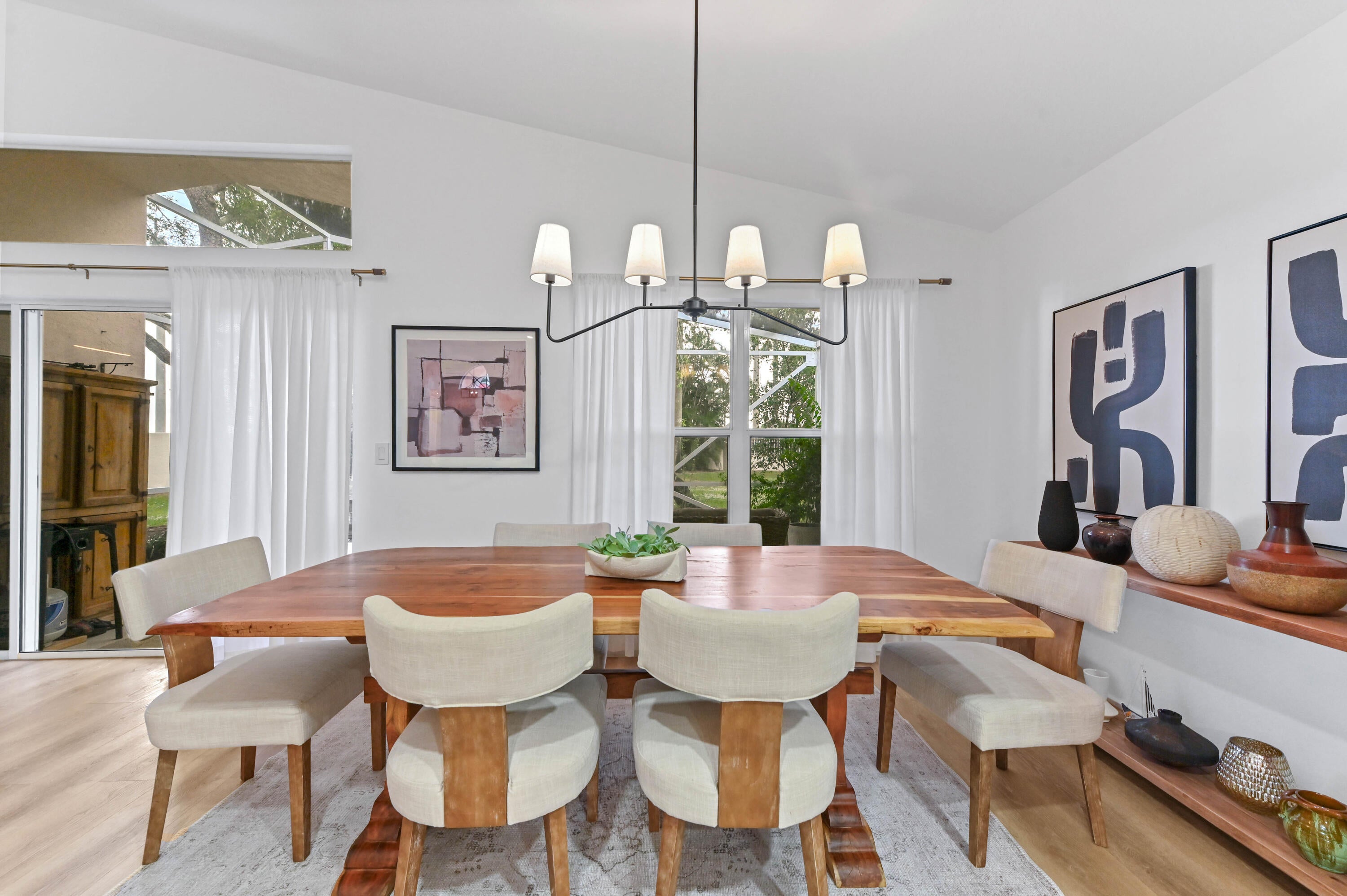 Prepare to be captivated by this stunning single-family home, perfectly situated in the sought-after 55+ gated community of Coral Lakes! This residence offers an unmatched resort lifestyle with luxury amenities including a spectacular clubhouse, multiple pools, a state-of-the-art fitness center, a cafe, theater, tennis courts, card rooms, and vibrant social clubs.Step through the Grand Double Door Entrance into a bright, open split floor plan designed for effortless living. The interior is defined by vaulted ceilings and elegant recessed lighting. The heart of the home is the beautiful eat-in kitchen, which features sophisticated granite countertops with a waterfall island, custom wood cabinets, a large pantry, and a suite of stainless-steel appliances. The impressive Master Bedroom offers a private retreat, complete with a generous sitting area and two expansive walk-in closets. The ensuite master bath is a spa-like sanctuary with dual sink vanities, a relaxing soaking tub, and a glass shower. The home is completed by a private, screened patio overlooking a quiet, lush tropical backyard, perfect for relaxation and entertaining. Practicality is assured with a two-car garage and a paver driveway. Located just minutes from fine dining, premiere shopping, the Turnpike, and I-95, this home offers the ultimate blend of luxury, convenience, and an active adult lifestyle.