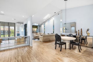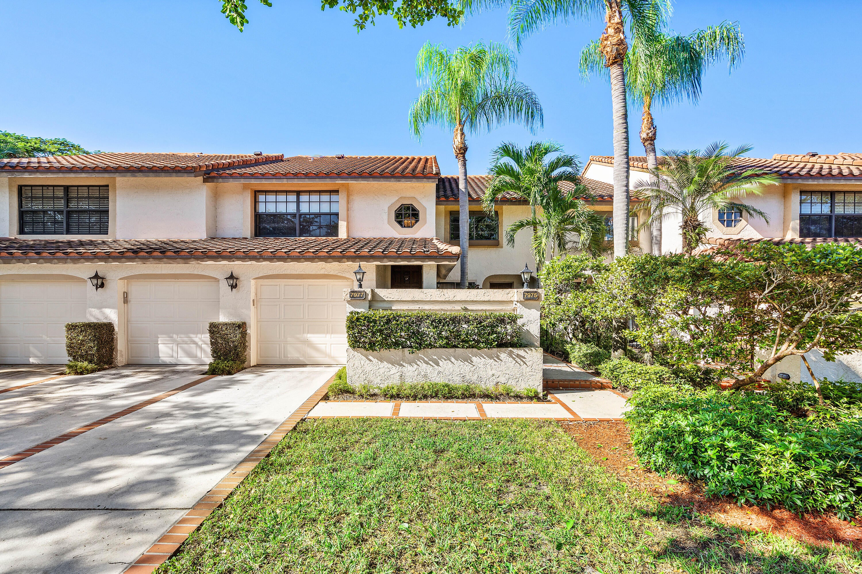 Welcome to 7977 La Mirada Drive in Boca Pointe. This spacious two-story home features an open living and dining area with high ceilings and abundant natural light. The kitchen includes white cabinetry, stainless appliances, and a breakfast nook with garden views. The third bedroom has been converted into an office/den currently used as an extra seating and entertainment space. Enjoy a large enclosed Florida room with serene lake and garden views. Located in a beautiful gated community with optional club memberships.