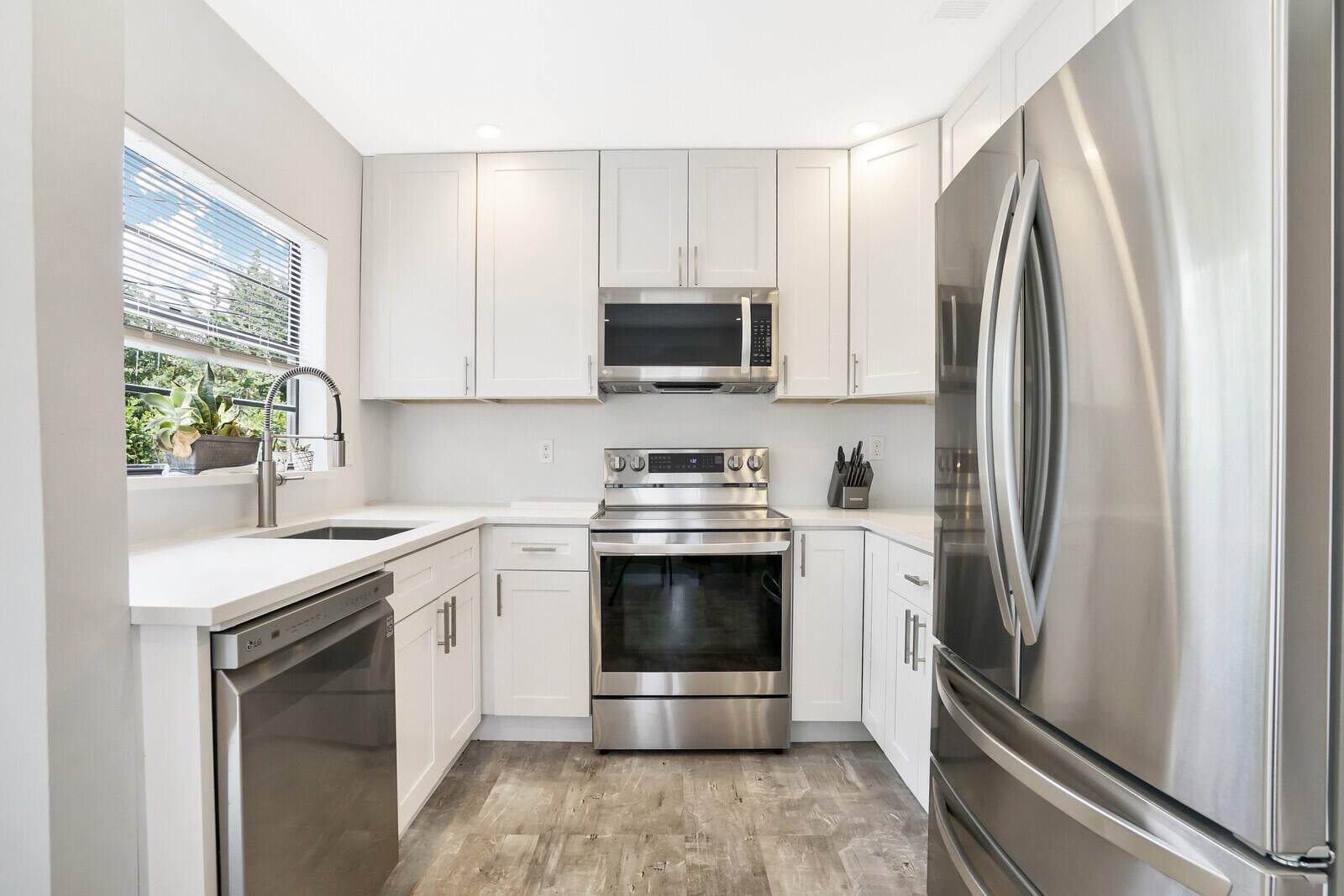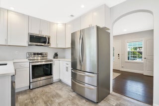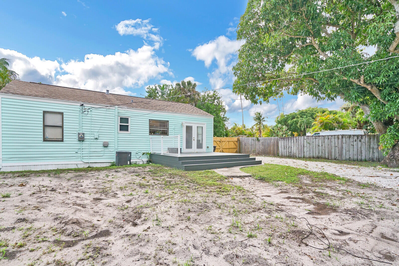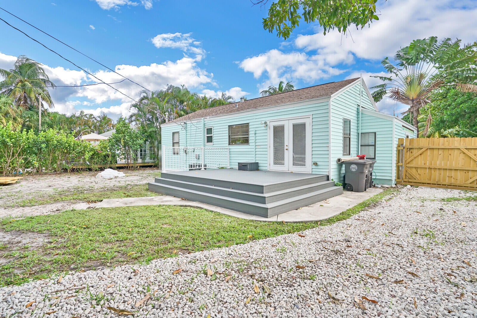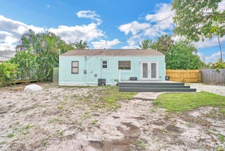 Four-thirteen Thirty-sixth Street, West Palm--your remodeled retreat awaits. Three beds, two and half baths, all new inside: fresh kitchen, luxe baths, restored original wood floors. French doors spill onto a giant deck and fenced yard--room for the boat or RV. storage No HOA, new pavers, open porch, washer-dryer, pet-friendly. Move-in ready.