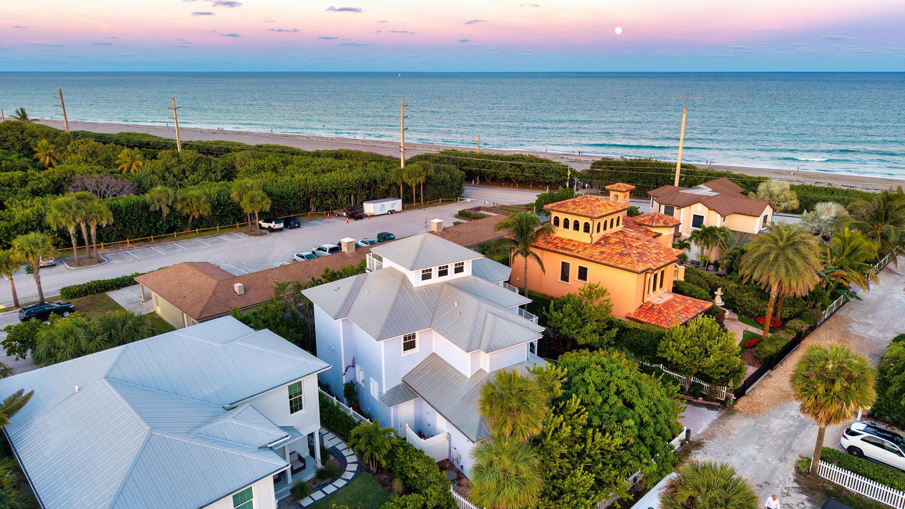 Welcome to the ultimate holiday beach house, where enjoying South Florida's tropical lifestyle is an everyday reality. This three-story Key West-style residence offers incredible vistas of the ocean, while overlooking the beauty of Juno Beach's nature preserve as well as the Loggerhead Marine life Center. With three bedrooms and 3,699+/- total square feet, interiors throughout echo its beach environment, awash in a pale shade of ocean blue, complemented by white millwork, white shiplap-wood ceilings and cerused hardwood flooring. Introduced by a charming porch-entry foyer, the stairway ascends to the second floor, where the alluring great room and eat-in chef's kitchen are wrapped in open balconies that blur the boundary between indoor luxury and outdoor serenity.Cheery, light and bright, the great room is topped by a tray ceiling, while the kitchen is finished with attractive white-wood cabinetry, granite countertops and gleaming stainless-steel appliances. Just adjacent are the formal dining room and a hospitable guest bedroom suite. A dramatic highlight, the spiral staircase from the great room leads to the observation tower, which opens to a deck offering awe-inspiring panoramic ocean views. The primary bedroom suite and a guest bedroom suite are placed on the first floor. Embraced by a wraparound covered porch, the primary bedroom unfolds like a private garden sanctuary. The suite includes a large walk-in closet and a spa-like bathroom with a pedestal sink, a vanity sink, walk-in shower and soaking tub. Completing the first-floor layout are a laundry room, a storage room perfect for beach gear, and a two-car oversized garage with capacity to install lifts to accommodate an additional two cars. The owner's second home with a successful AirBnb history, amenities include impact glass windows, two newer HVAC systems, newer water heater and a new well. Don't miss this opportunity to enjoy mesmerizing ocean views and calming sea breezes while listening to the music of the waves! Nestled between the turquoise waters of the Atlantic Ocean and the tranquil beauty of the Intracoastal Waterway, the picturesque Village of Juno Beach is a premier nature-focused seaside Florida retreat, highlighted by pristine sugar-sand beaches, Juno Beach Park and its historic 990-foot fishing pier, the protected Juno Dunes Natural Area with trails and Intracoastal access, and the Loggerhead Marinelife Center. While Juno Beach is known for its relaxed upscale vibe blissfully off the beaten track, nearby Palm Beach Gardens, Palm Beach and West Palm Beach's upscale shopping, dining and cultural venues are all within an easy drive. DISCLAIMER: Information published or otherwise provided by the listing company and its representatives including but not limited to prices, measurements, square footages, lot sizes, calculations, statistics, and videos are deemed reliable but are not guaranteed and are subject to errors, omissions or changes without notice. All such information should be independently verified by any prospective purchaser or seller. Parties should perform their own due diligence to verify such information prior to a sale or listing. Listing company expressly disclaims any warranty or representation regarding such information. Prices published are either list price, sold price, and/or last asking price. The listing company participates in the Multiple Listing Service and IDX. The properties published as listed and sold are not necessarily exclusive to listing company and may be listed or have sold with other members of the Multiple Listing Service. Transactions where listing company represented both buyers and sellers are calculated as two sales. "No payments made until title passes" Some affiliations may not be applicable to certain geographic areas. If your property is currently listed with another broker, please disregard any solicitation for services. Information published or otherwise provided by seller, listing company or its representatives is deemed reliable but are not guaranteed and subject to errors, omissions, or changes without notice. Copyright 2025 by the listing company. All Rights Reserved.