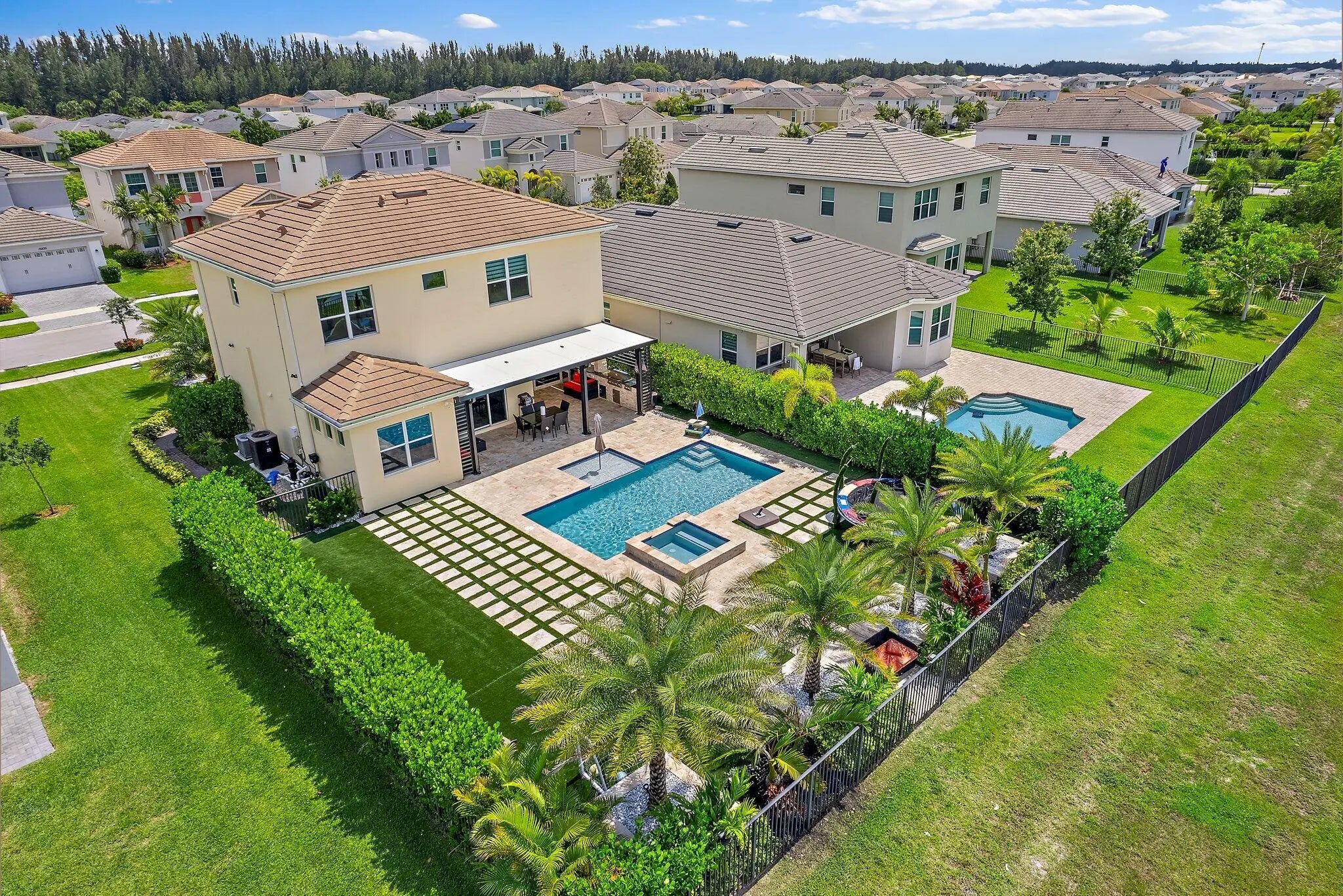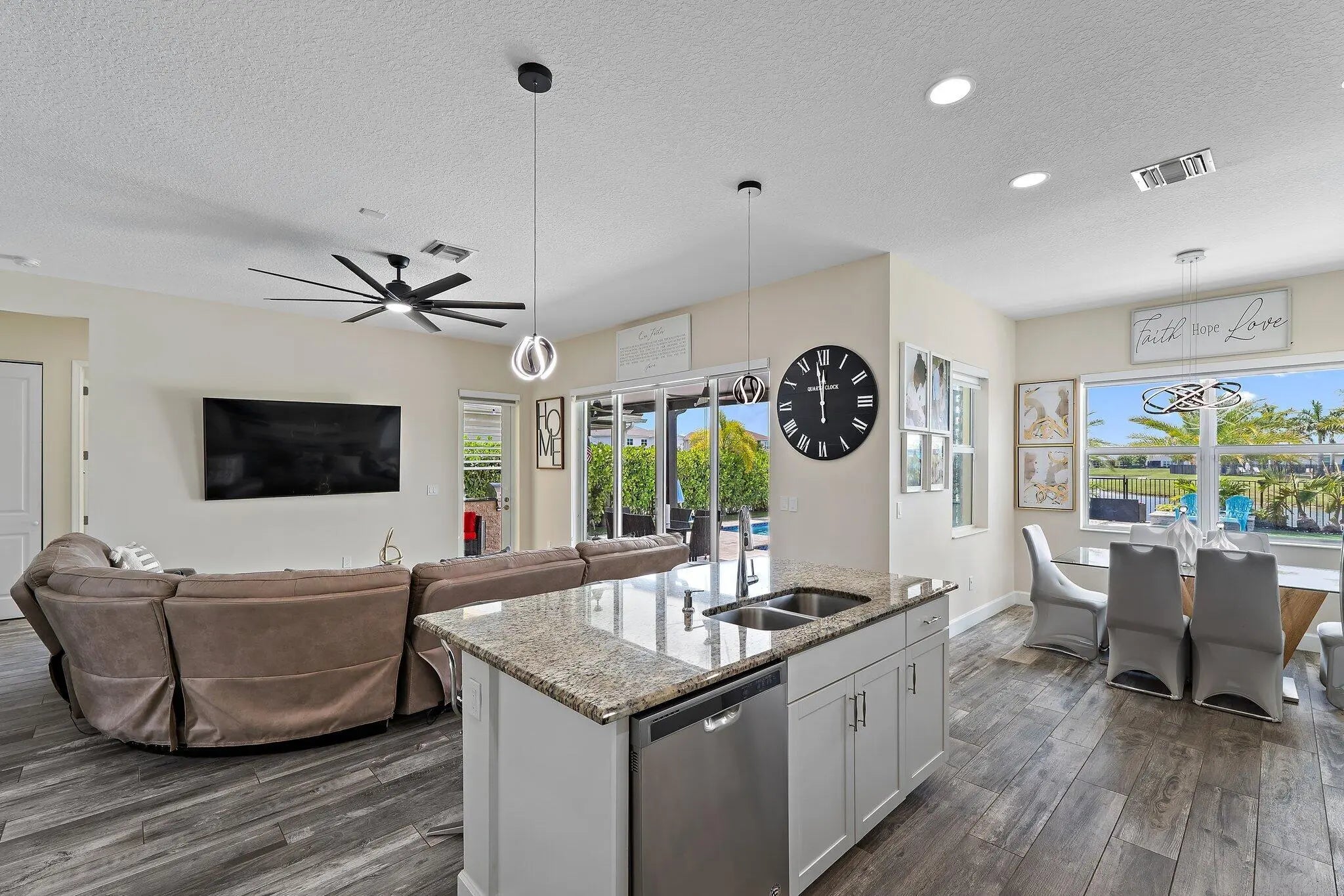 Welcome to this stunning Sycamore Grand model located in the desirable Meadows of Westlake. This two-story home offers 4 bedrooms, 3 full bathrooms, and over 2,165 square feet of beautifully designed living space. With a seamless blend of style and functionality, this home is perfect for modern living. Inside, you'll find wood-look tile flooring throughout the main living areas, creating a warm and inviting ambiance. The open-concept layout features a bright and airy den that's perfect for a home office or additional lounge space.A first-floor bedroom and full bathroom with a walk-in closet provide an ideal setup for guests or multi-generational living.