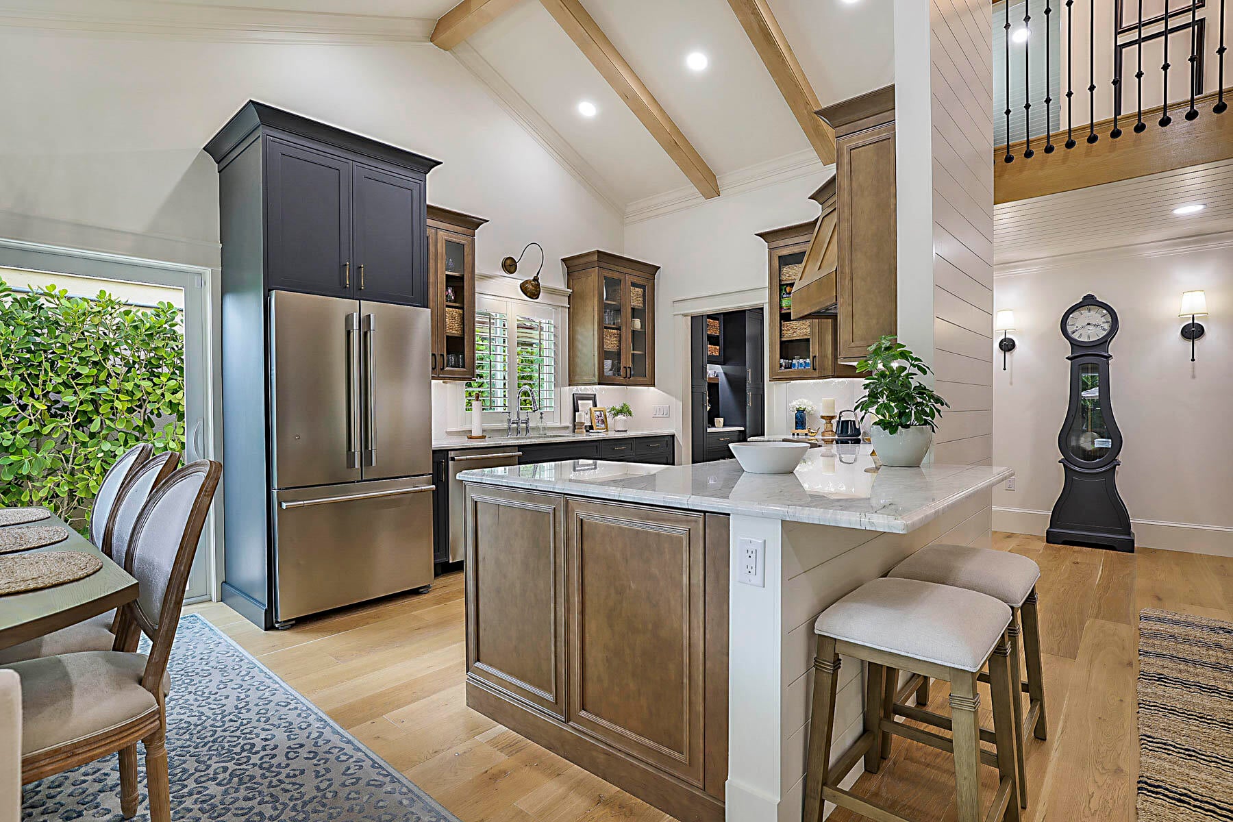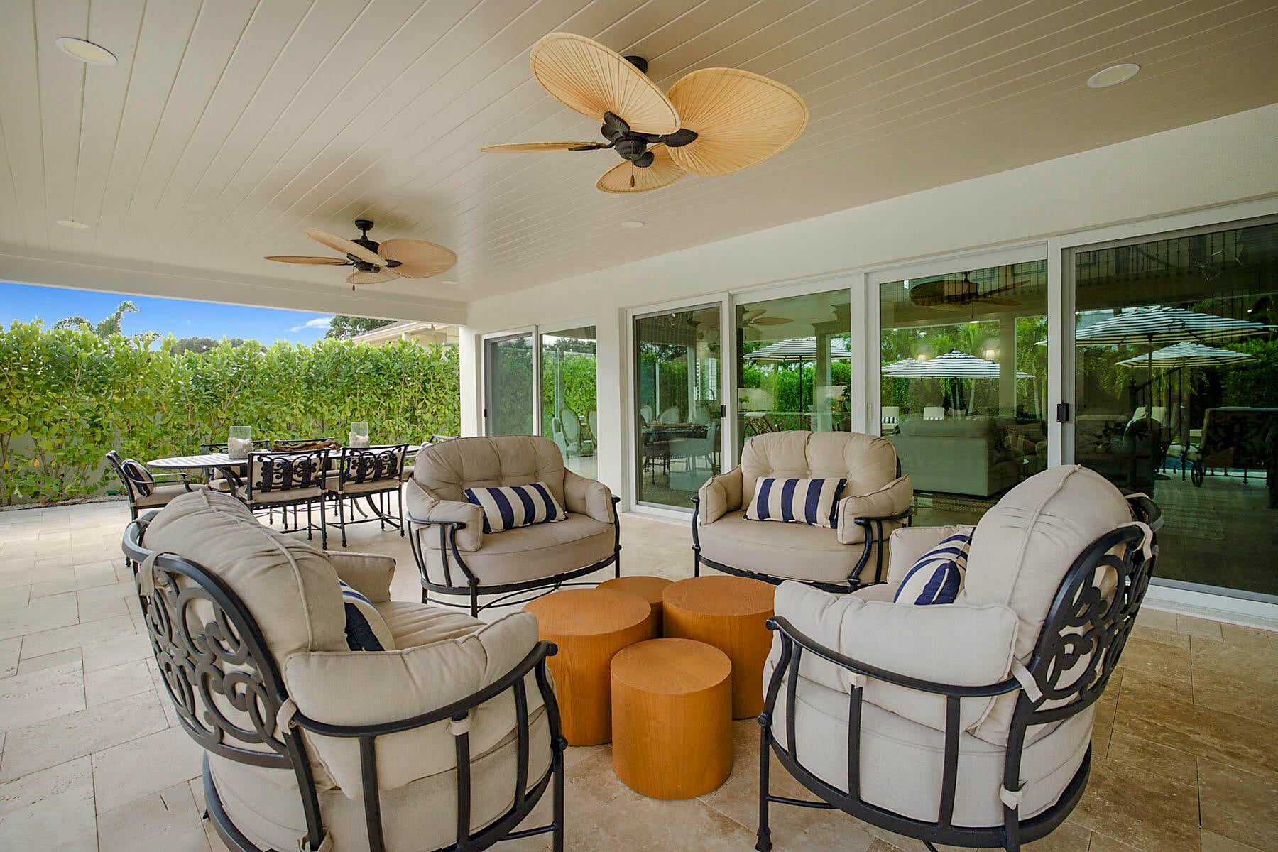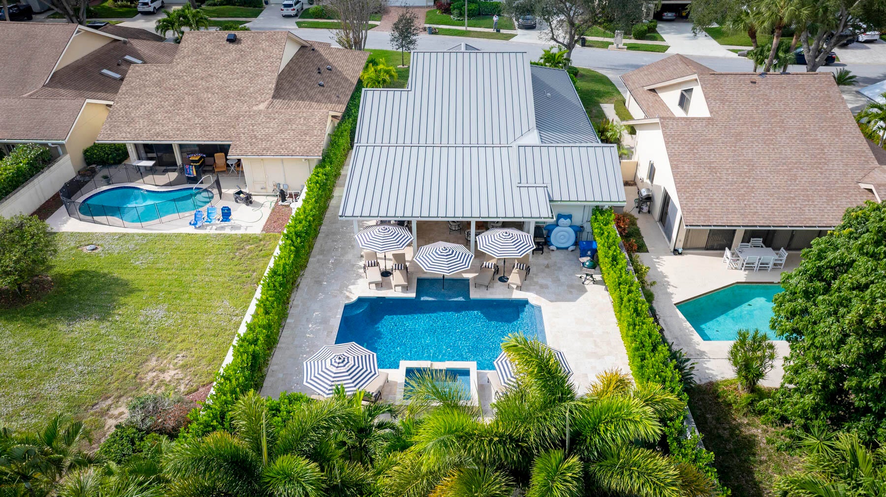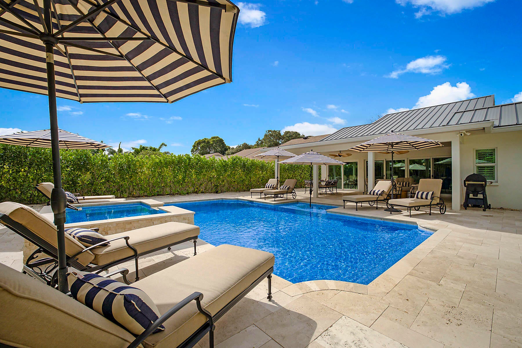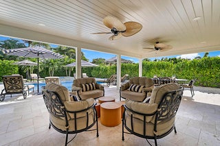 The ultimate in seaside living! This reimagined home underwent a complete transformation with every detail designer inspired with an elegant coastal decor and completed by true craftsman. Features include the redesigned kitchen with custom cabinetry, quartz counter tops, and luxurious appliances including a gas stove, coffee bar, cathedral ceilings with decorative beams, custom entertainment center in the living room, a custom spiral staircase was added to provide access to the new loft area and den/possible fourth bedroom, standing seam metal roof (2022), all new hurricane rated impact windows (2023), custom pool and spa with a gas heater (2023), whole house generator with a 500 gallon underground propane tank, addition of an en-suite third bathroom. Custom built-ins in the primaryprimary bedroom with a redesigned primary bathroom. The spacious yard can only be described as a serene tropical paradise with the enlarged patio plus a custom heated pool and spa with limestone decking. As all of the furniture was selected to coordinate and enhance the beauty of this home it is negotiable. There are too many upgrades to include in this brief description, therefore it must be seen to be appreciated.