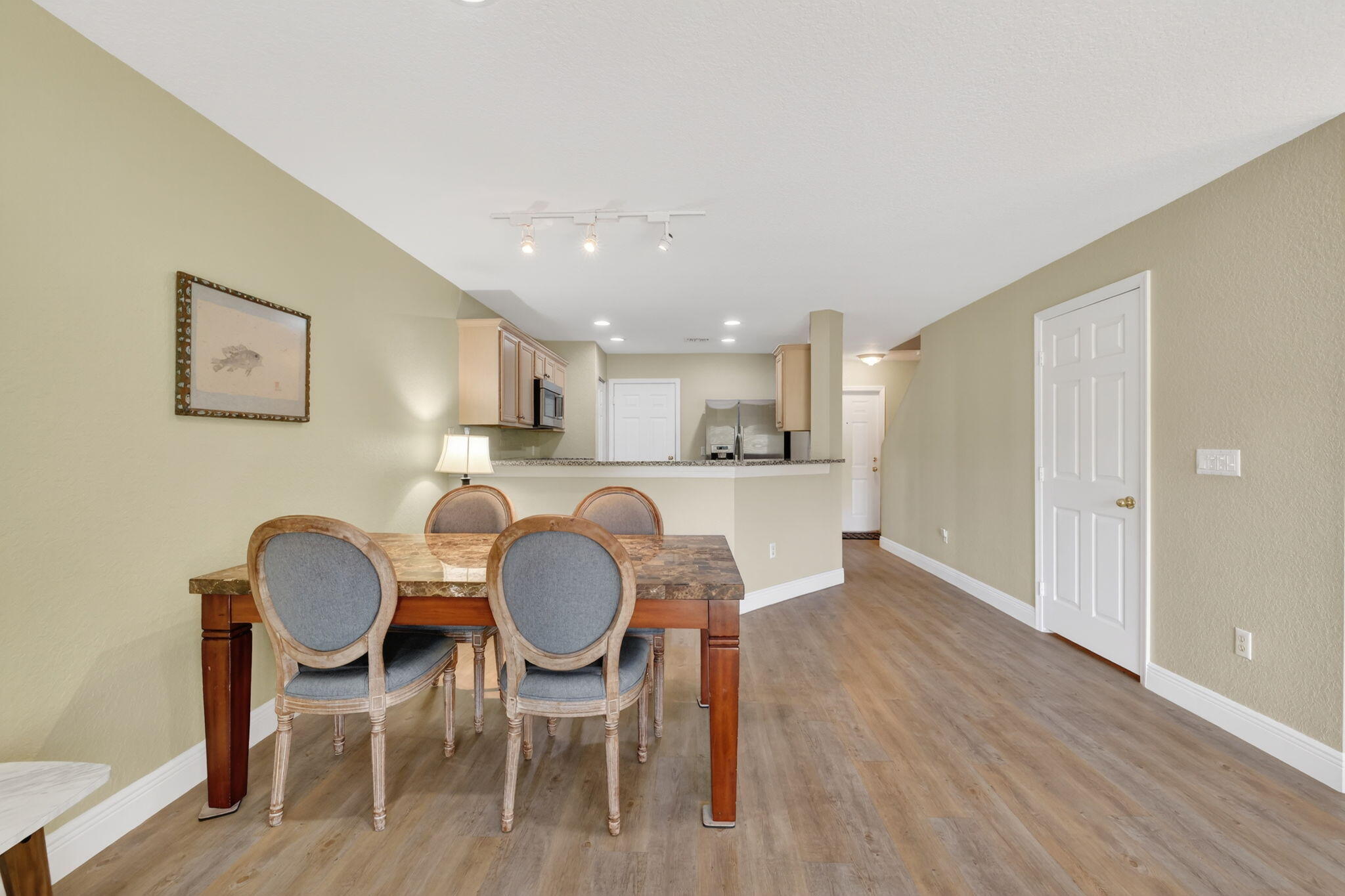 Welcome to this beautifully maintained 2/2.5 townhouse in the quiet, gated, and lushly landscaped community of Lexington Lakes. This 1,224 sq ft residence offers laminate flooring throughout and a well-appointed kitchen with granite countertops and stainless steel appliances. Both bedrooms are located upstairs and feature private en suite baths, with a half bath located on the main floor. Laundry closet conveniently located in hall between the bedrooms. One car garage plus driveway accommodates two cars. Accordion shutters provide full storm protection. Enjoy access to a beautiful clubhouse, fitness center, pool, and playground. All-ages community allowing two pets with no size limit. Prime location in the heart of Stuart close to shopping, dining, schools, and beaches.