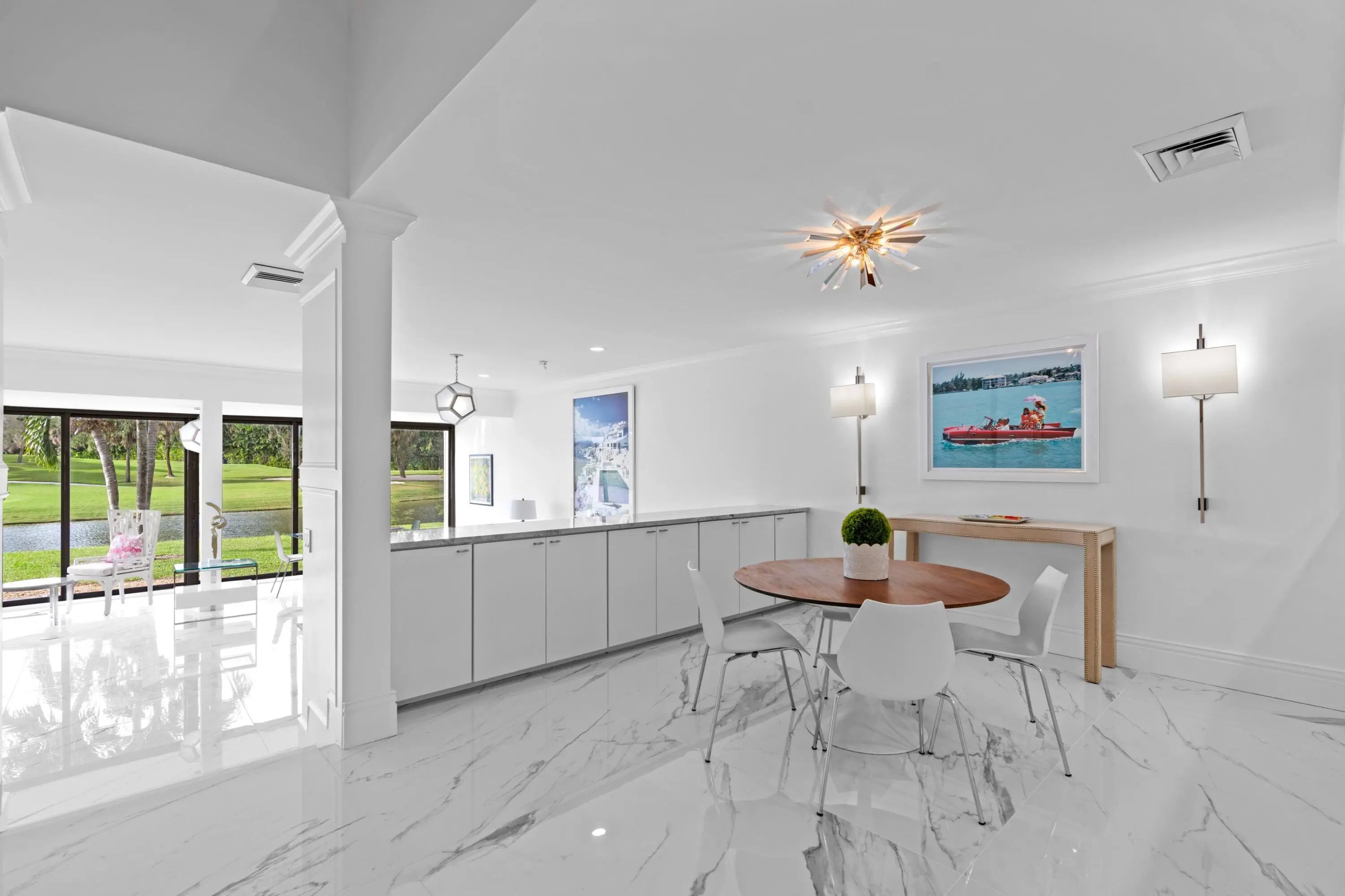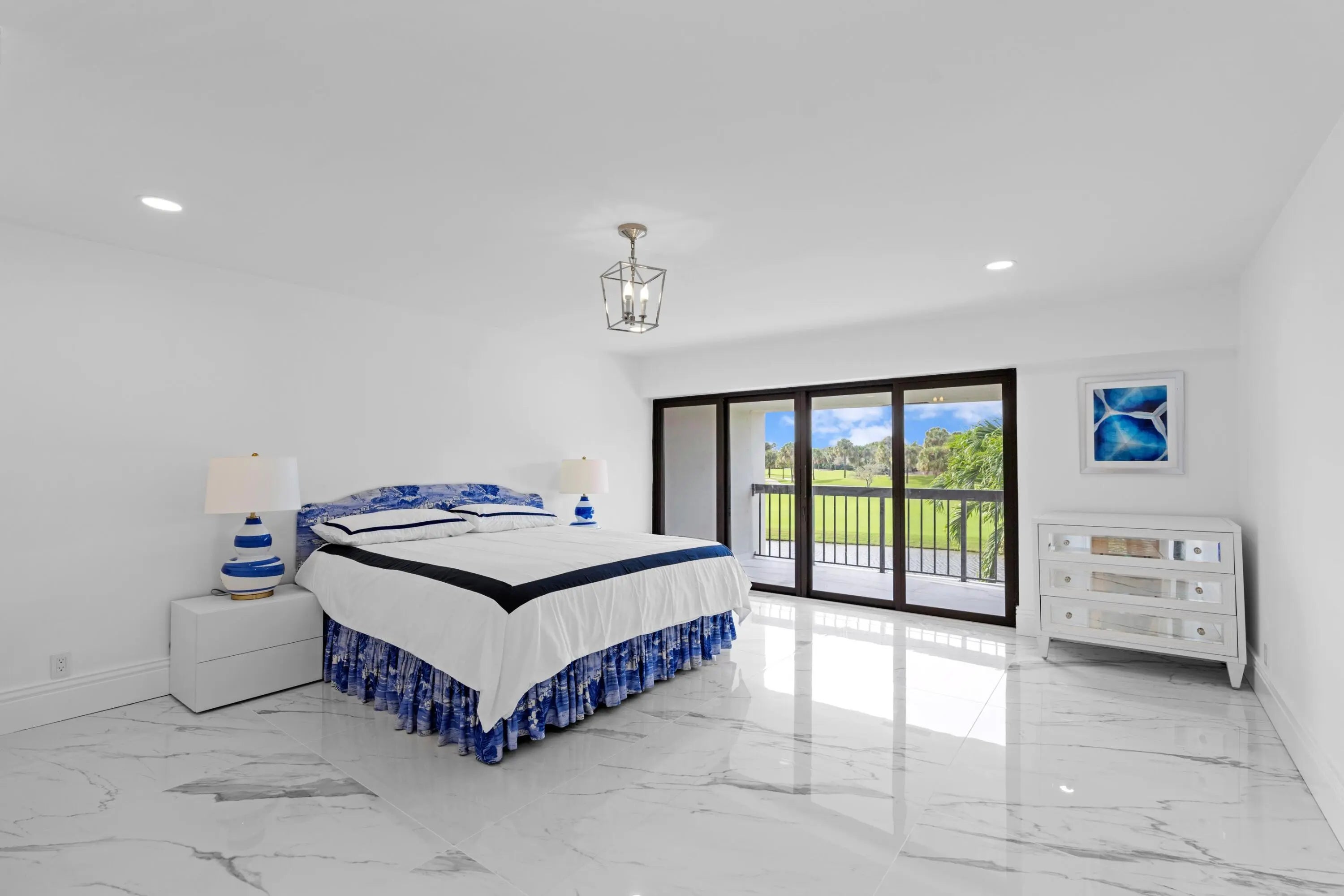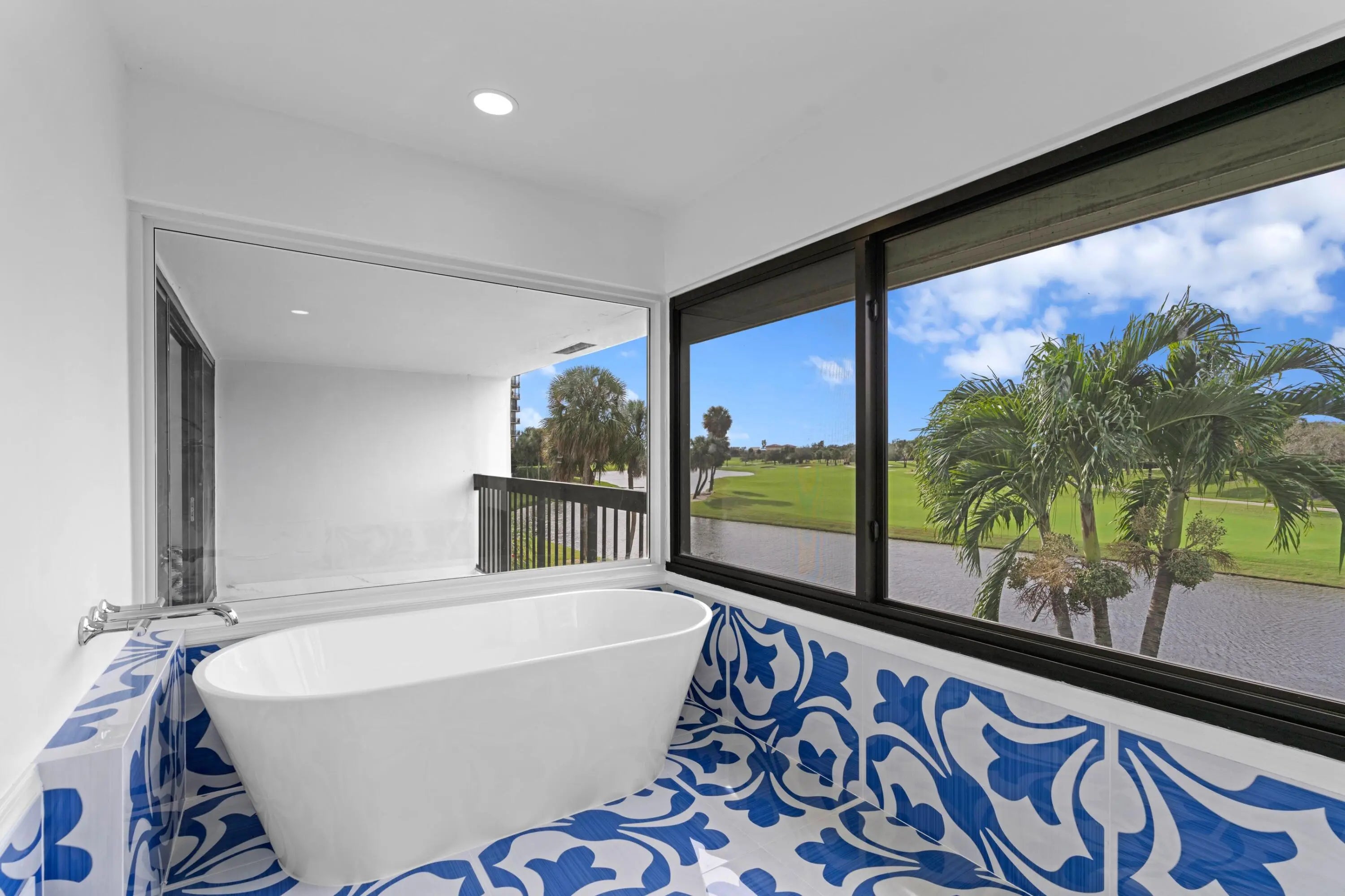 Welcome to this exquisitely re-designed and renovated from top-to-bottom, golf villa townhome, tastefully appointed and ideally located in the heart of West Palm Beach. Step inside and be immediately captivated by direct, breathtaking views of both the golf course and tranquil lake, as natural sunlight floods the home, creating a bright and inviting atmosphere throughout. You can't miss the 3,000 square feet of Italian porcelain tile throughout the interior bordered by brand new baseboards. Popcorn ceiling removed. Fresh interior paint. All new custom high hat lighting throughout. Outside you'll also find 600 more square feet of the Italian porcelain tile and a brand new electrical panel.