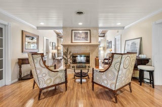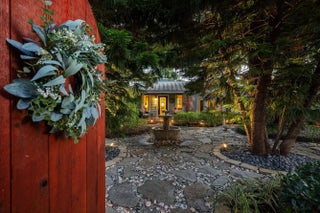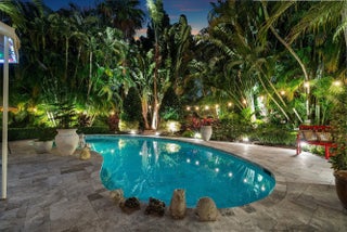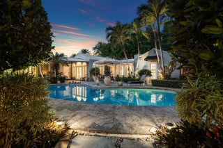 Tucked behind an arched gate on one of Palm Trail's most coveted streets - just two blocks from vibrant Atlantic Avenue and only steps from the Intracoastal - this charming single-story residence with attached guest house sits on a beautifully landscaped lot just shy of 14,000 square feet (approximately 100' x 140'). This is an exceptional offering in the heart of Delray Beach.Surrounded by lush, storybook gardens, the property offers a true sense of retreat with winding flagstone paths and mature tropical plantings. A meandering stone walkway leads to the main entrance and a well-planned split floor plan featuring two spacious primary suites - one with an oversized dressing room/nursery - and a versatile third bedroom ideal as a home office or guest room.
