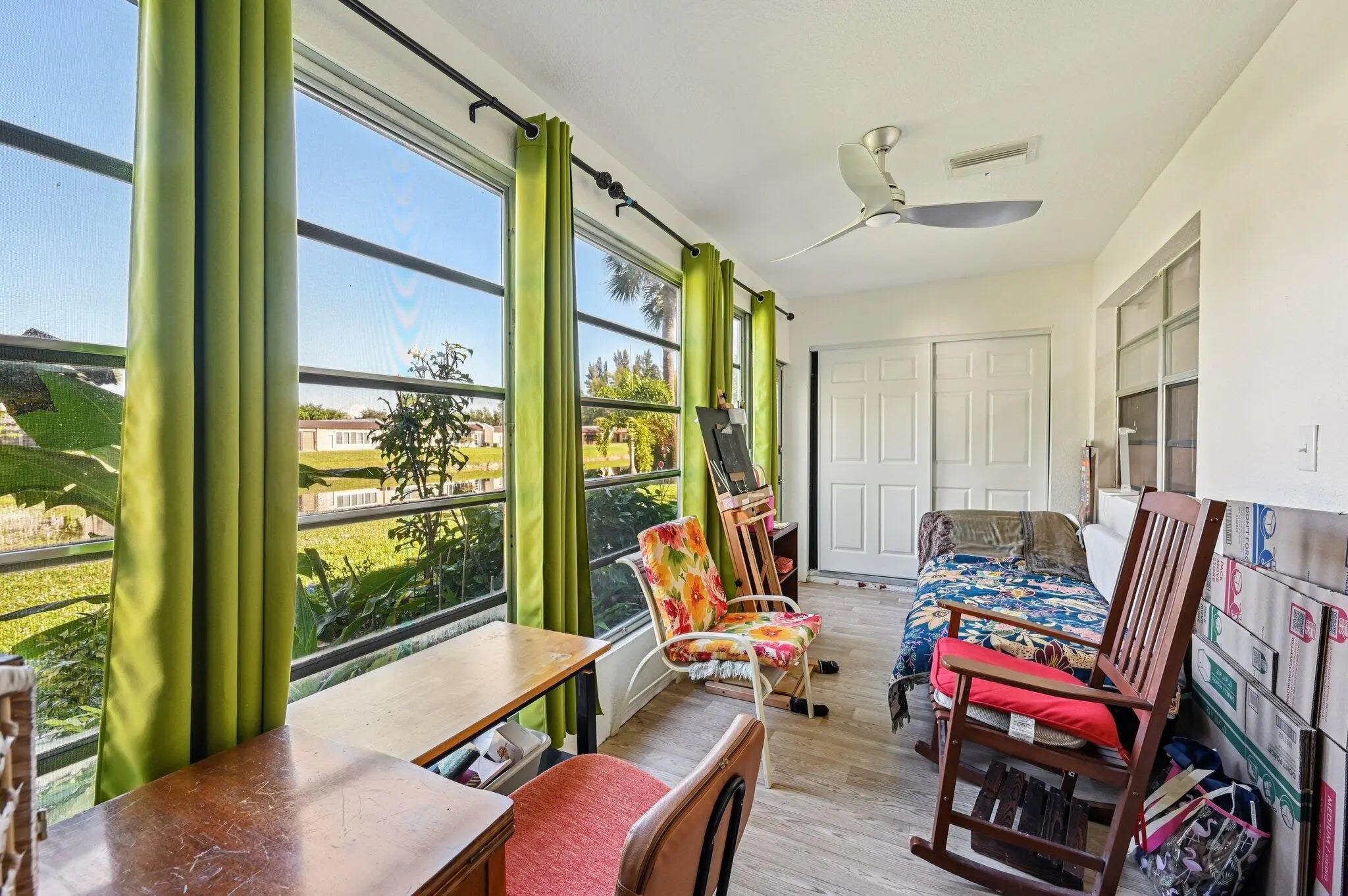 Welcome home to this charming 1-bedroom,1.5-bath VILLA located in the desirable Golden Lakes Village a 55+guard gated community in West Palm Beach. Lots of social activities and courtesy Bus 2 days a week to grocery, malls,shops etc. Offering 721 square feet of thoughtfully UPDATED living space, a large 20 x 8 enclosed patio,full washer and dryer and extra storage space. This residence shows pride of ownership from the moment you arrive. Step through the lushly landscaped entryway into a bright,inviting interior featuring brand-new flooring throughout and a beautiful,unique kitchen back splash that adds character and style. The kitchen is equipped with new appliances,including a range,dishwasher,and microwave making it both functional and modern. Come and take a tour-see you soon!!!