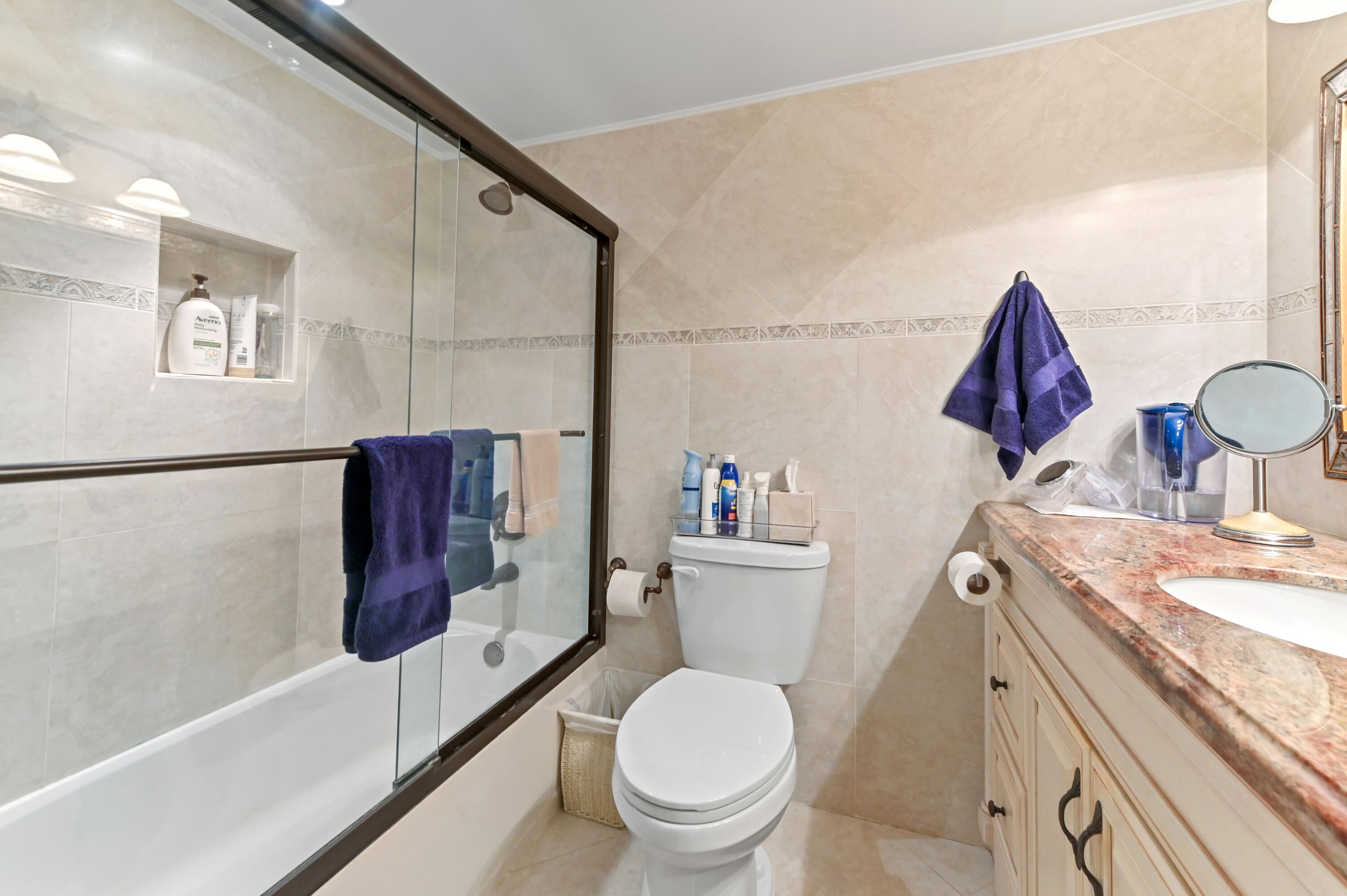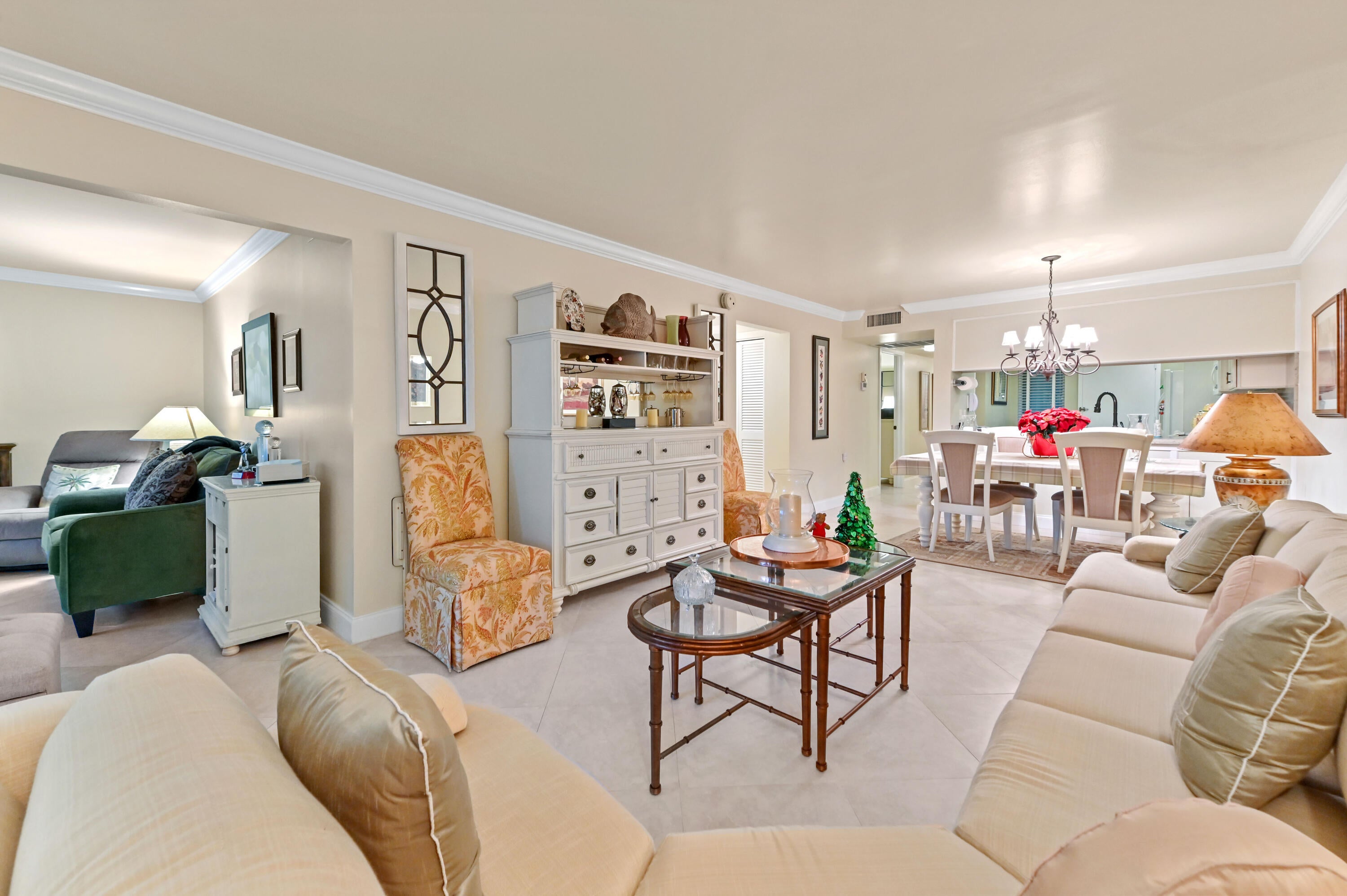 Experience spacious living in this beautiful 55+ condo, where a thoughtful layout offers far more than the standard condo experience. Beyond the welcoming foyer and pristine diagonal tile flooring, you'll discover a stunning kitchen featuring antique-white raised panel cabinetry, granite countertops, and a pass-through breakfast bar that connects effortlessly to the formal dining area. Unique to this unit is the abundance of living space; in addition to the expansive main living room with its elegant crown molding, there is a separate, cozy family room or den--perfect for a media center or home office--bathed in natural light from large windows.Retreat to the comfortable private quarters, including a serene primary suite that features ample closet space behind classic louvered doors and an ensuite bathroom. Step through the floor-to-ceiling sliding glass doors in the living room to your private screened balcony, where you can unwind while overlooking tranquil waterfront views and lush green grounds. Situated in a well-maintained building with easy access to parking and just moments from Coconut Creek's best shopping and dining, this move-in-ready home offers the perfect blend of luxury, comfort, and convenience.