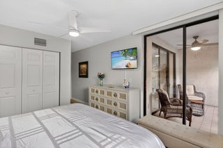 Magnificently renovated 3 bedroom, 2 full bath, 2nd floor condo in sought after Bay Port community. This Atrium home features light and bright open floor plan, Quartz eat in kitchen w/white shaker cabinets, crystal lighting for that added elegance. Appliances only 2 yrs. old. Lg. primary suite with custom wall to wall closet plus a walk in closet. French doors to den/office/bedroom. Full glass wall w/sliding doors out to Large screened in balcony to enjoy early morning coffee. Well maintained building with elevator. HOA includes all listed plus INTERNET. Clubhouse features pool, fitness, also access to Township which offers tennis, pickle ball, olympic size pool. Prime location near Promenade shops, restaurants and more. All ages welcomed. Come make this beautiful space your home!