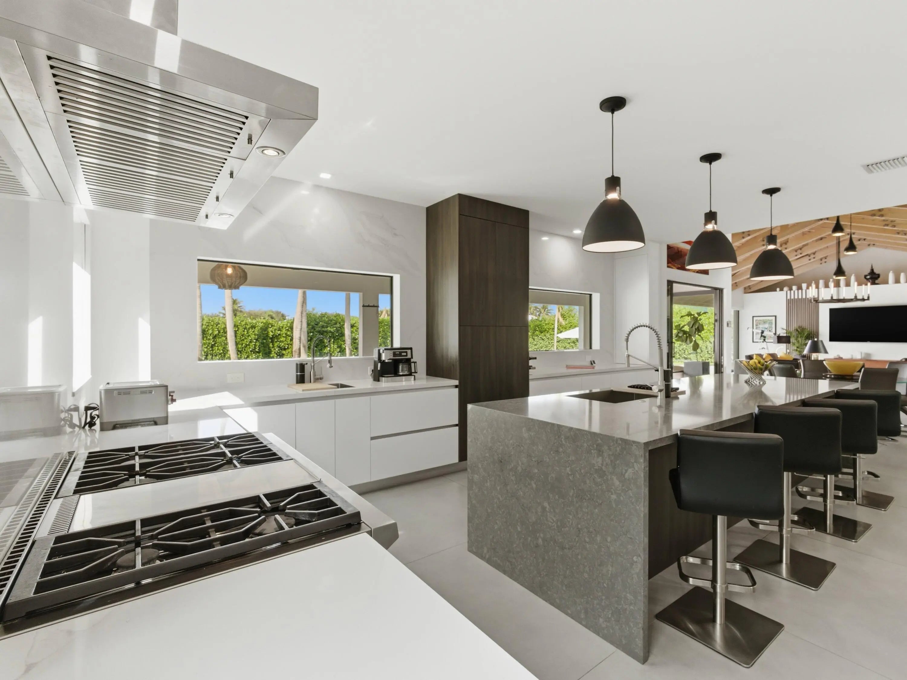 Exceptional modern residence fully renovated with a 1,700 - square-foot addition completed in 2023. This four-bedroom, four-bath home, offers refined modern living with expansive light filled interiors and high-end finishes throughout. Designed for seamless indoor-outdoor entertaining, the resort style grounds showcase a stunning pool with sauna and cold plunge, creating a private spa retreat. A three car garage with striking glass doors complements the home's contemporary architecture. Generously proportioned bedrooms, spa-caliber bathrooms, and thoughtfully curated spaces create a truly turnkey luxury offering.