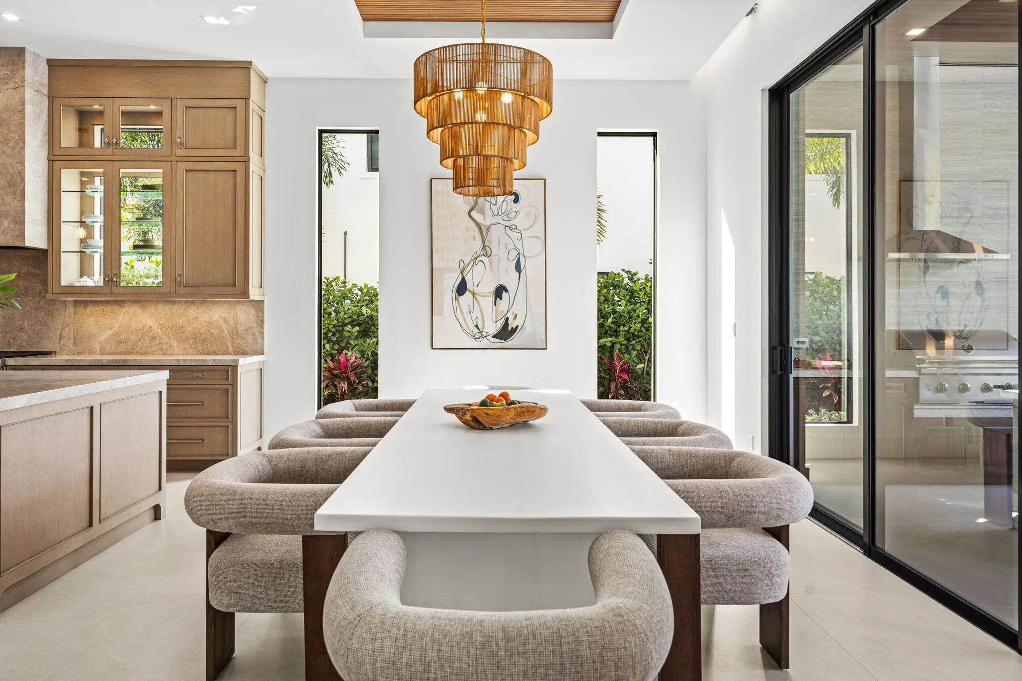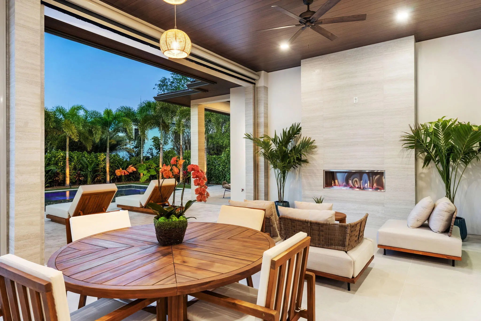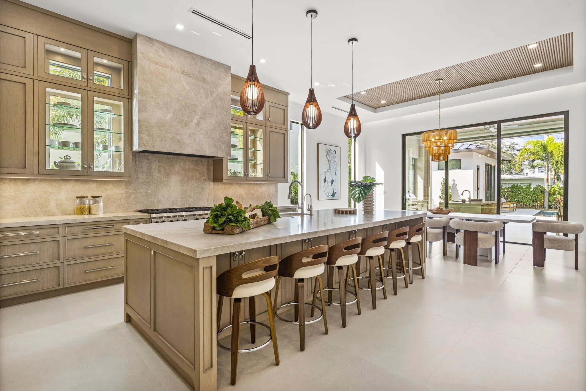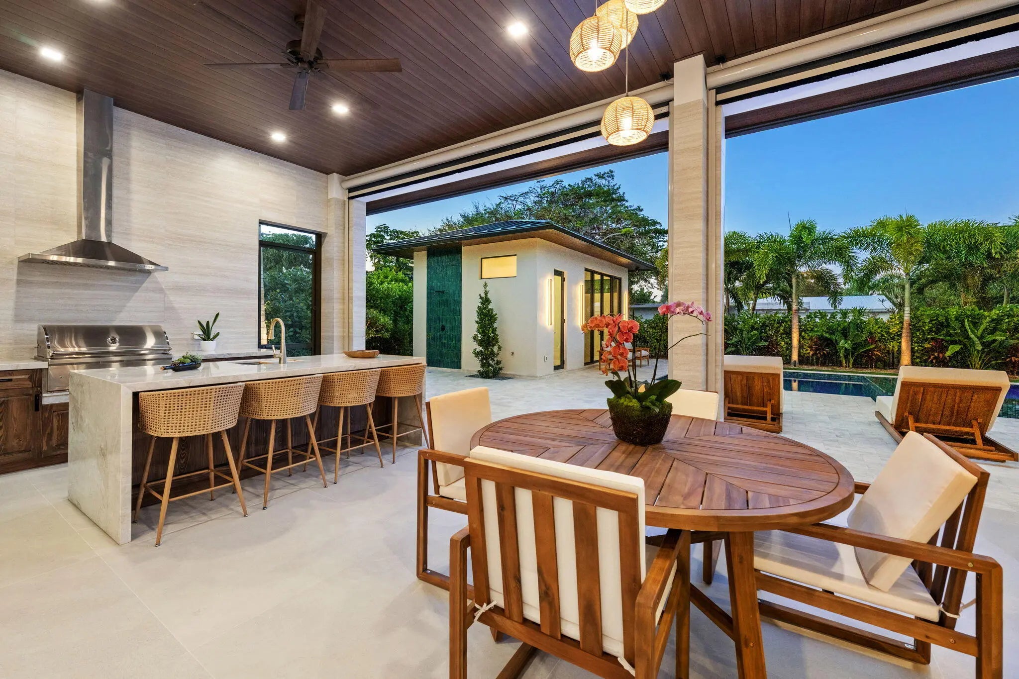 Auto Sprinkler, Built-in Grill, Cabana, Covered Patio, Custom Lighting, Fence, Outdoor Shower, Summer Kitchen
