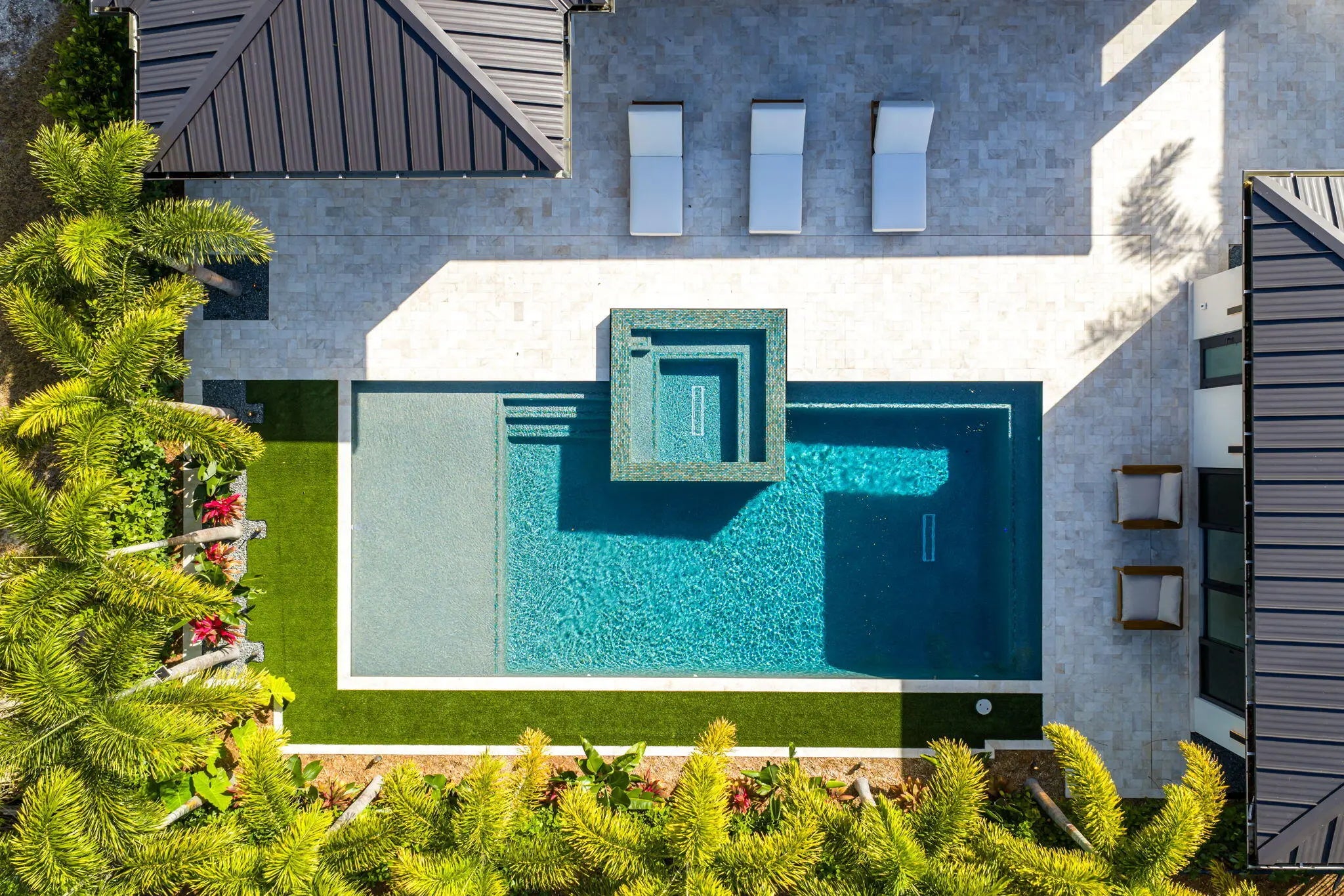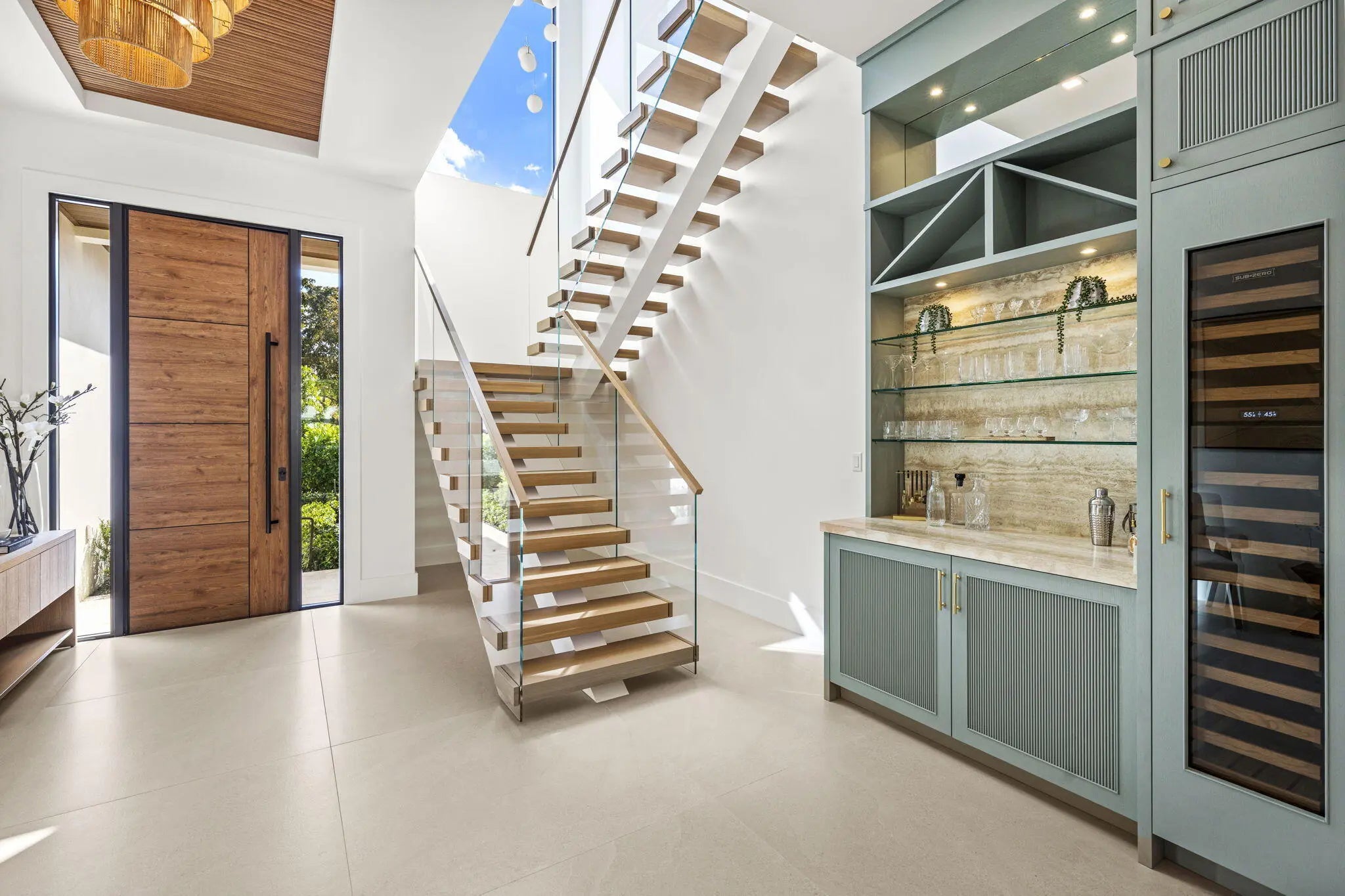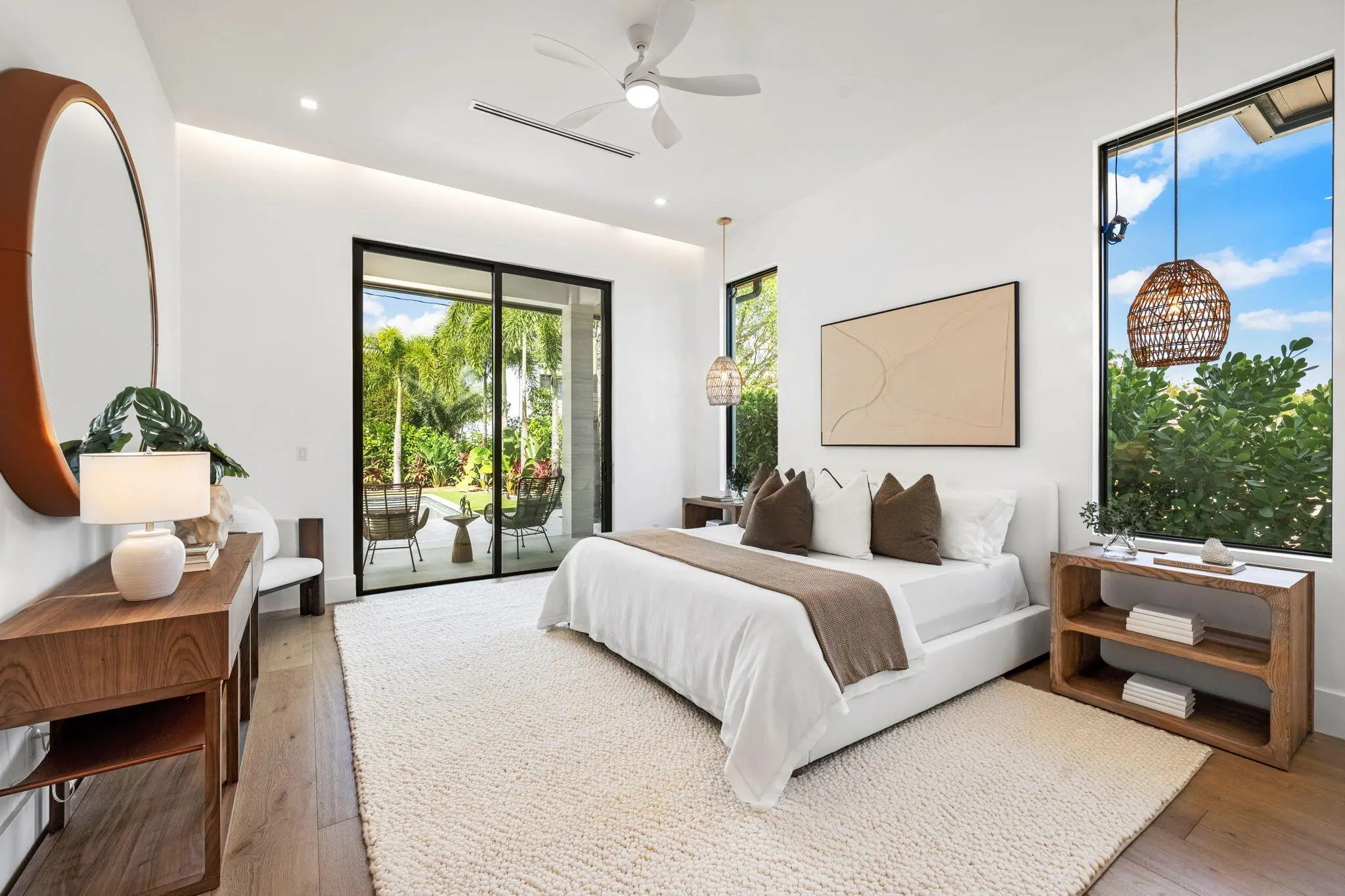 Welcome to 247 Seville Road, a 2025 modern-coastal residence with subtle Balinese influence, custom built by Spyglass Development. Set on an oversized 11,285 SF lot in West Palm Beach's highly desirable SoSo neighborhood, this newly completed estate blends architectural detail, material quality, and livable design into a refined coastal retreat. Offering 6,378 total square feet with 5,112 SF of living space, the main residence includes 4 bedrooms plus an office, 4 full baths and 1 half bath, a double garage, and elevator across 4,785 SF. A detached 327 SF cabana/flex suite with full bath, outdoor shower, and Sub-Zero under-counter drawers functions as a fifth bedroom, guest suite, private office, or fitness studio.