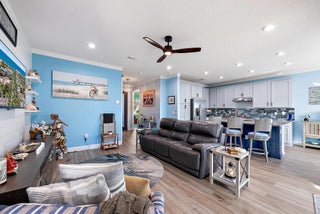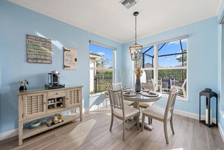 Live the Valencia Cay lifestyle at Riverland in Tradition, Port St. Lucie, a premier 55+ community. This upgraded 2-bedroom, 2-bath Egret model features include crown molding, luxury vinyl flooring, custom closet shelving, upgraded pantry pull-out shelves, laundry barn door, etched glass front door, frameless shower doors, & added lighting. Enjoy a widened driveway, garden curbing, patio lighting, & extended 20'x13' rear patio perfect for entertaining. Screened front / rear porches & fenced backyard create ideal indoor-outdoor living. Impact windows, security cameras, & exterior generator connection add peace of mind. Valencia Cay offers a resort-style clubhouse, pools, fitness center, pickleball, tennis, trails, clubs, & social events. Close to I-95, shopping, dining, & Cleveland Clinic.