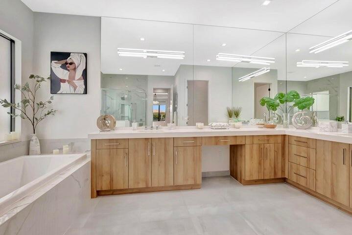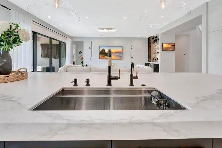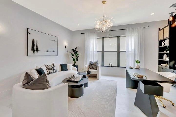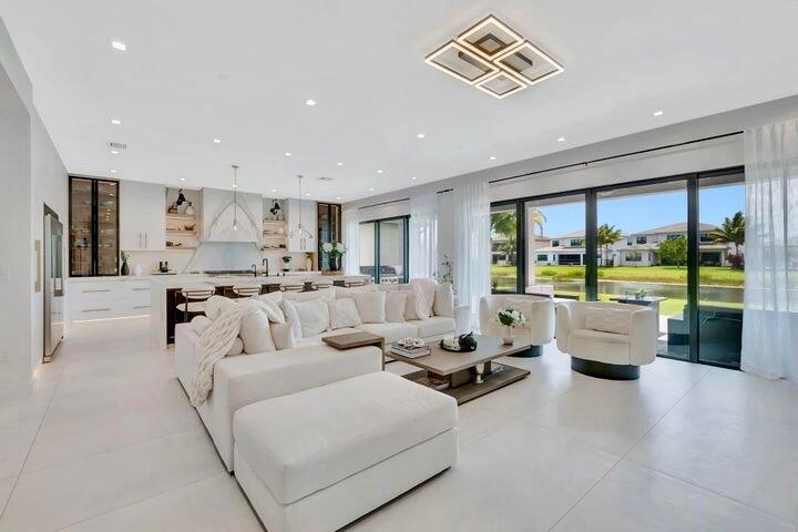 Home will be sold with a pool construction contract in place. Pool construction will begin after closing and will be paid for, with flexibility for the buyer to customize or modify the design to suit personal preferences. The home is offered fully furnished, providing a seamless, move-in-ready experience. Inside, the residence features a completely redesigned, one-of-a-kind kitchen, fully removed and rebuilt far beyond the original builder's layout. Expanded in both size and functionality, the kitchen showcases premium custom cabinetry, an oversized waterfall island, high-end porcelain surfaces, a 66'' built-in refrigerator, 48'' gas range, microwave drawer with air-fryer, paneled dishwasher, dual oversized pantries with interior lighting, and refined designer finishes. Not an average houThe kitchen was rebuilt to a showroom-level standard, featuring extensive custom cabinetry with drawer-within-drawer storage systems, integrated interior cabinet and drawer lighting, built-in charging stations, imported Italian porcelain countertops, a porcelain backsplash, and coordinated porcelain detailing at the hood. The home offers nearly 5,000 square feet of living space with 5 bedrooms and 5.1 baths, including a first-floor primary suite with dual walk-in closets and a spa-inspired bath. Additional interior highlights include a private office, formal dining room, expansive living areas with flat ceilings, upgraded flooring throughout, a custom bar with beverage refrigeration, and an upstairs loft/media area. Beyond the visible design, the home has undergone extensive upgrades behind the scenes. Improvements include upgraded HVAC systems, an electrical panel upgraded to 400 amps, and a whole-house water filtration system with UV purification, along with reverse osmosis at the kitchen for drinking and tea water, supplying filtered water to household appliances, including the washer and dryer. The bathrooms feature bidets with dedicated power outlets, complemented by abundant additional interior outlets, additional chandeliers, enhanced lighting, and outdoor motion-sensor lighting. The exterior is well prepared for future outdoor living with multiple additional exterior water spigots, extra outdoor electrical outlets, and the backyard pre-wired for a future screened enclosure. The home is extensively pre-wired for audio and surround sound, security cameras and surveillance, and a centralized Wi-Fi hub. The garage features epoxy-coated floors. Residents of the gated Lotus community enjoy access to a resort-style clubhouse with a full-service restaurant, state-of-the-art fitness center, resort pool, tennis, pickleball, basketball, and morewithin one of Boca Raton's most desirable luxury communities.
